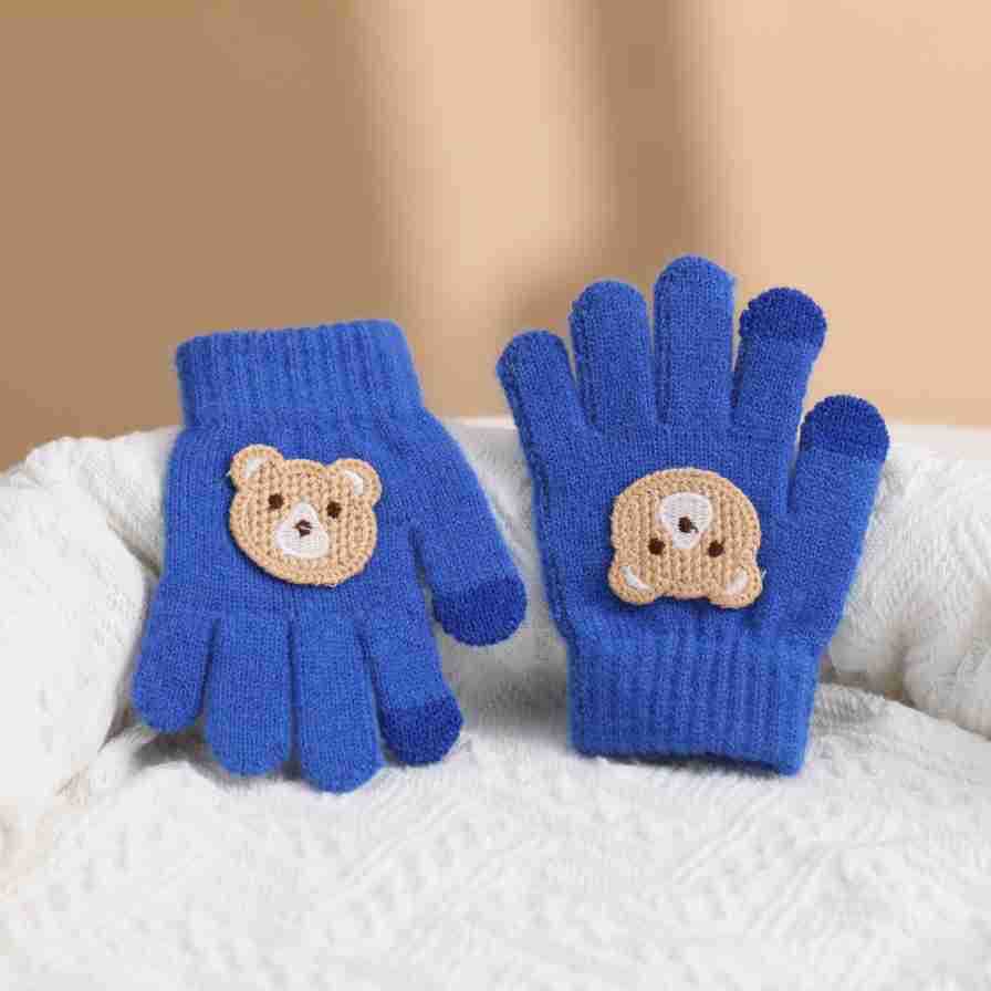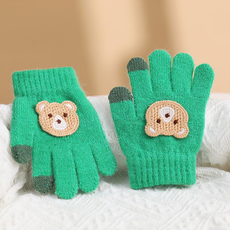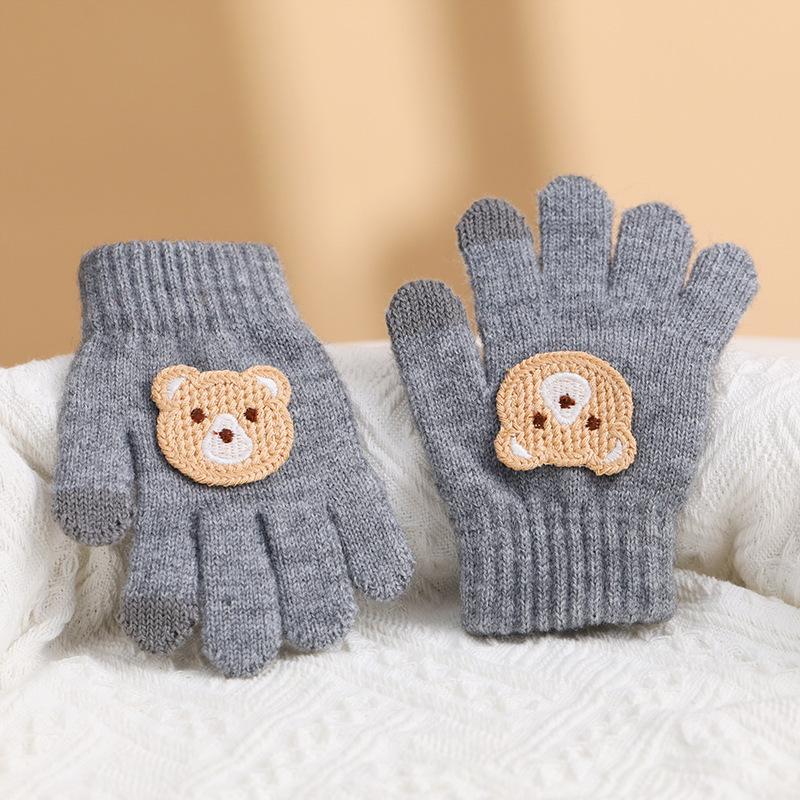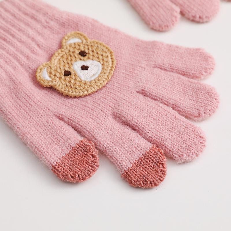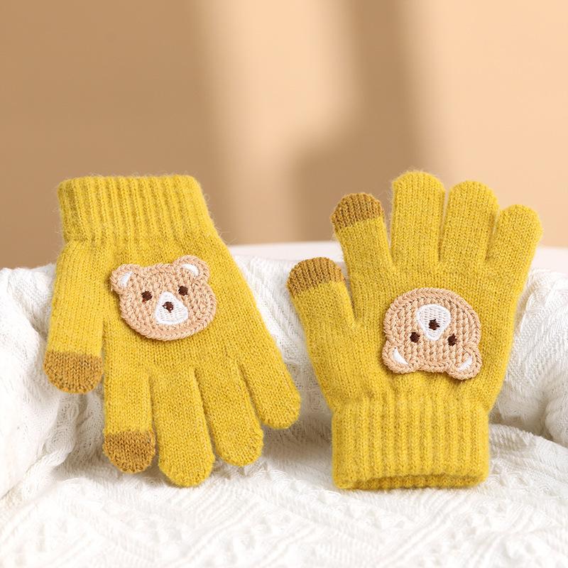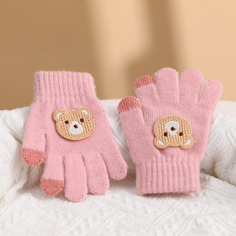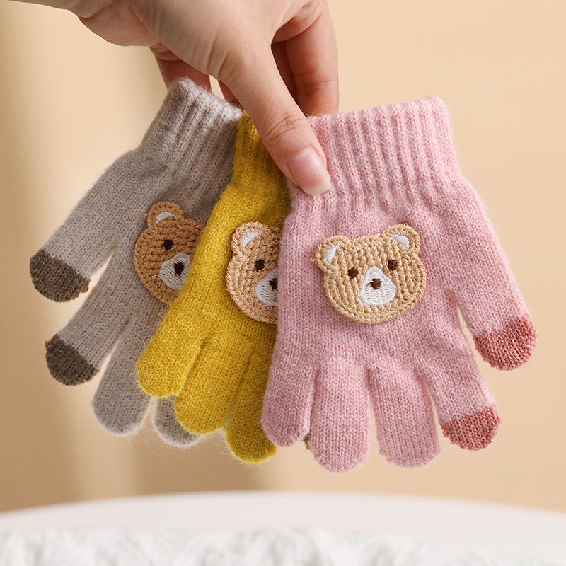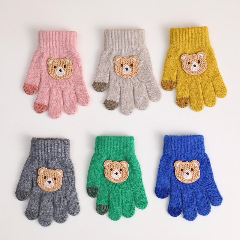 Guantes de otoño e invierno para niños y niñas, nuevos guantes de punto de lana de cinco dedos cálidos a prueba de frío con diseño de oso de dibujos animados para bebés