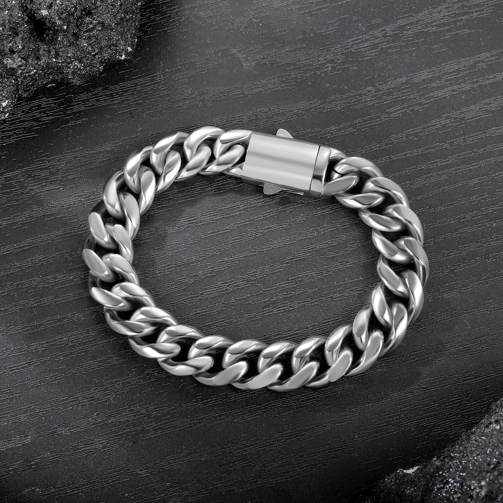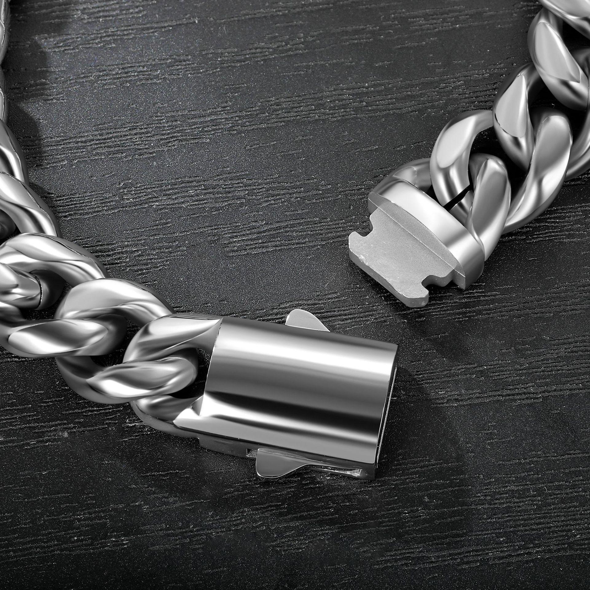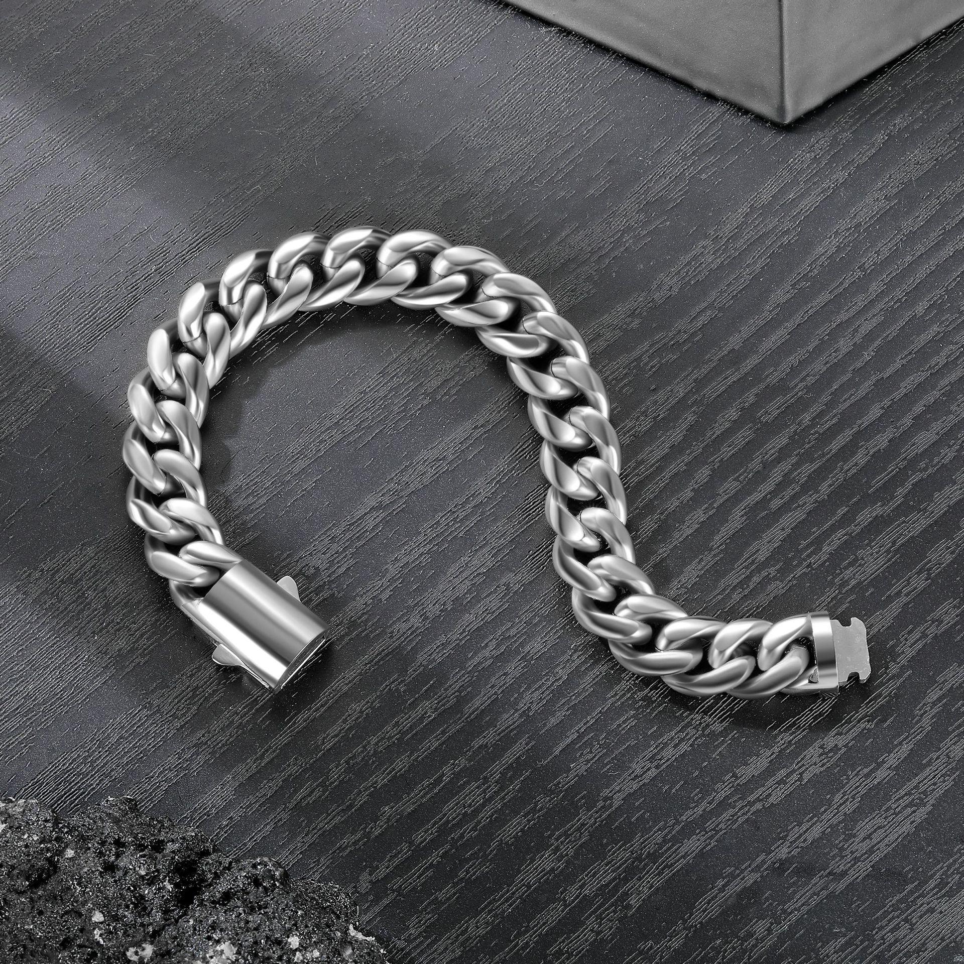 Pulsera cubana de acero inoxidable 304 de 12 mm, moda, personalidad europea y americana, marea callejera, hombres, pulsera con hebilla de resorte, venta al por mayor de fábrica