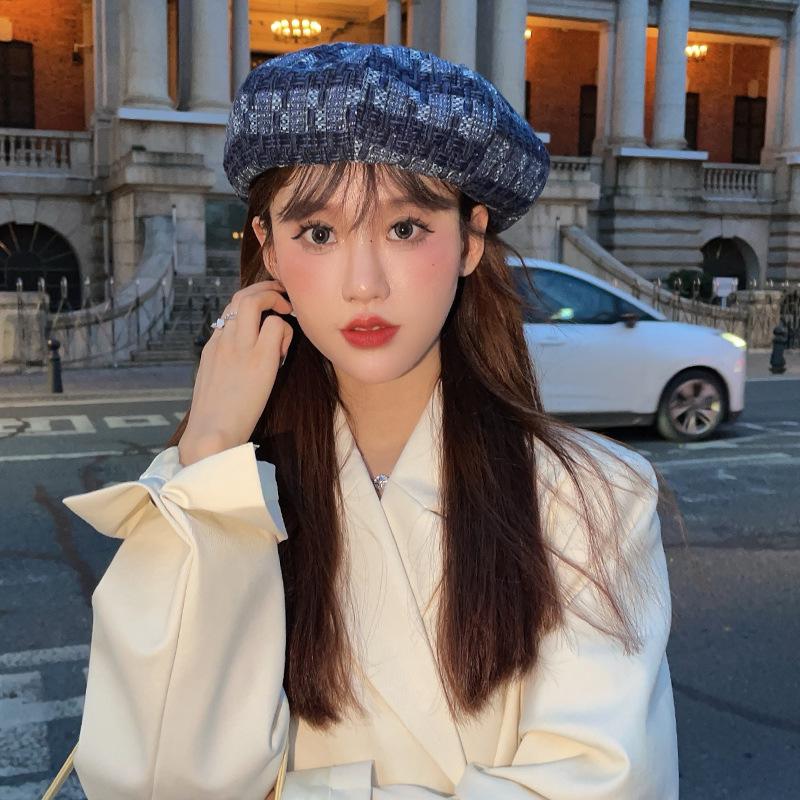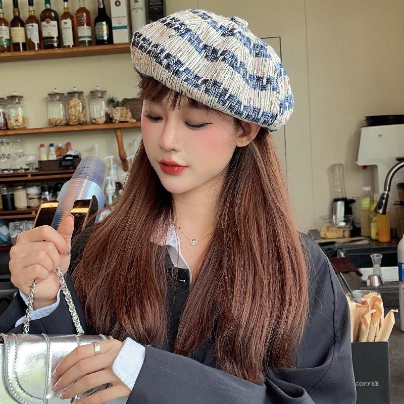 Boina de Estilo Nicho 2024 para Mujer Otoño Estilo Coreano Moda Sombrero de Pintor a Cuadros Estilo Chanel Sombrero de Capullo Moderno