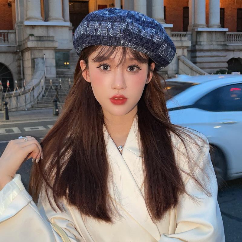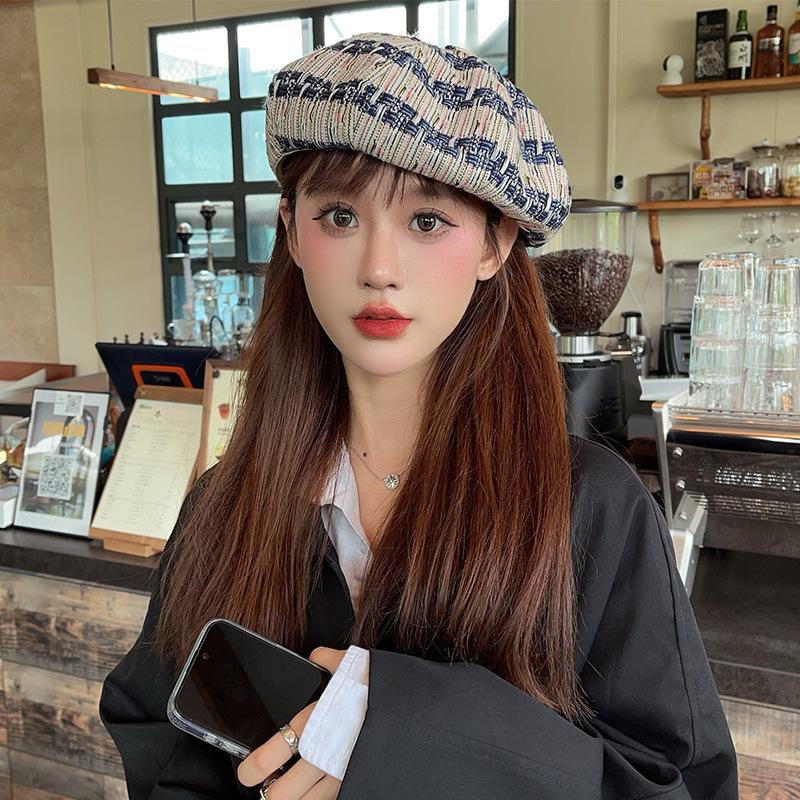 Boina de estilo nicho 2024 para mujer otoño estilo coreano moda boina de pintor a cuadros estilo pequeña fragancia sombrero de capullo tendencia