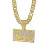 Colgante de aleación con forma de tarjeta bancaria transfronteriza de Europa y Estados Unidos, cadena cubana de diamantes, joyería de moda hip hop para hombres, venta al por mayor