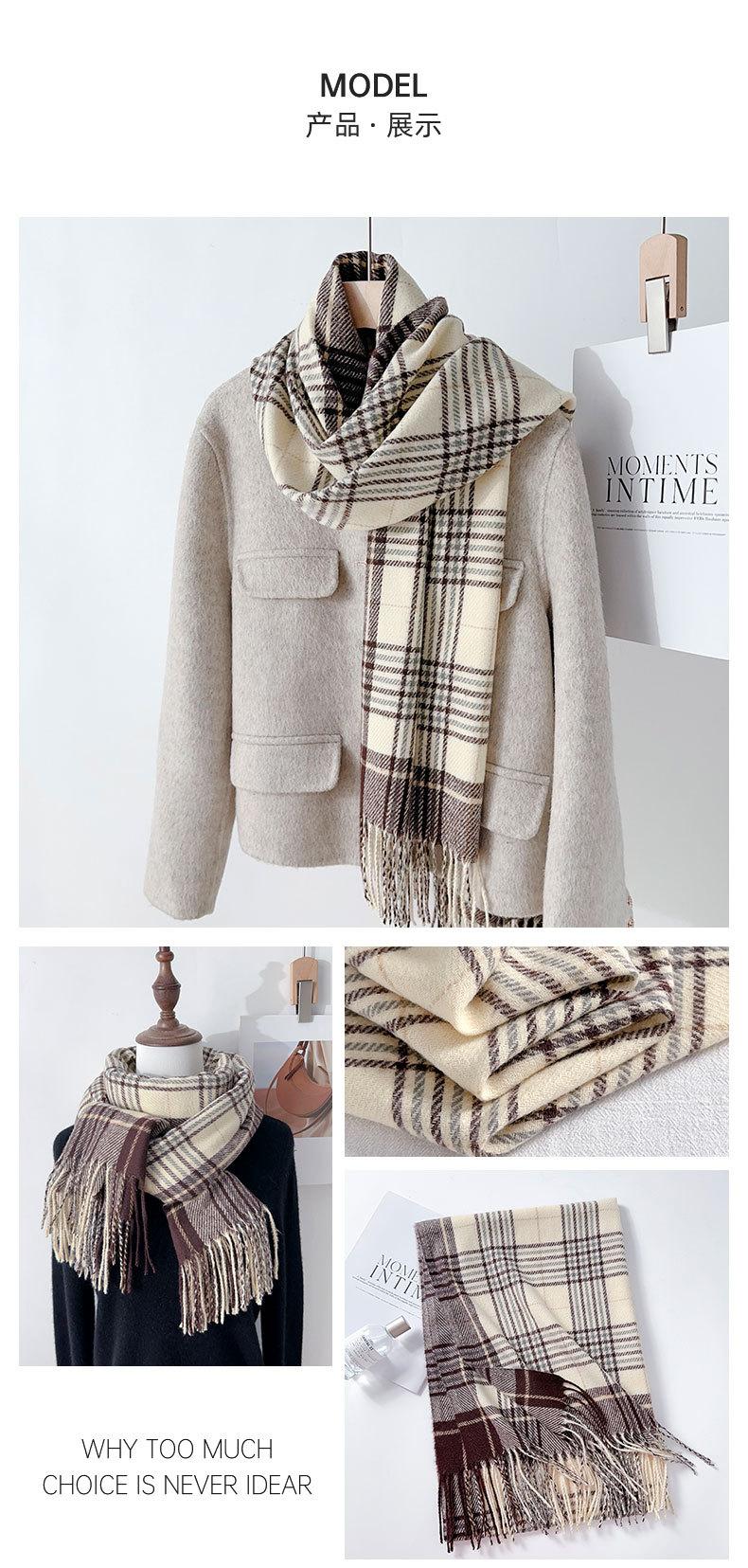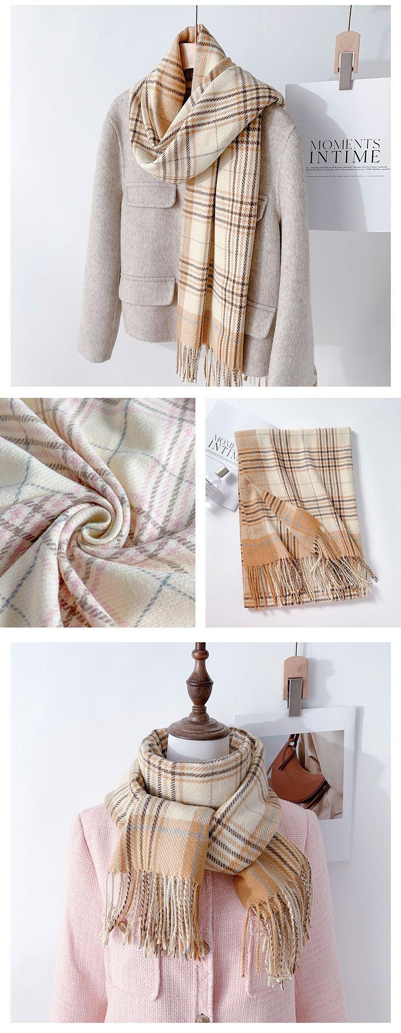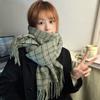 Bufanda sencilla de cuadros estilo coreano nuevo para mujer en ambiente de viaje de invierno borla chal cálido bufanda gruesa para estudiante