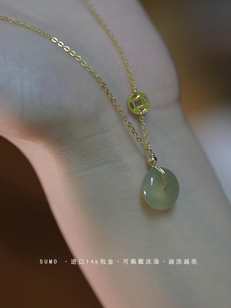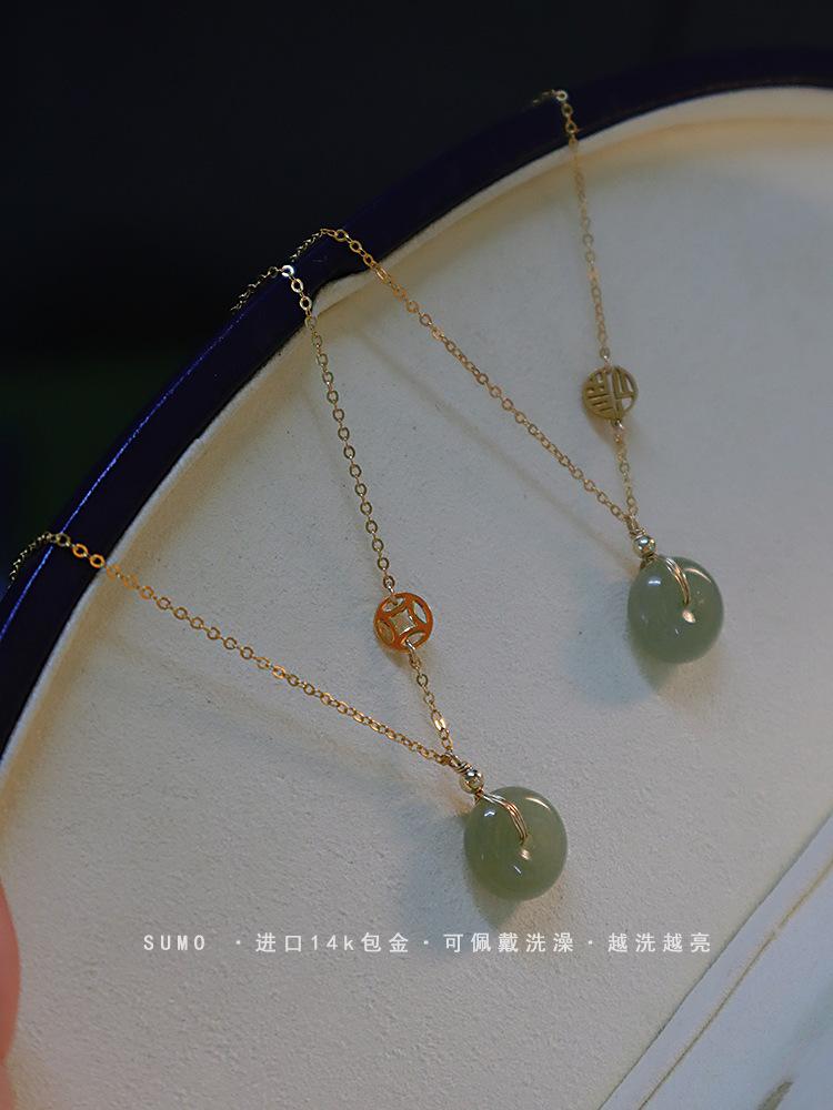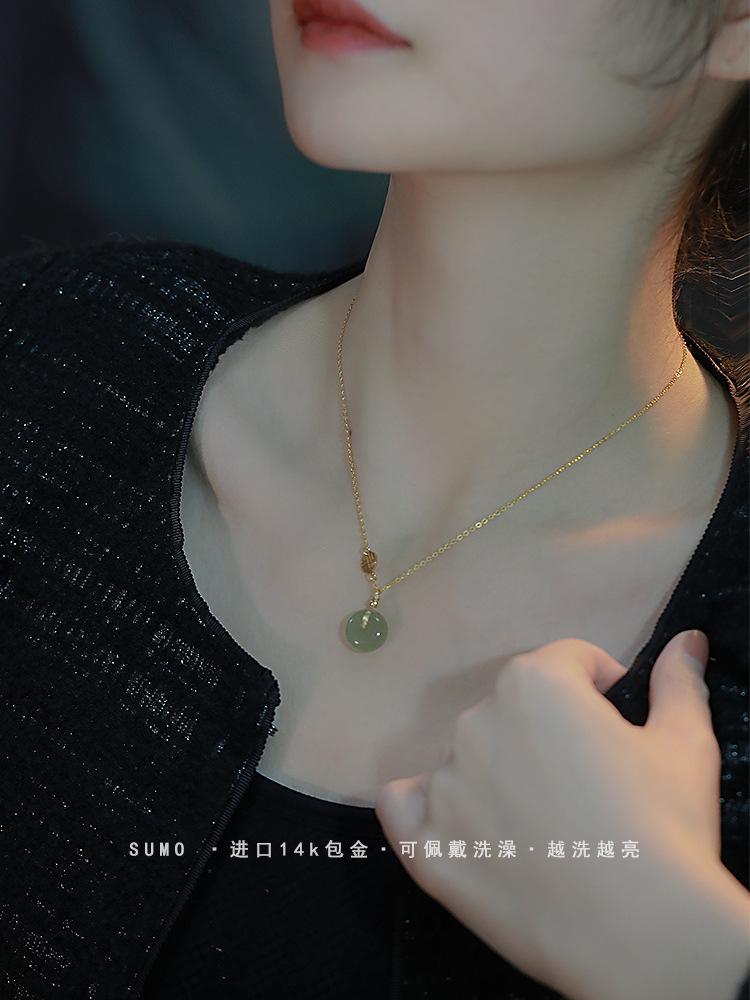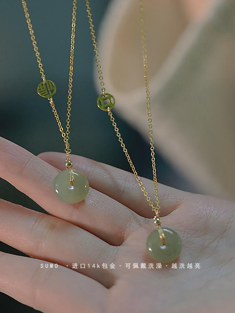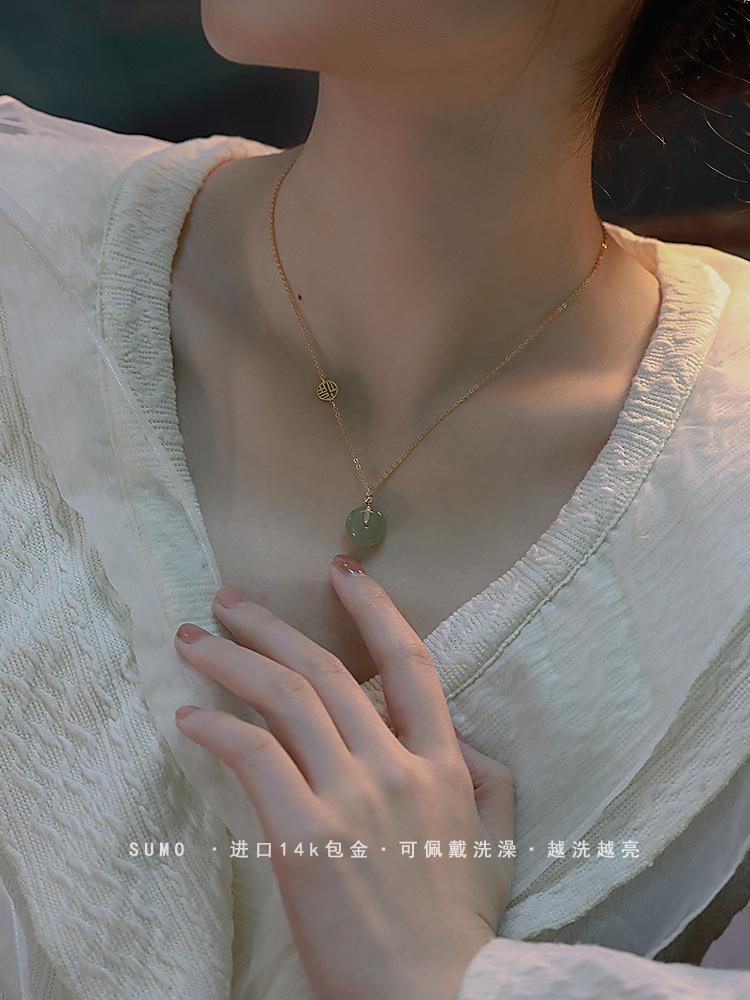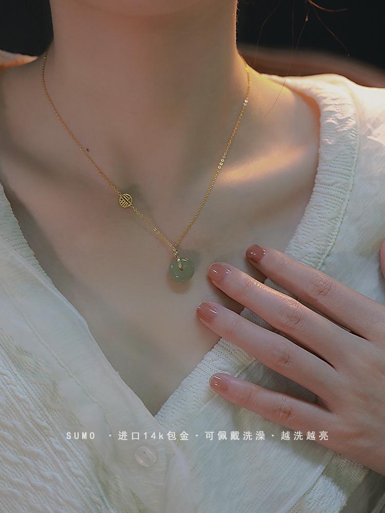 Collar Ping An Happy Fortune Word Imitación Jade Hetian Cadena Clavícula para Mujer Moda Joker Diseño Nicho Frío Joyería al por Mayor