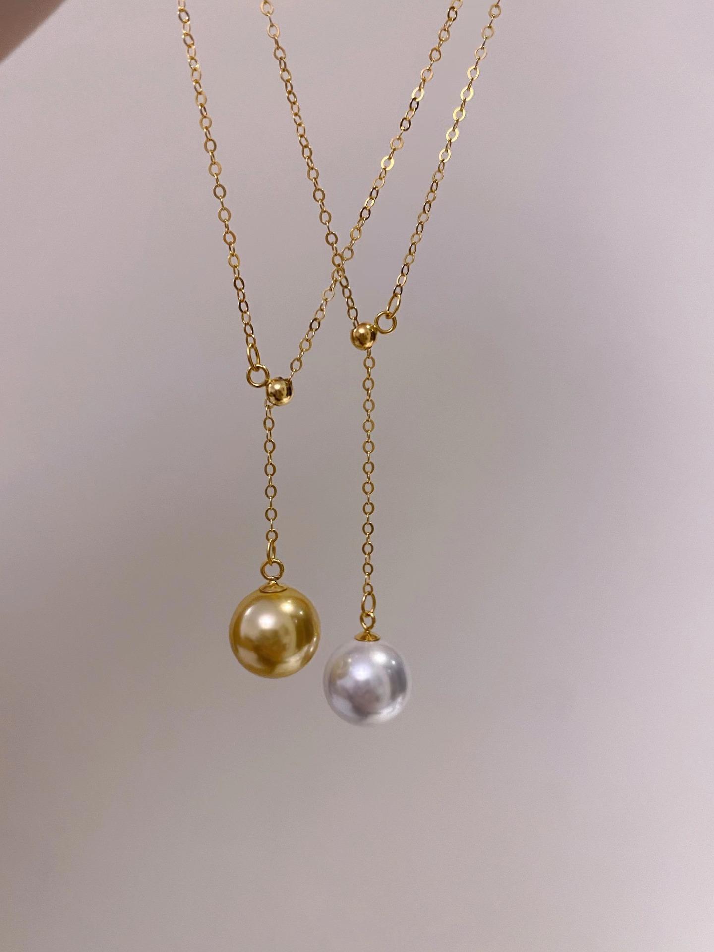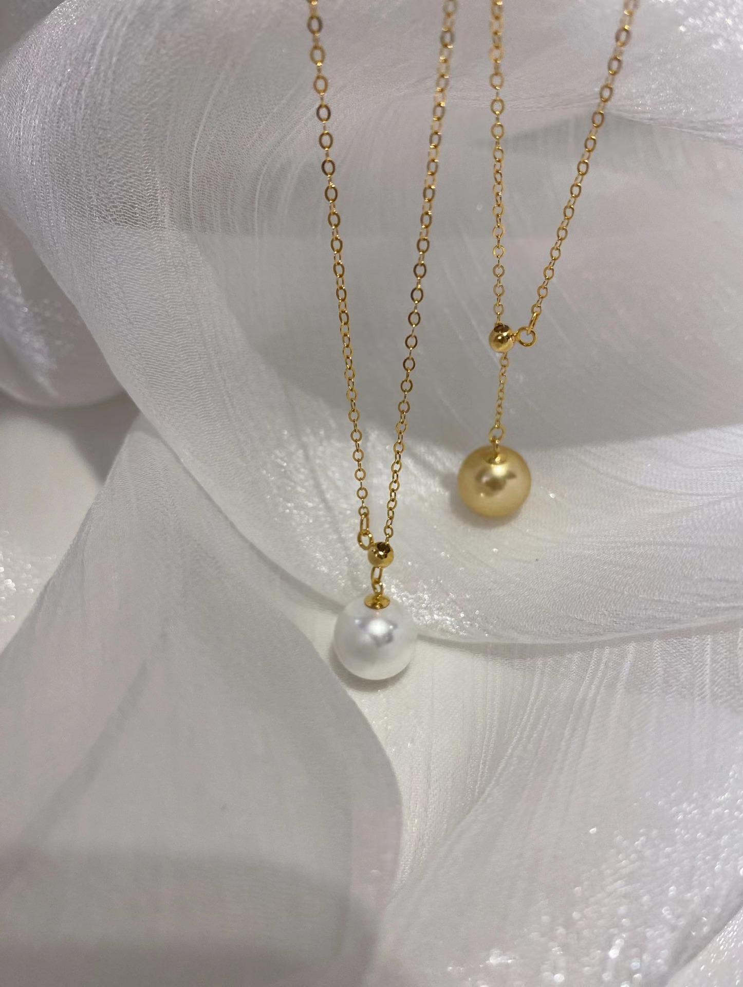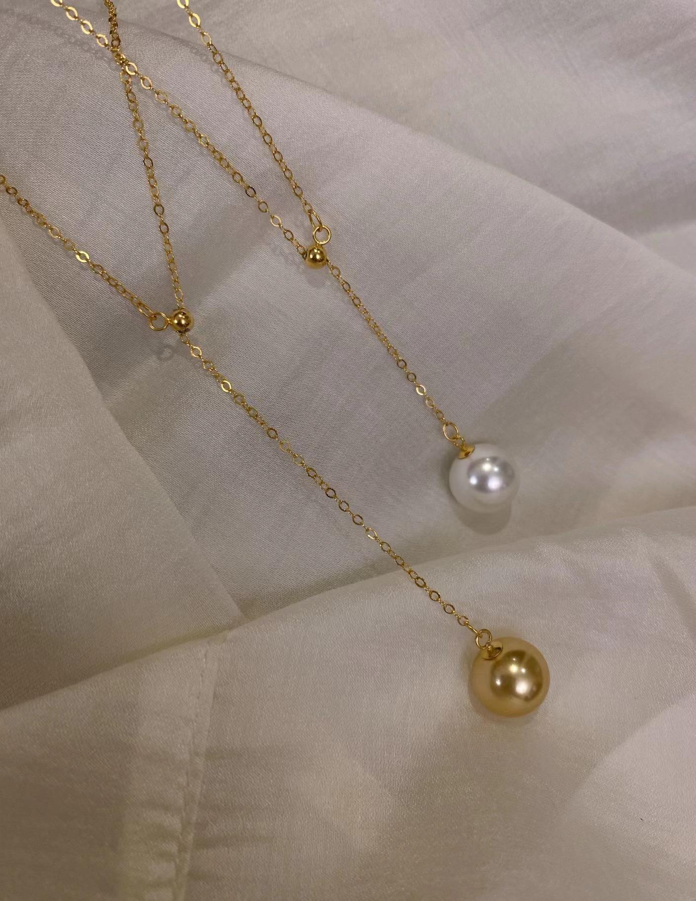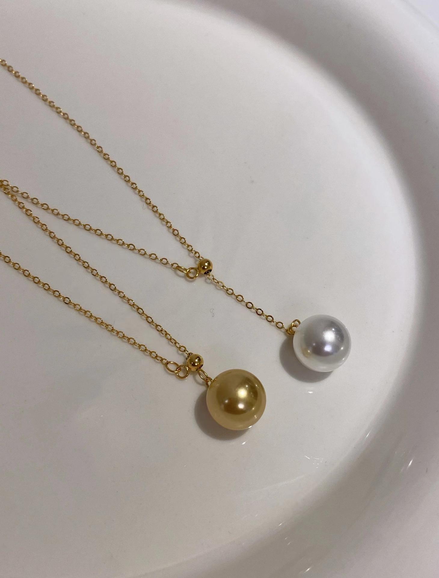Cold light white pearl necklace (40+5cm), Southern golden pearl necklace (40+5cm)