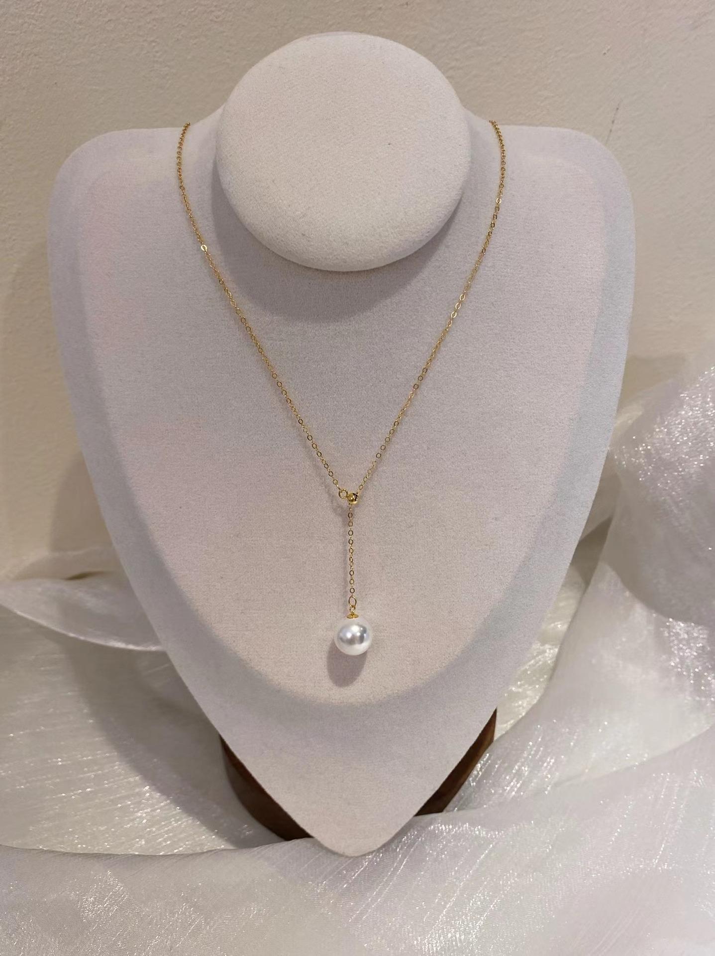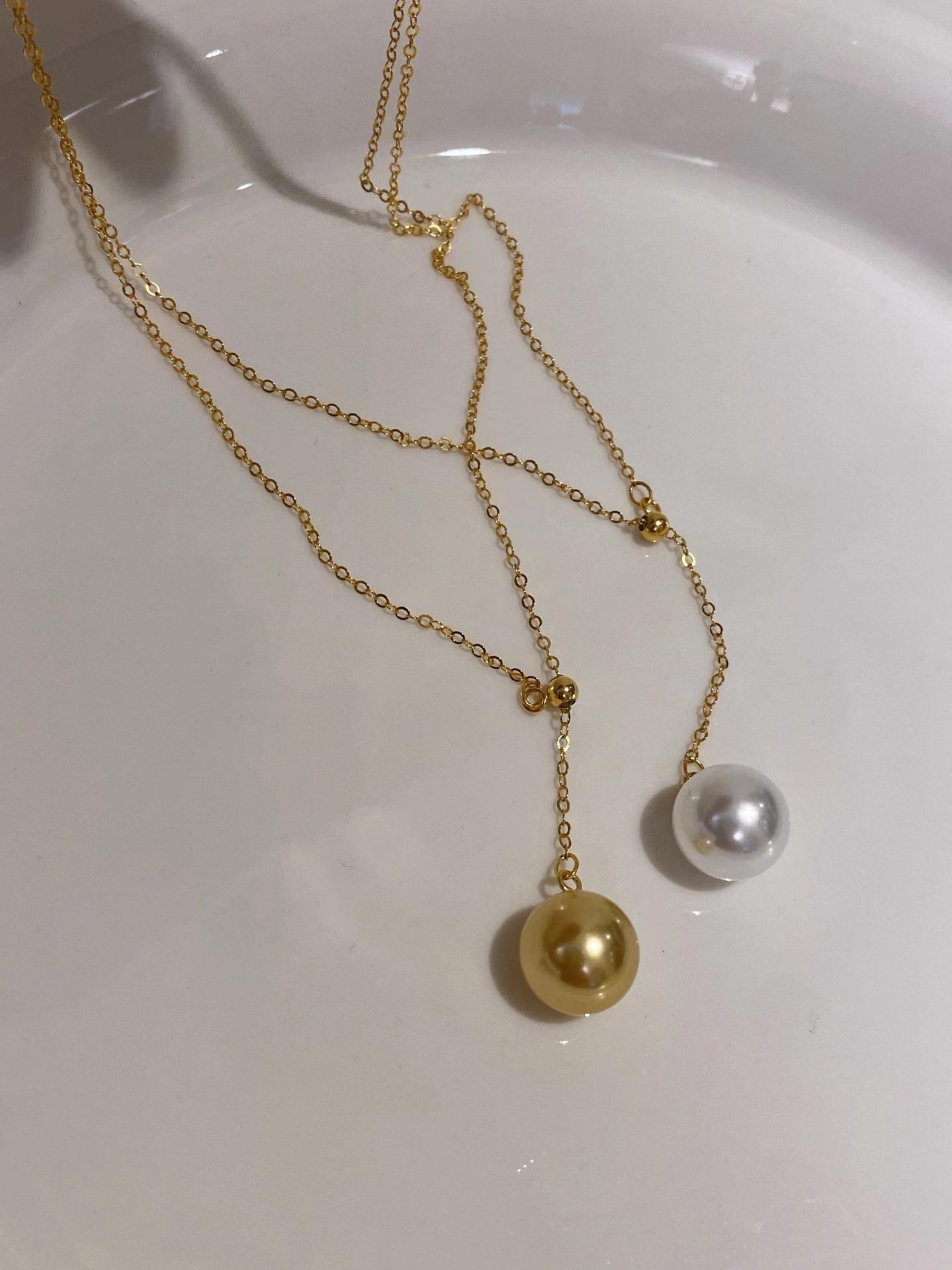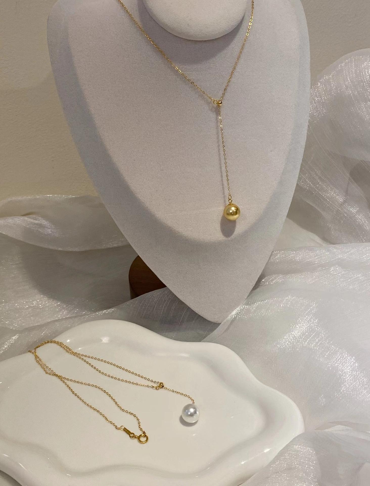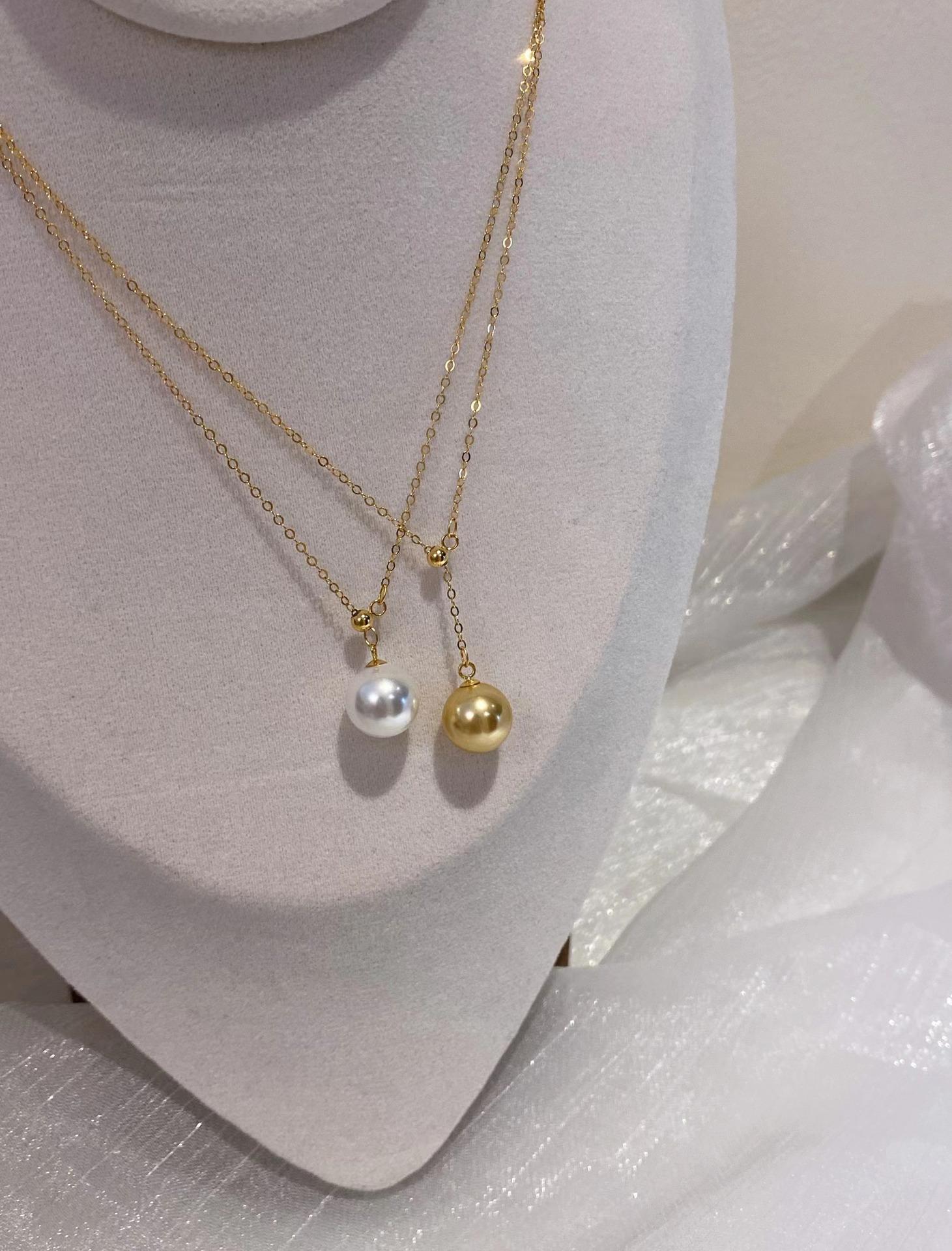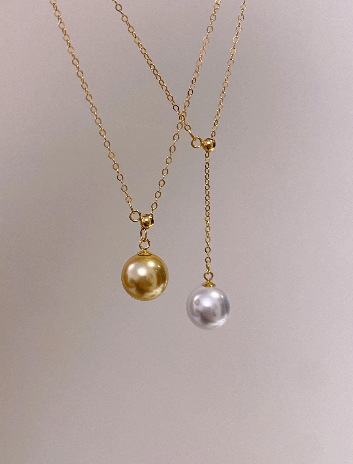 Cold light white pearl necklace (40+5cm), Southern golden pearl necklace (40+5cm)