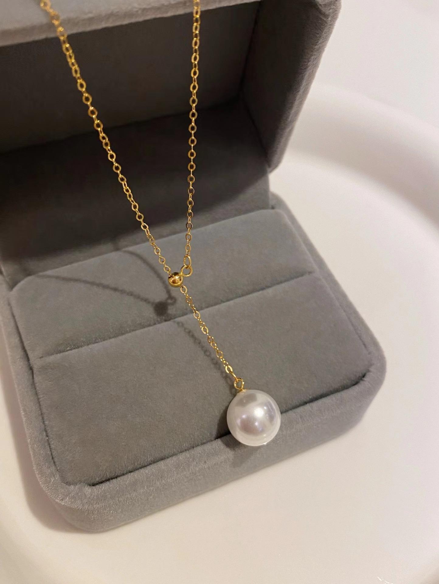 Collar con colgante de perla Shijia redonda de plata esterlina S925, luz fuerte, moda para mujer, simple, exquisito, ligero, de lujo, cadena de alta gama
