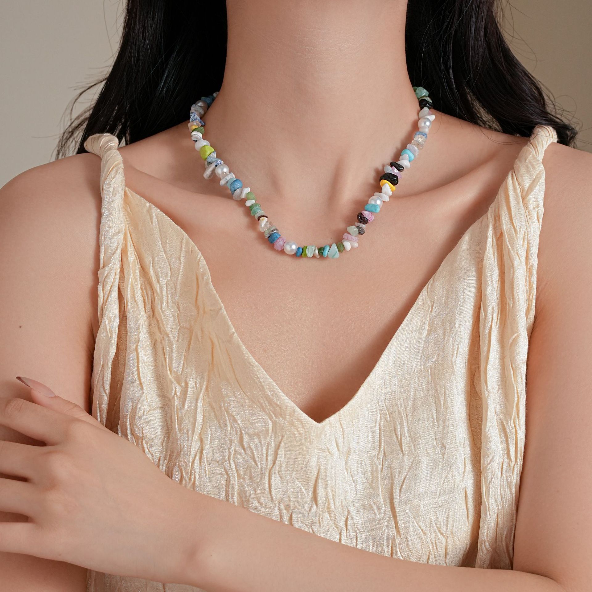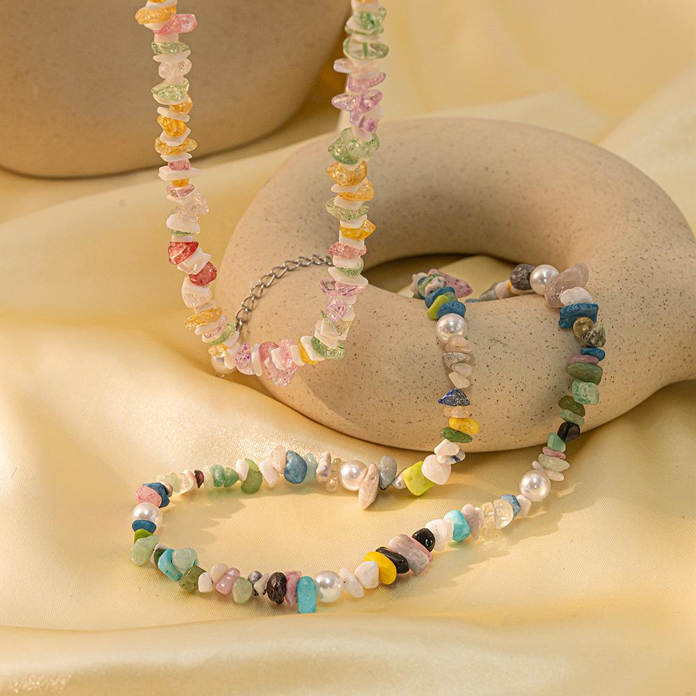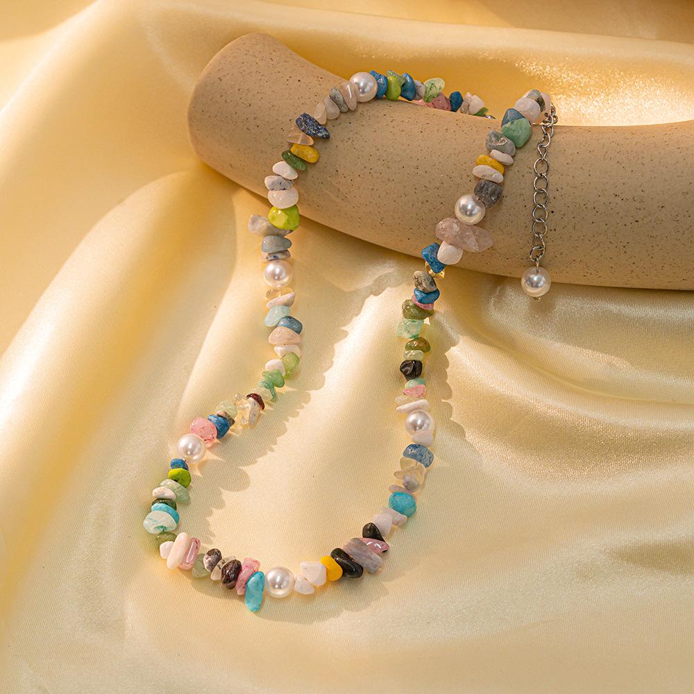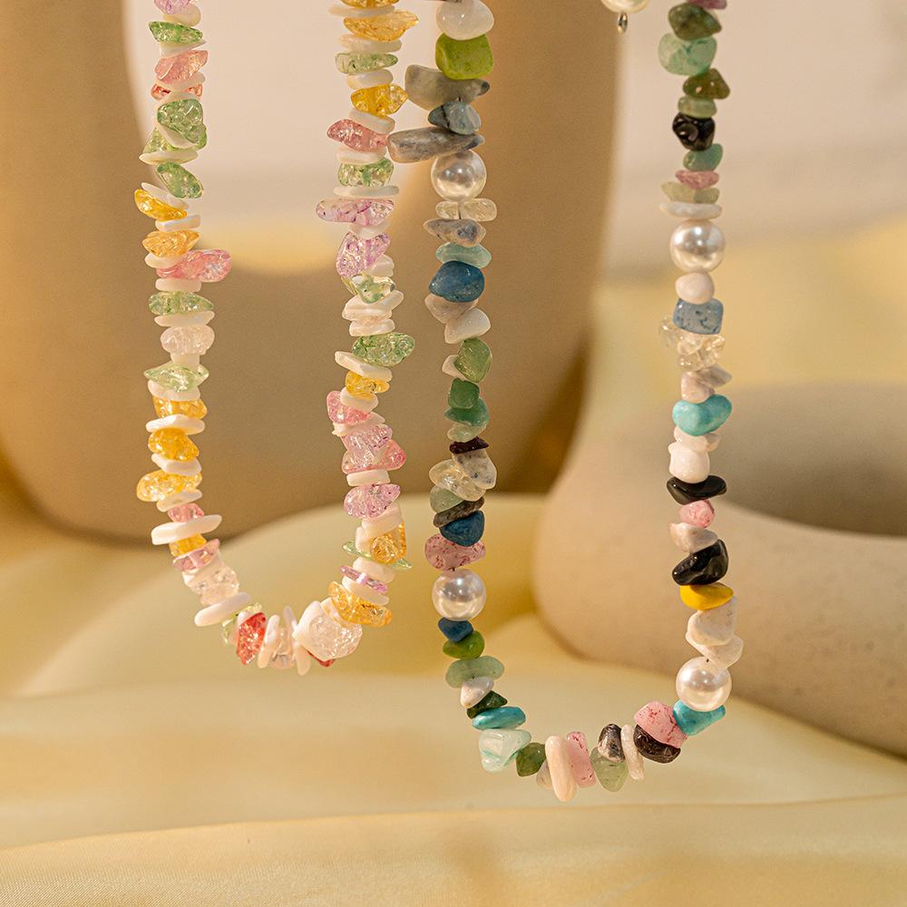Collar de cuentas de colores creativos con diseño transfronterizo europeo y americano, con piedras de cristal irregulares y distintivo, cadena de clavícula para mujer