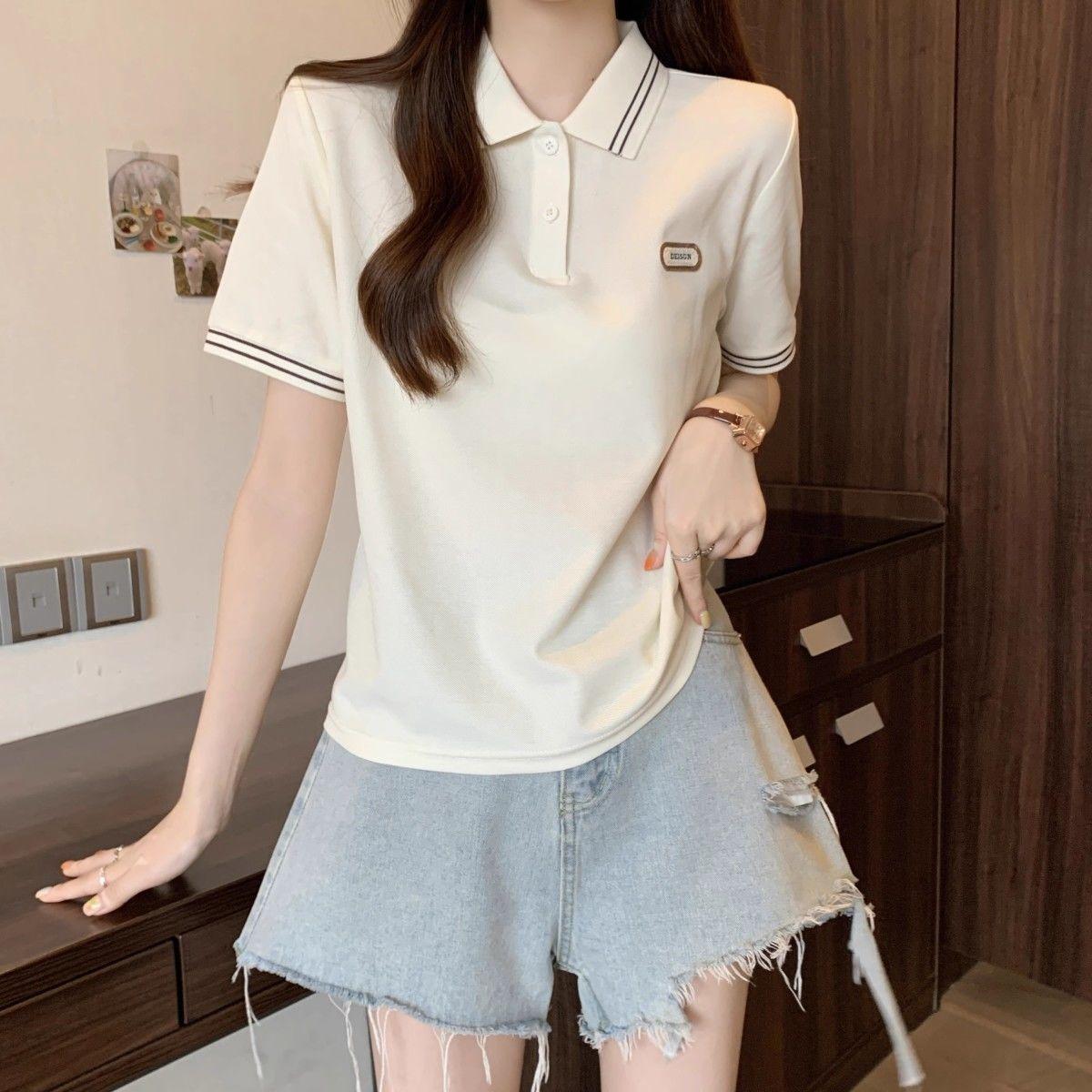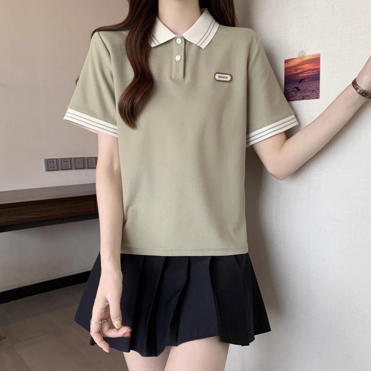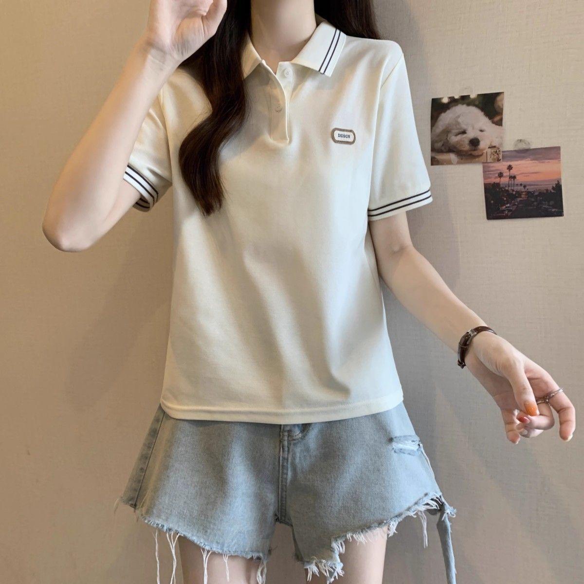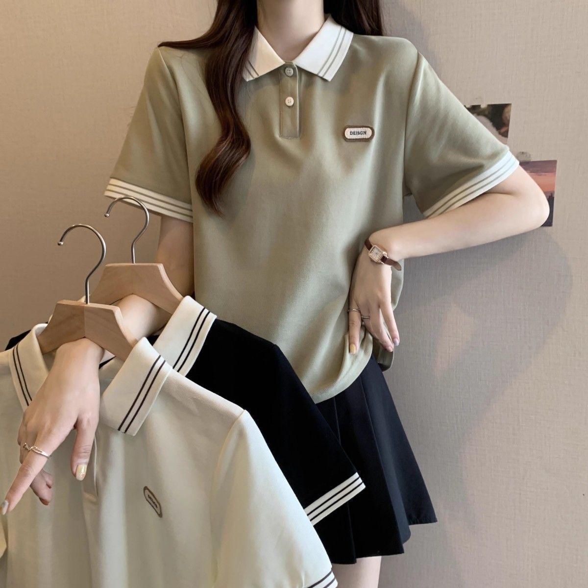Camiseta holgada de manga corta de verano para mujer de talla grande, estilo universitario, con cuello polo y hombros descubiertos, para chica gordita