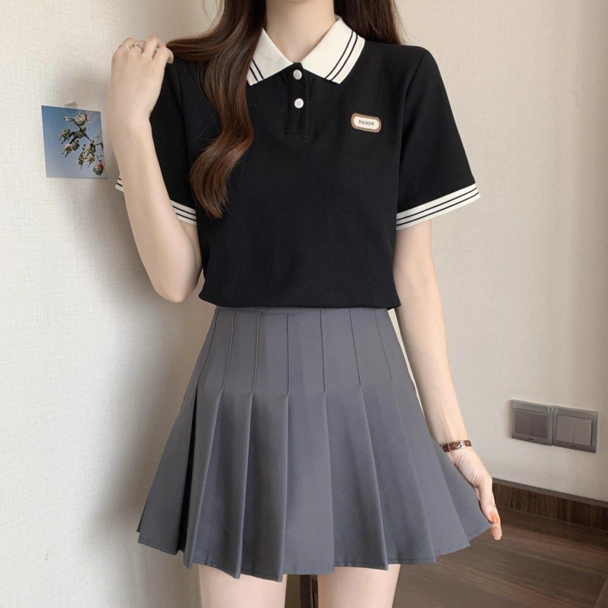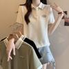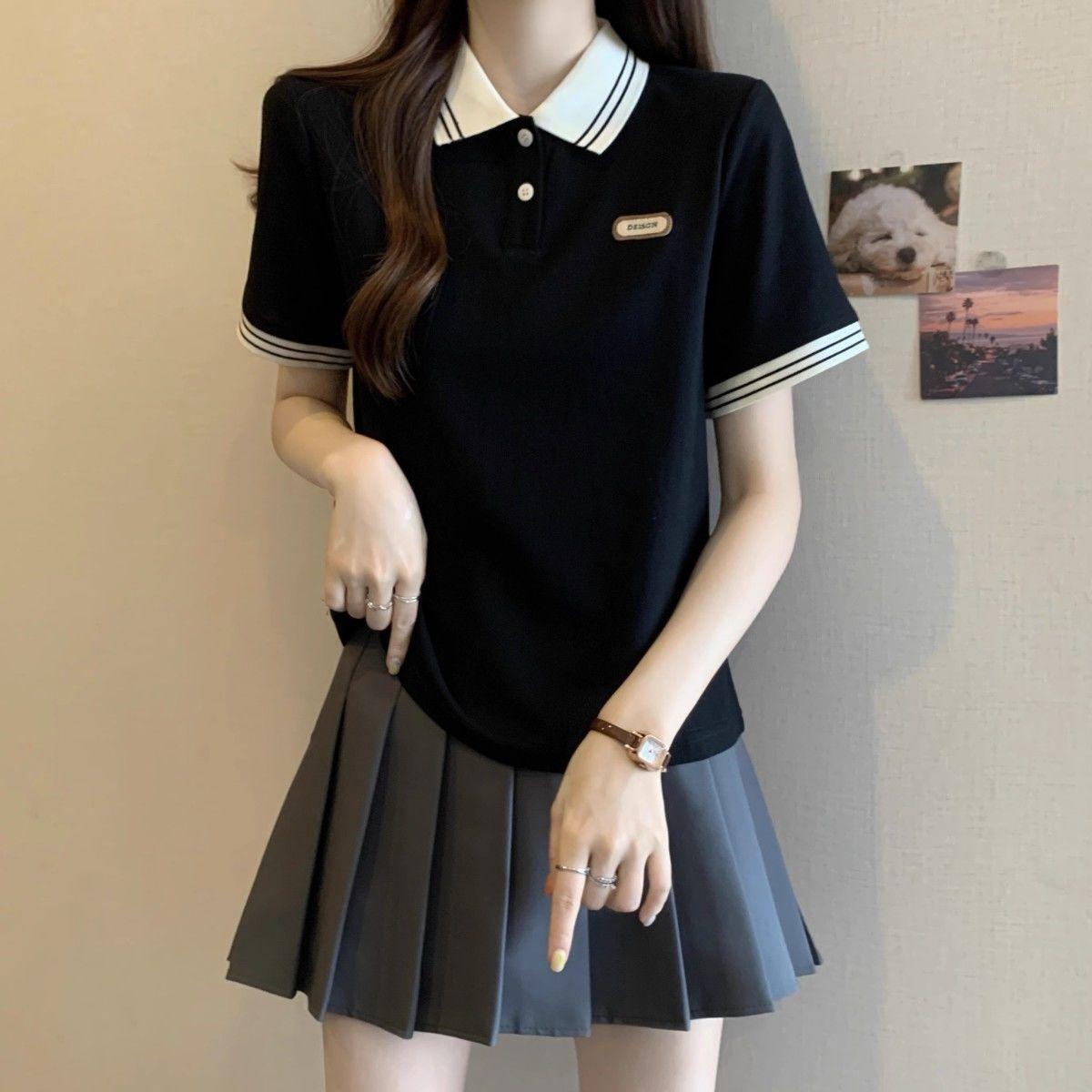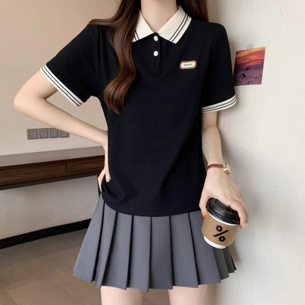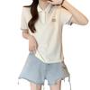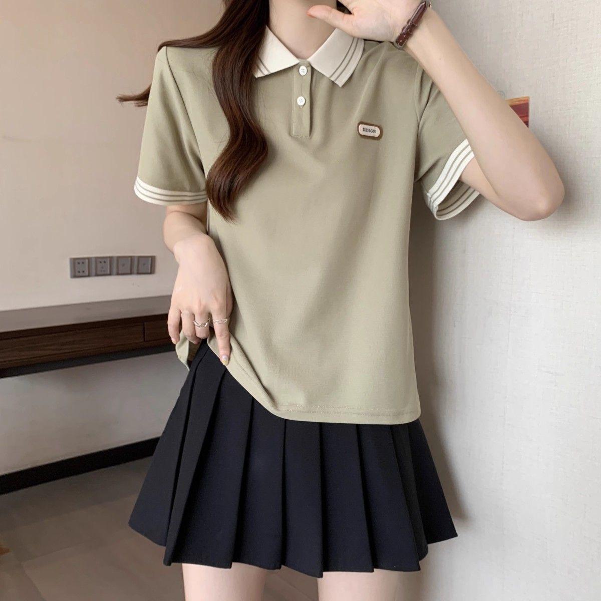 Camiseta holgada de manga corta de verano para mujer de talla grande, estilo universitario, con cuello polo y hombros descubiertos, para chica gordita