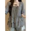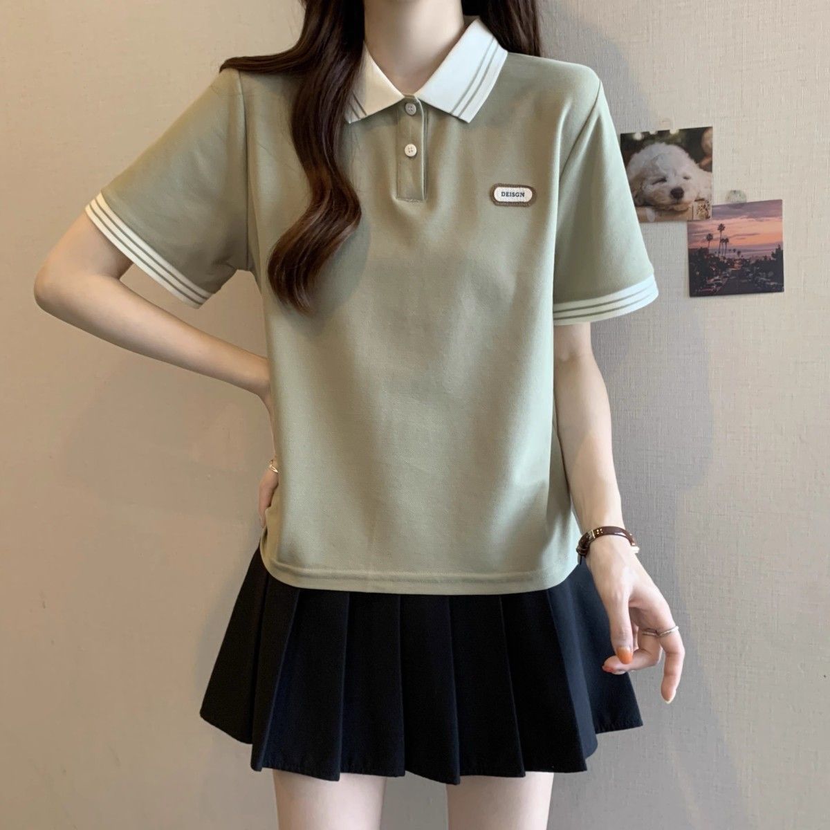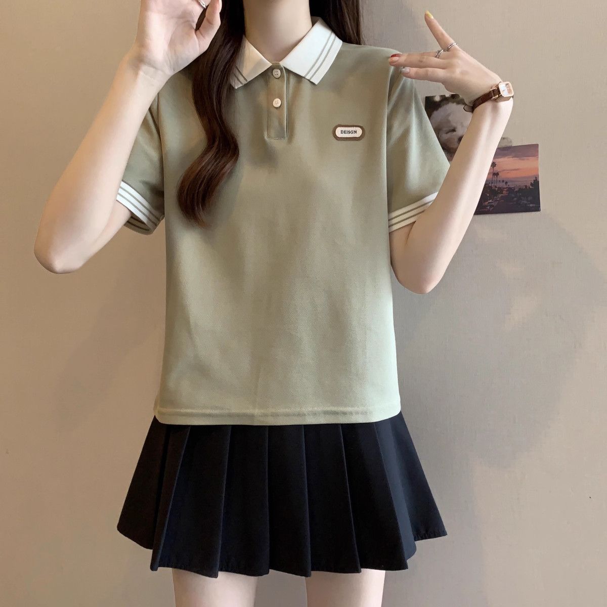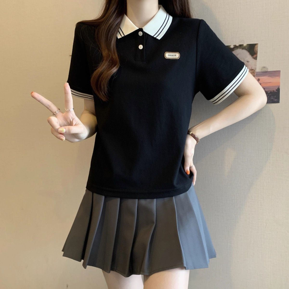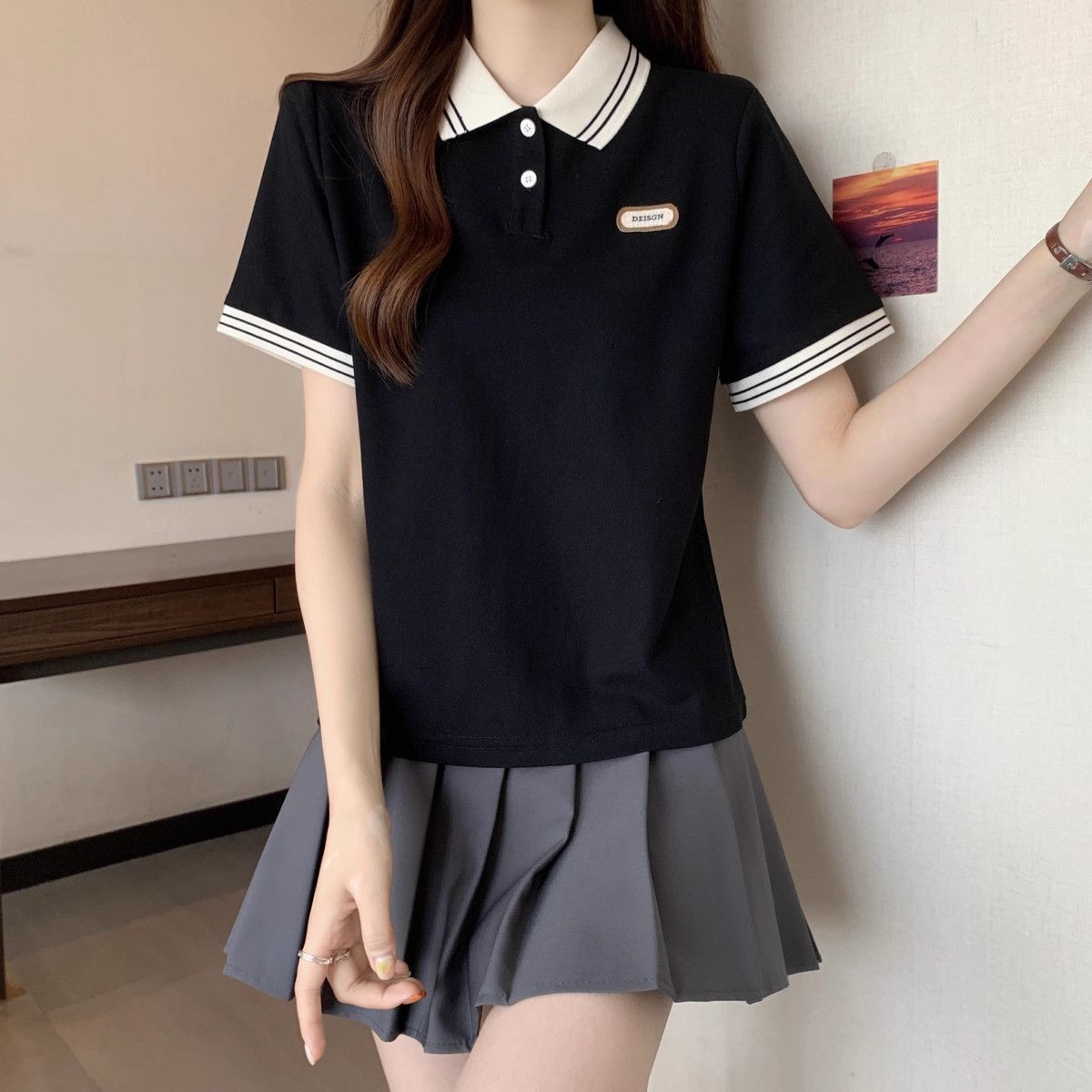 Camiseta holgada de manga corta de verano para mujer de talla grande, estilo universitario, con cuello polo y hombros descubiertos, para chica gordita