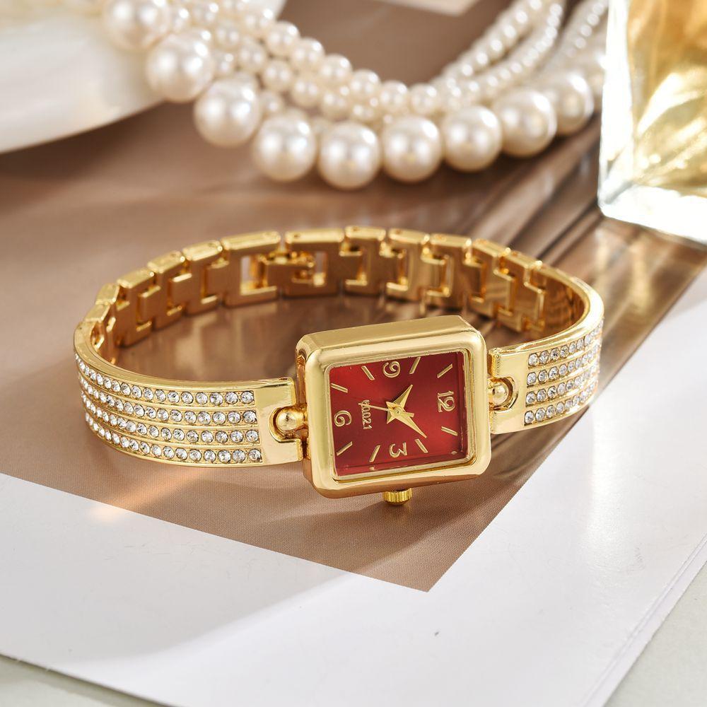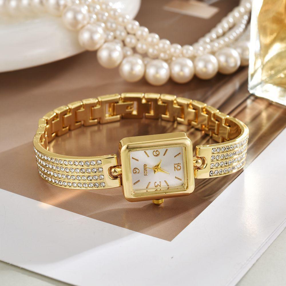 Reloj de cuarzo con banda de acero y diamantes cuadrados explosivos de temperamento, reloj de moda para mujer