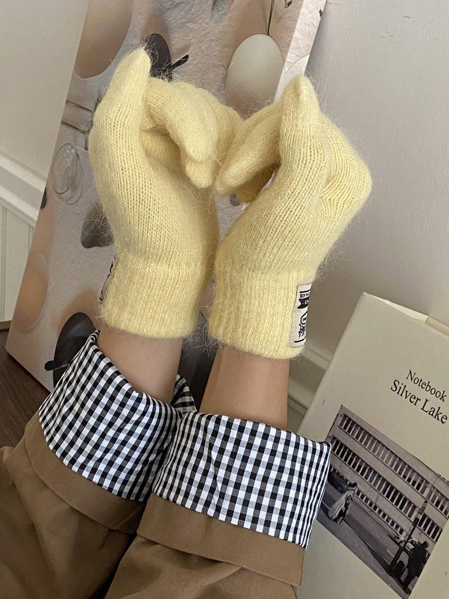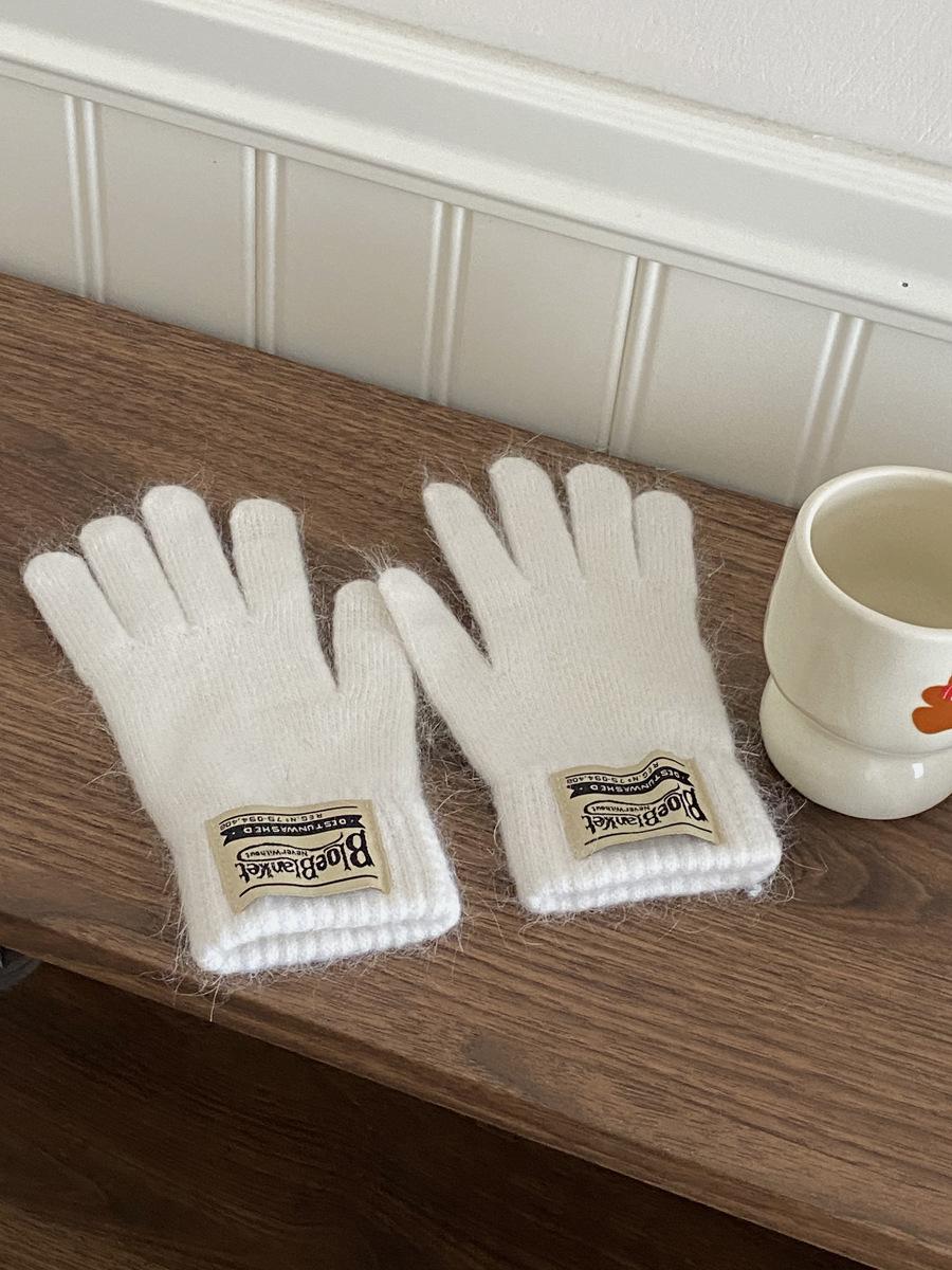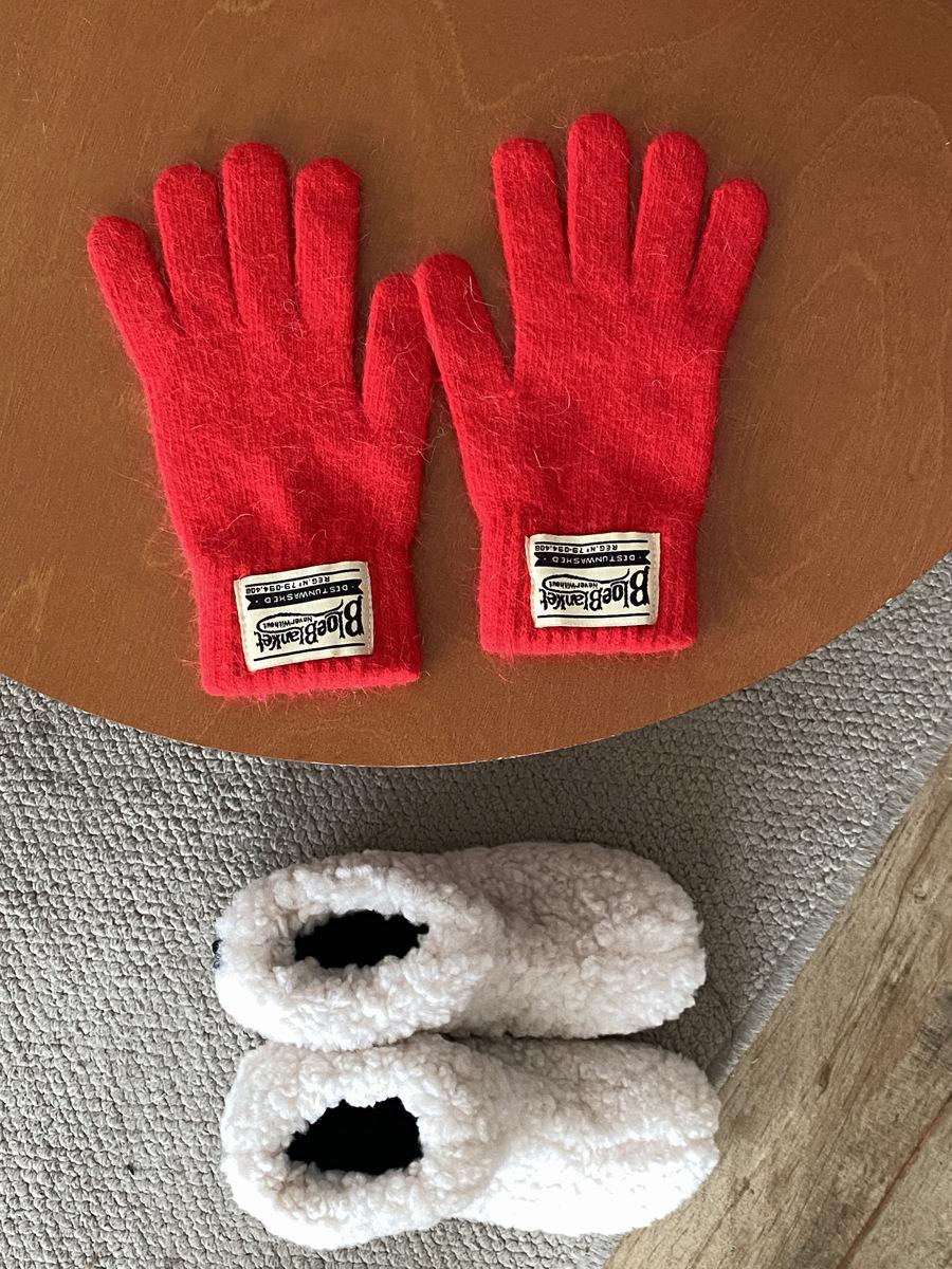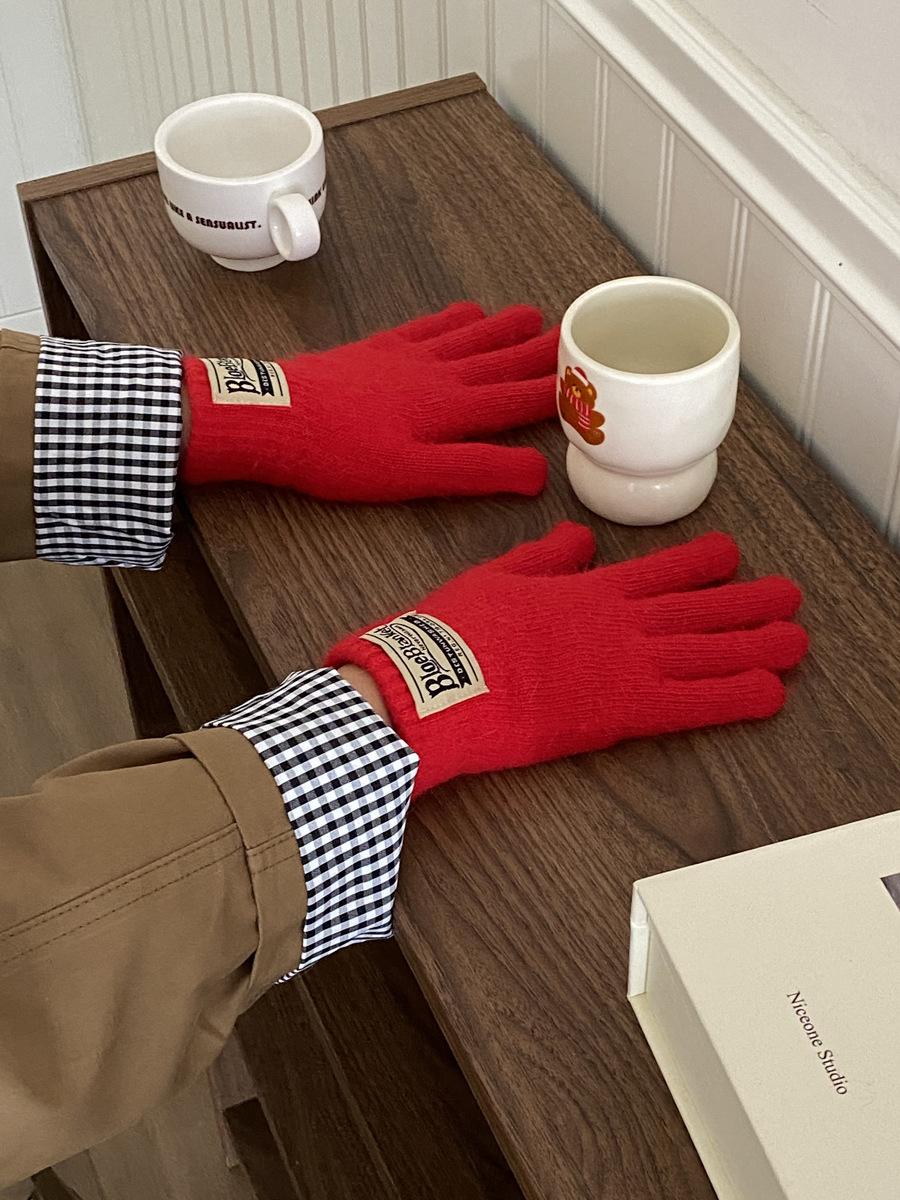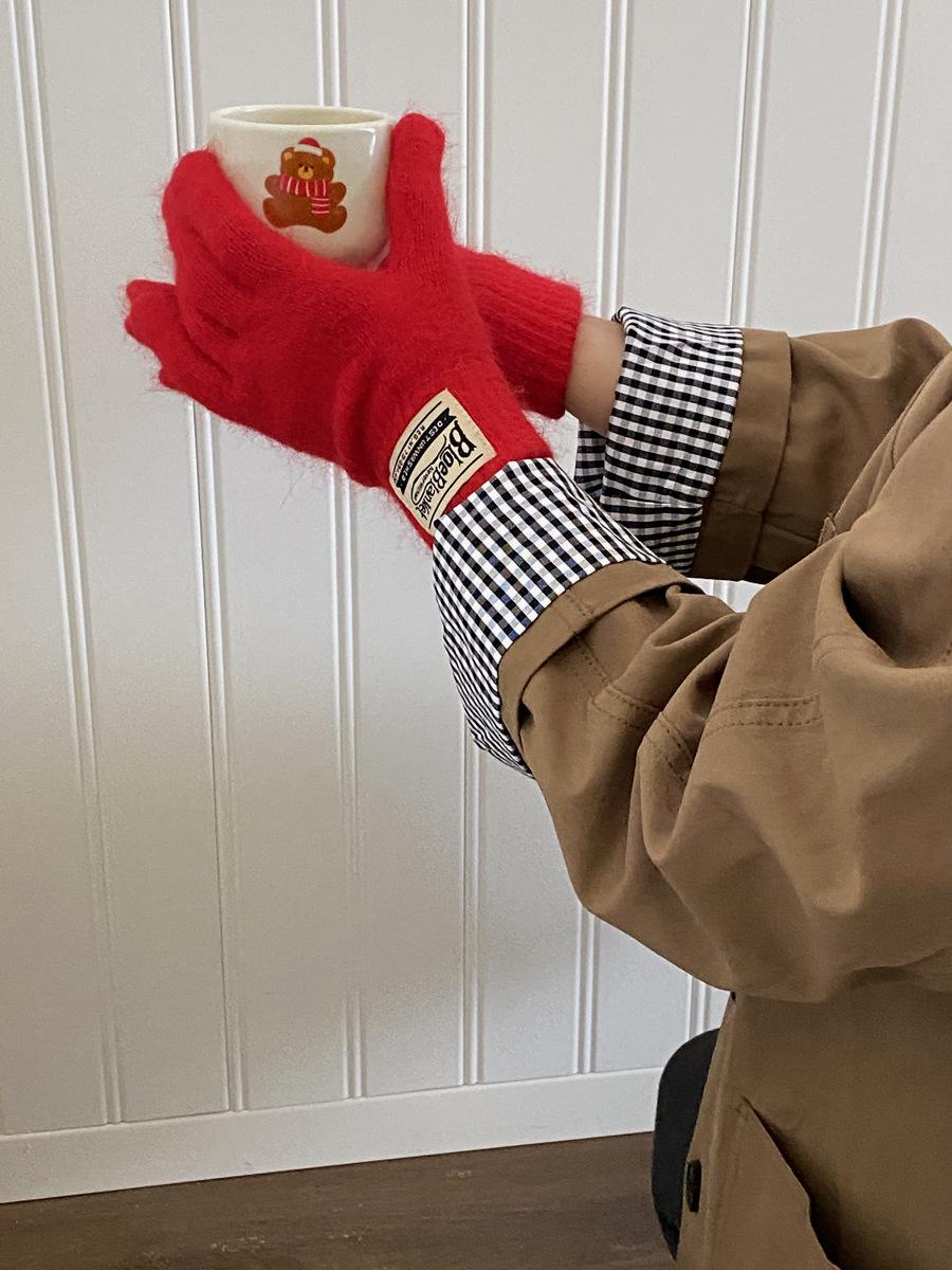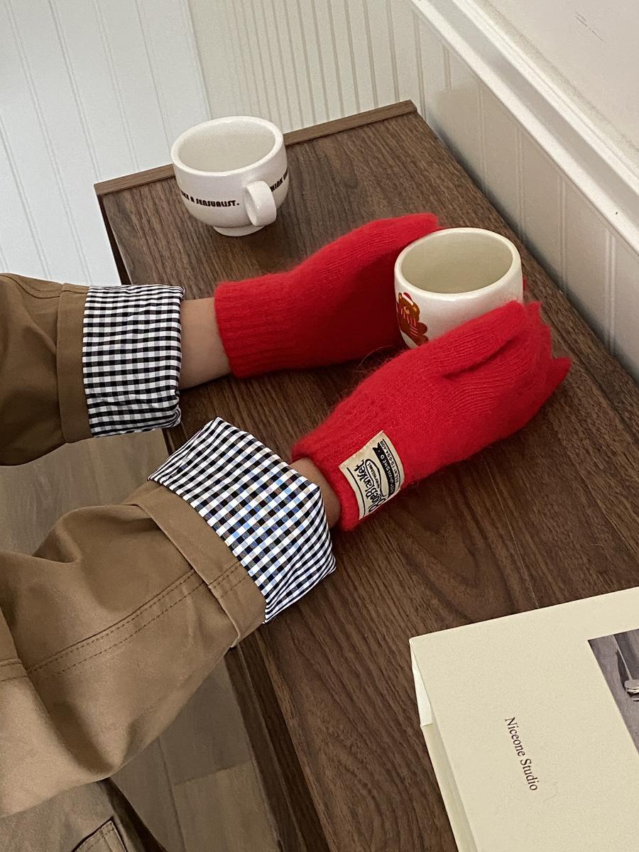 Guantes sin dedos de mezcla de piel de conejo rojo retro transfronterizos 2025, color sólido para otoño e invierno, guantes sin dedos compatibles con pantalla táctil para estudiantes
