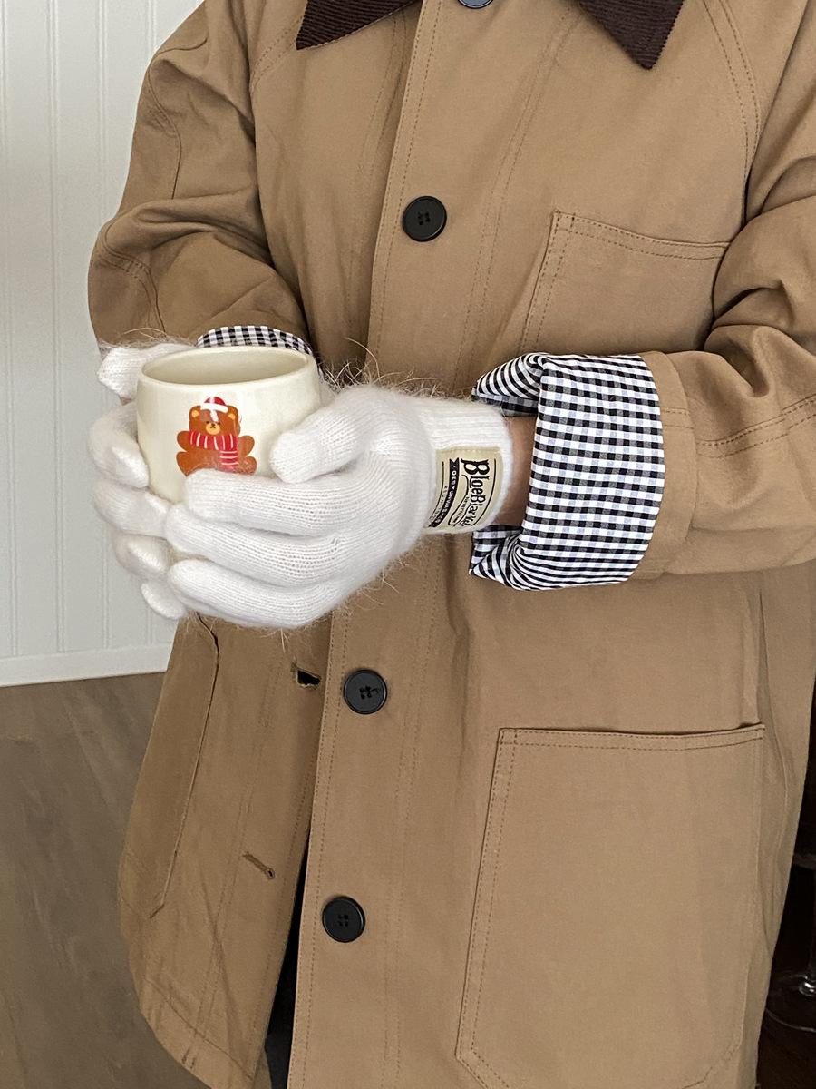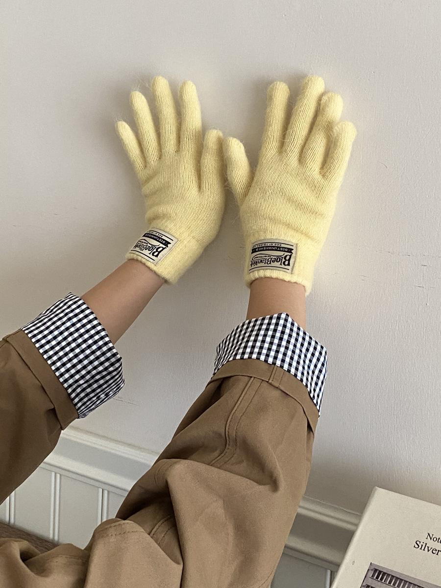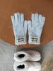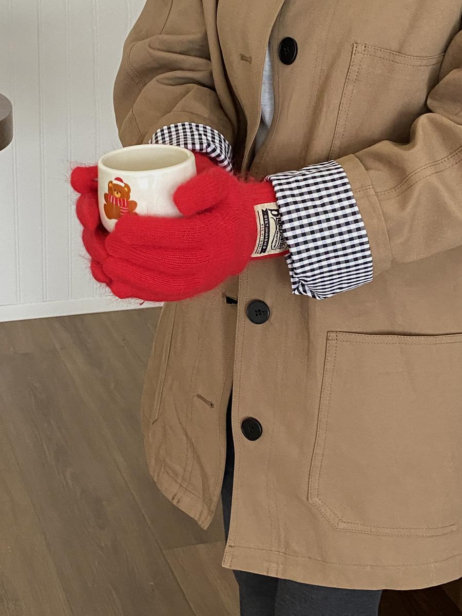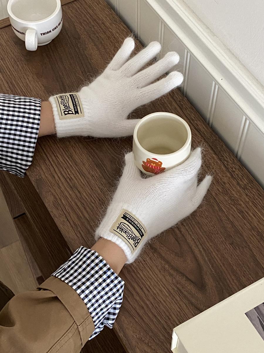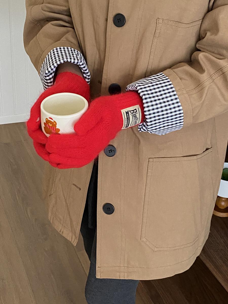 Guantes sin dedos de mezcla de piel de conejo rojo retro transfronterizos 2025, color sólido para otoño e invierno, guantes sin dedos compatibles con pantalla táctil para estudiantes