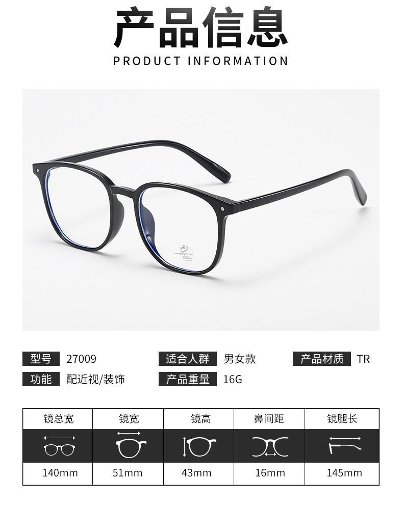 Lentes Ultraligeros Negros de Montura Grande para Mujer con Miopía Leve, Se Pueden Equipar con Gafas Planas Antiluz Azul con Graduación para Hombre sin Maquillaje