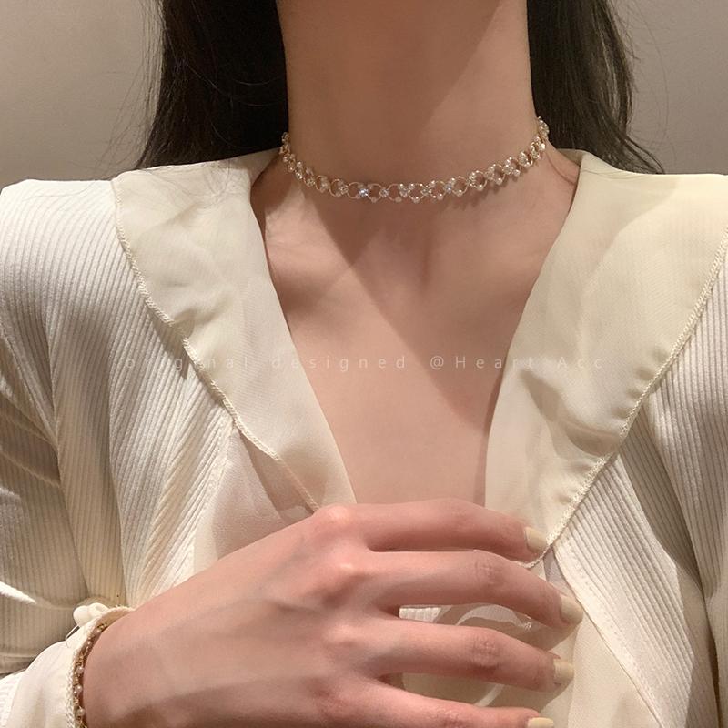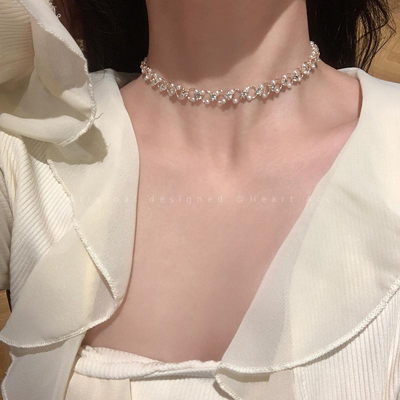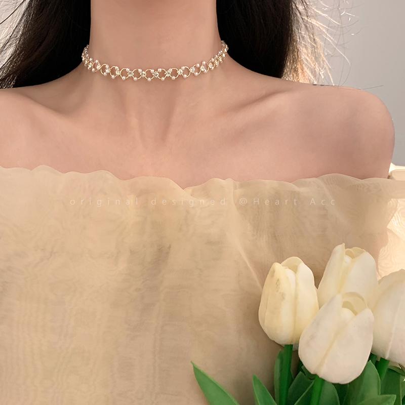 Collar de perlas con cadena para clavícula para mujer, diseño Xia Xiaozhong, de alta calidad, ligero, de lujo, de celebridades de Internet, delicado collar gargantilla de moda