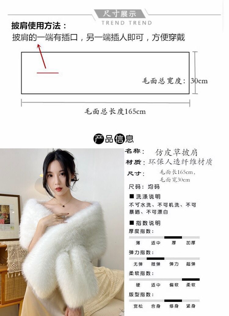 Chal de Cheongsam de Piel Sintética de Zorro para Combinar con Todo Cuello de Piel Capa de Otoño e Invierno Escenario Cena Vestido de Novia Bufanda para Mujer
