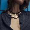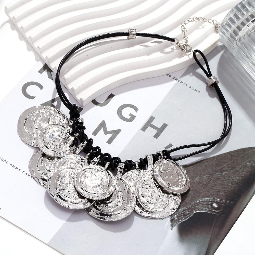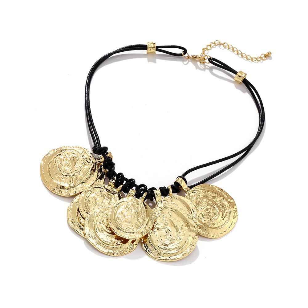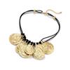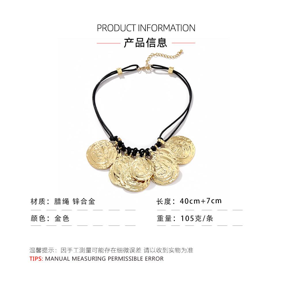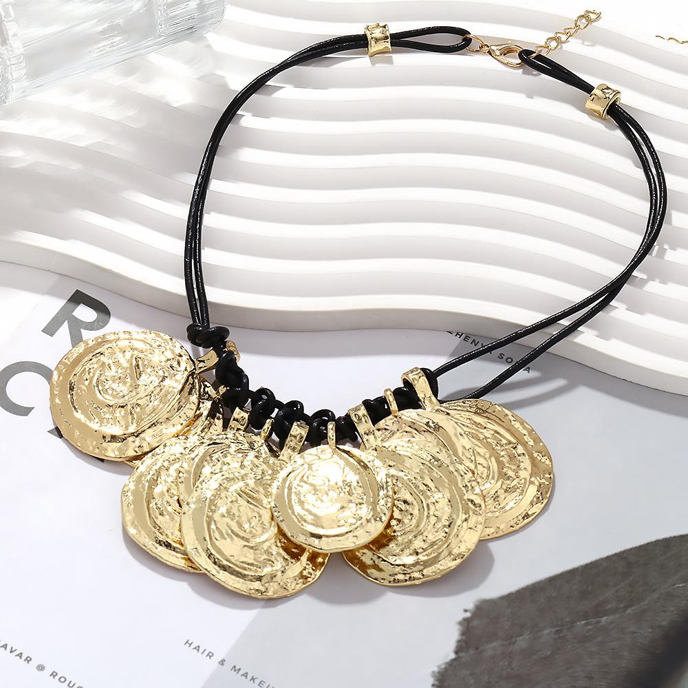 Collar con colgante redondo de metal de lujo ZA Light, estilo europeo y americano, tejido a mano con nudo encerado, con monedas de marca redondas, para clavícula.