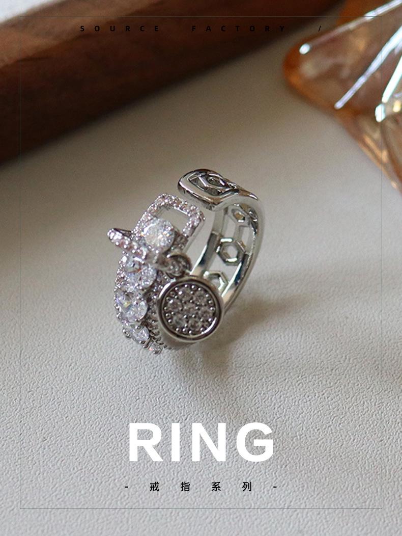 Nuevo anillo de circonita exquisito de moda para mujer, estilo retro, ligero, de lujo, elegante, con diseño combinable, anillo abierto para mujer.