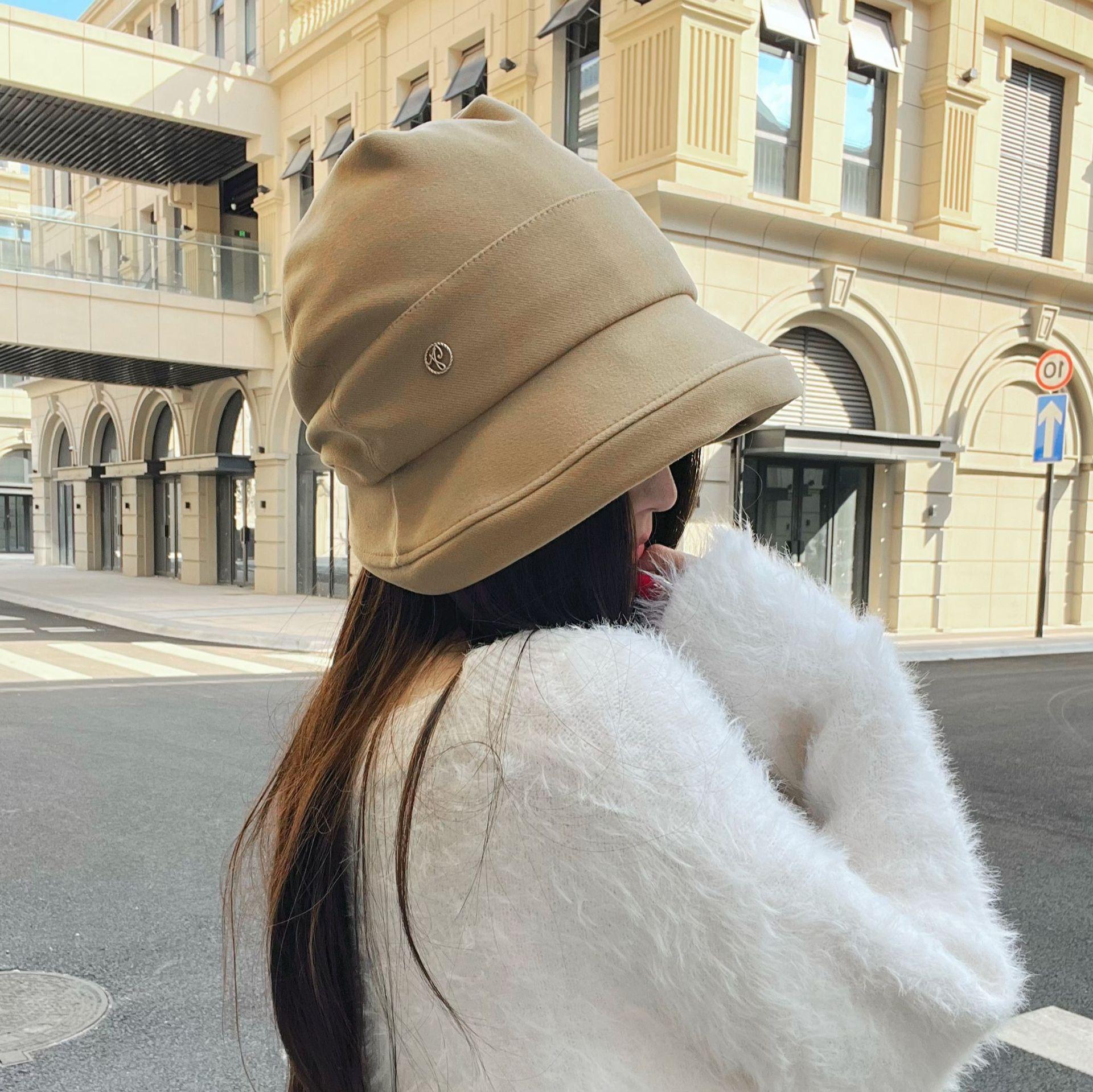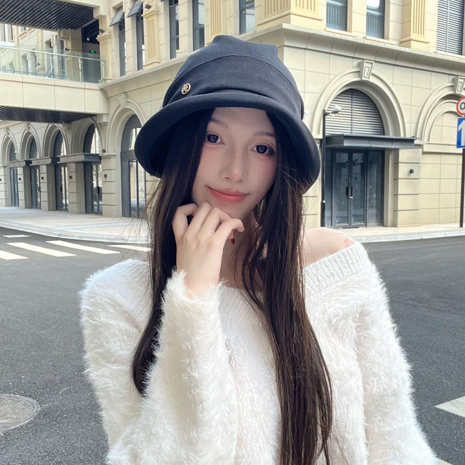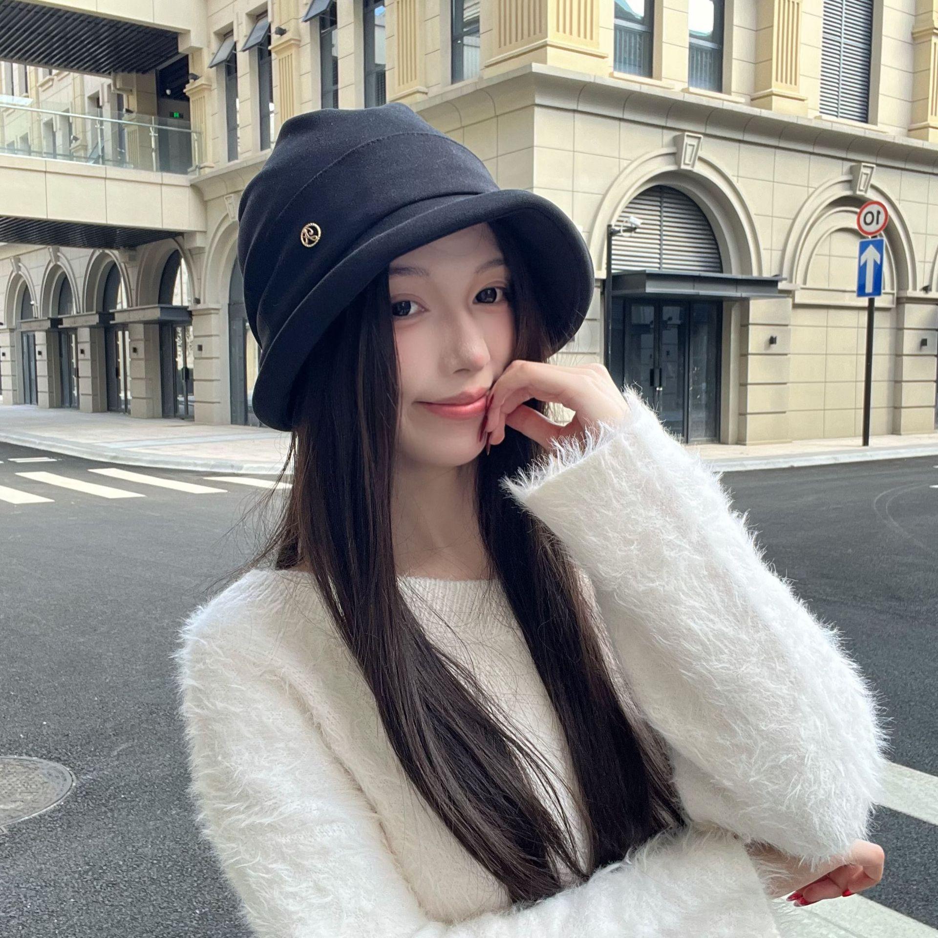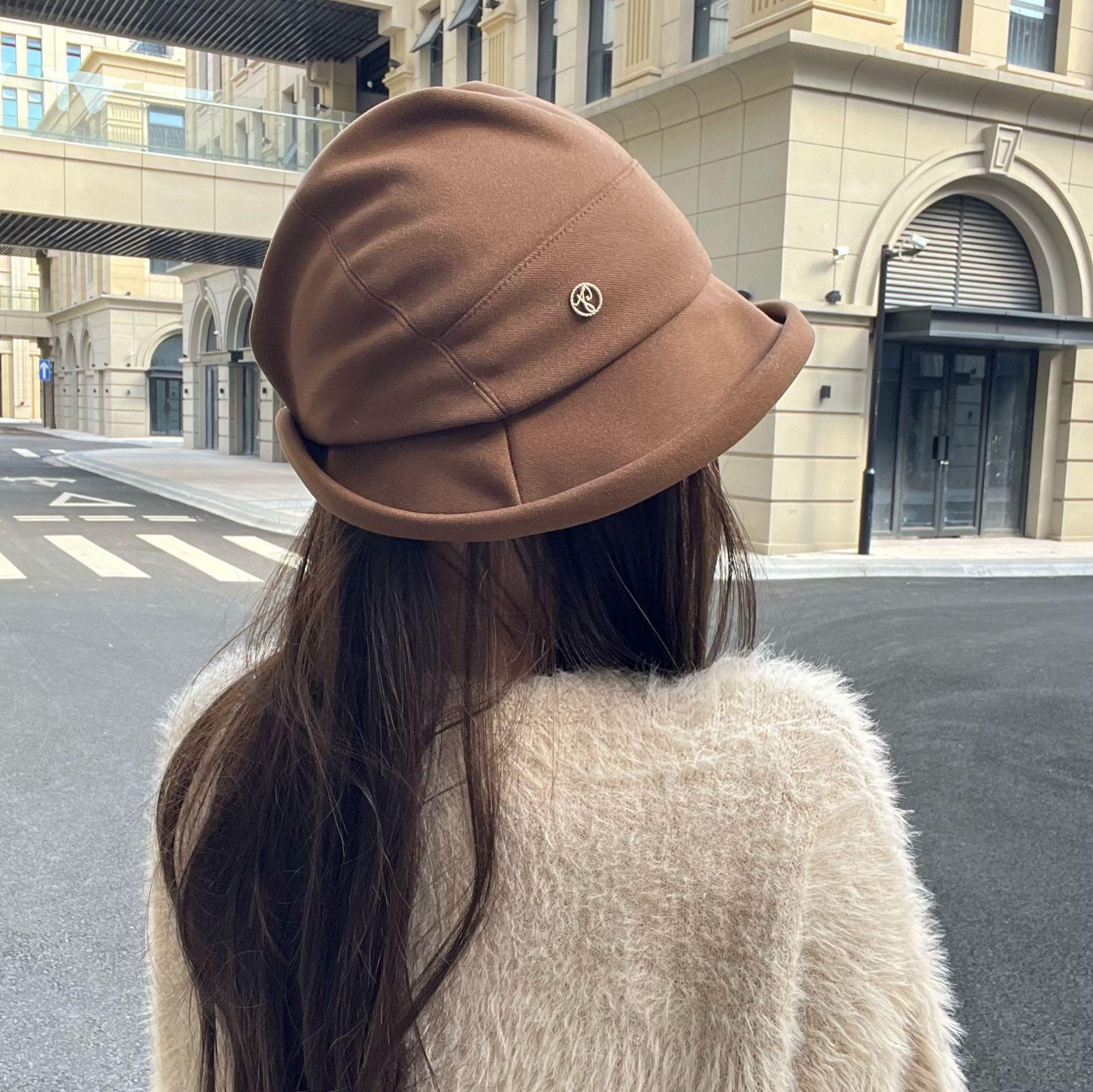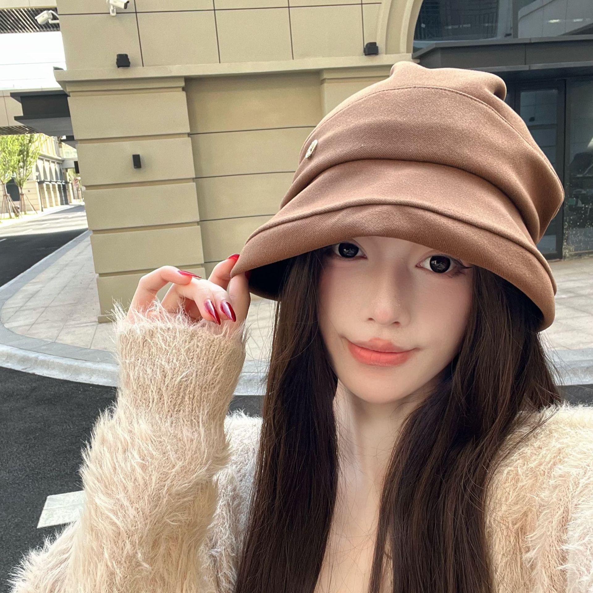 Otoño e Invierno Nuevo Estilo Coreano Estilo Lujo Ligero Liso Combinable Sombrero de Olla para Mujer Color Sólido Retro Moldeador de Rostro Pequeño Moda Cálido Sombrero de Montón