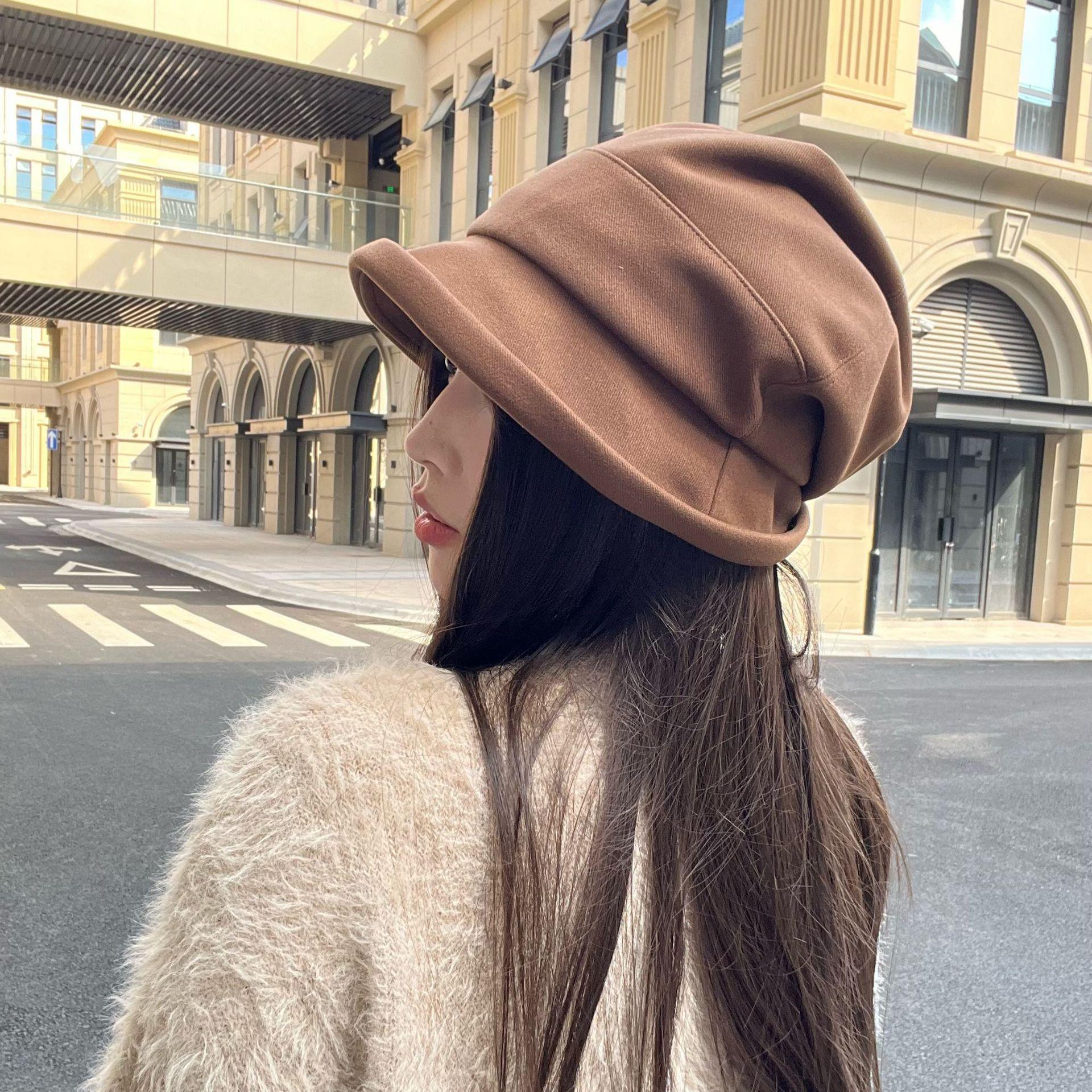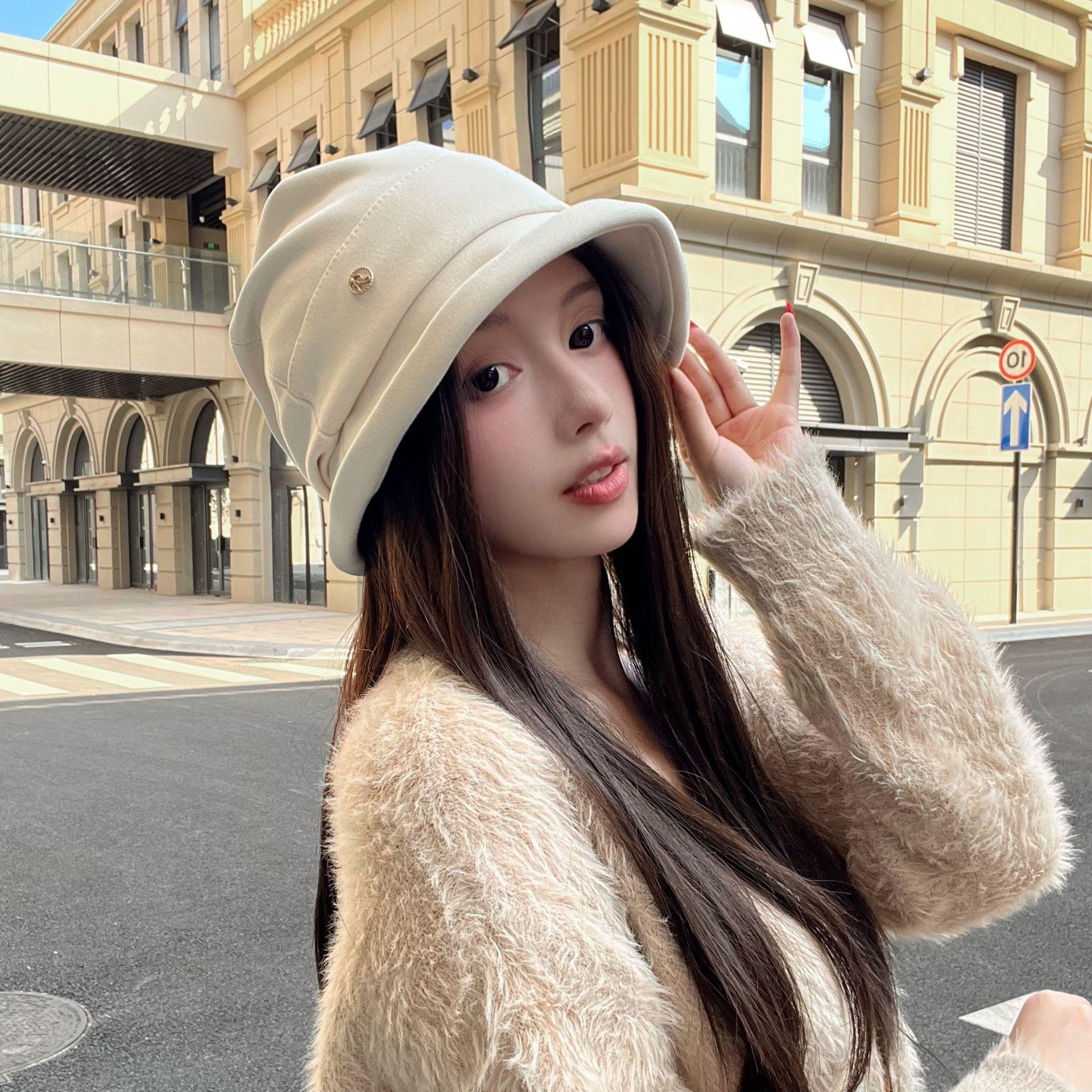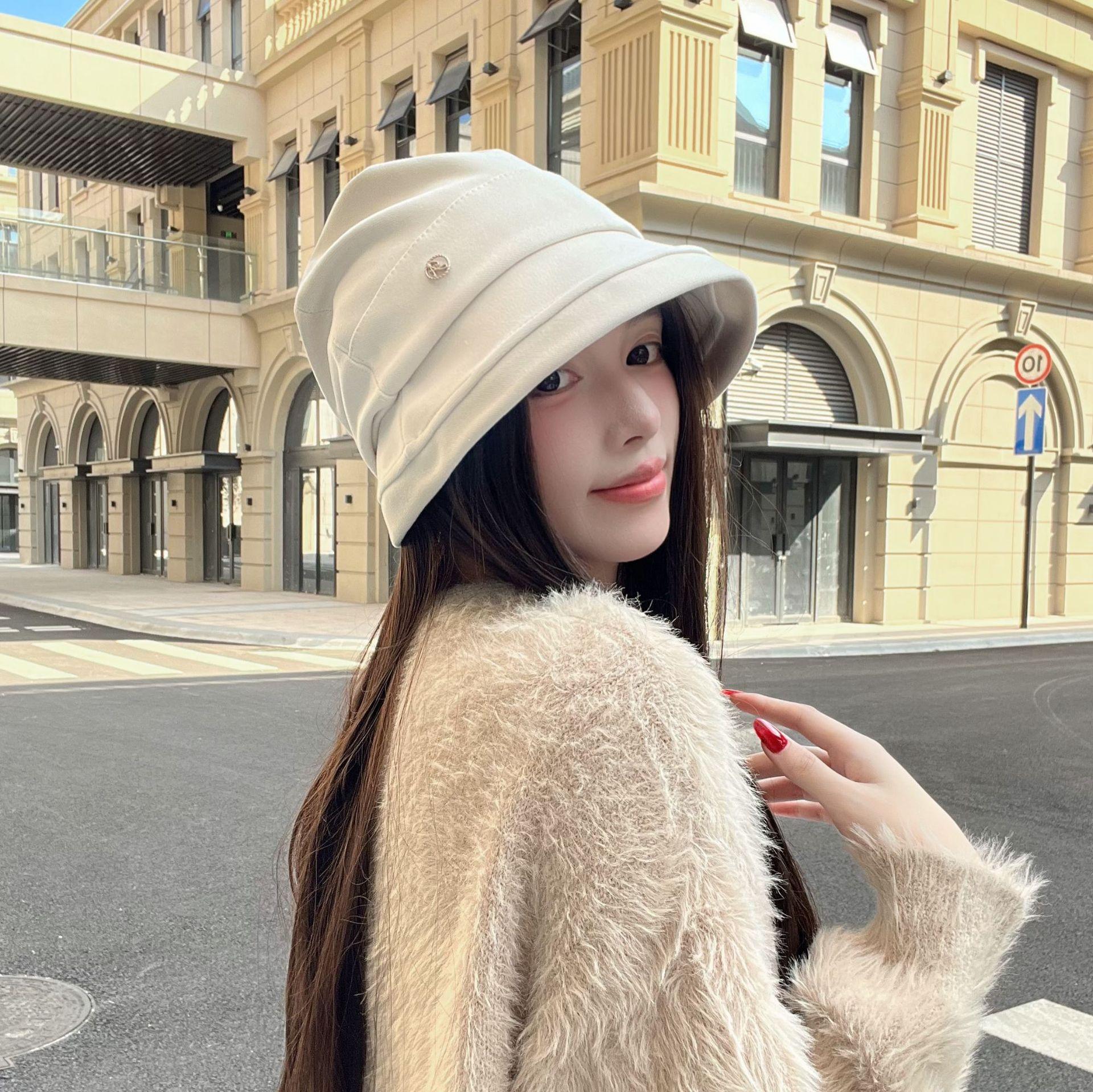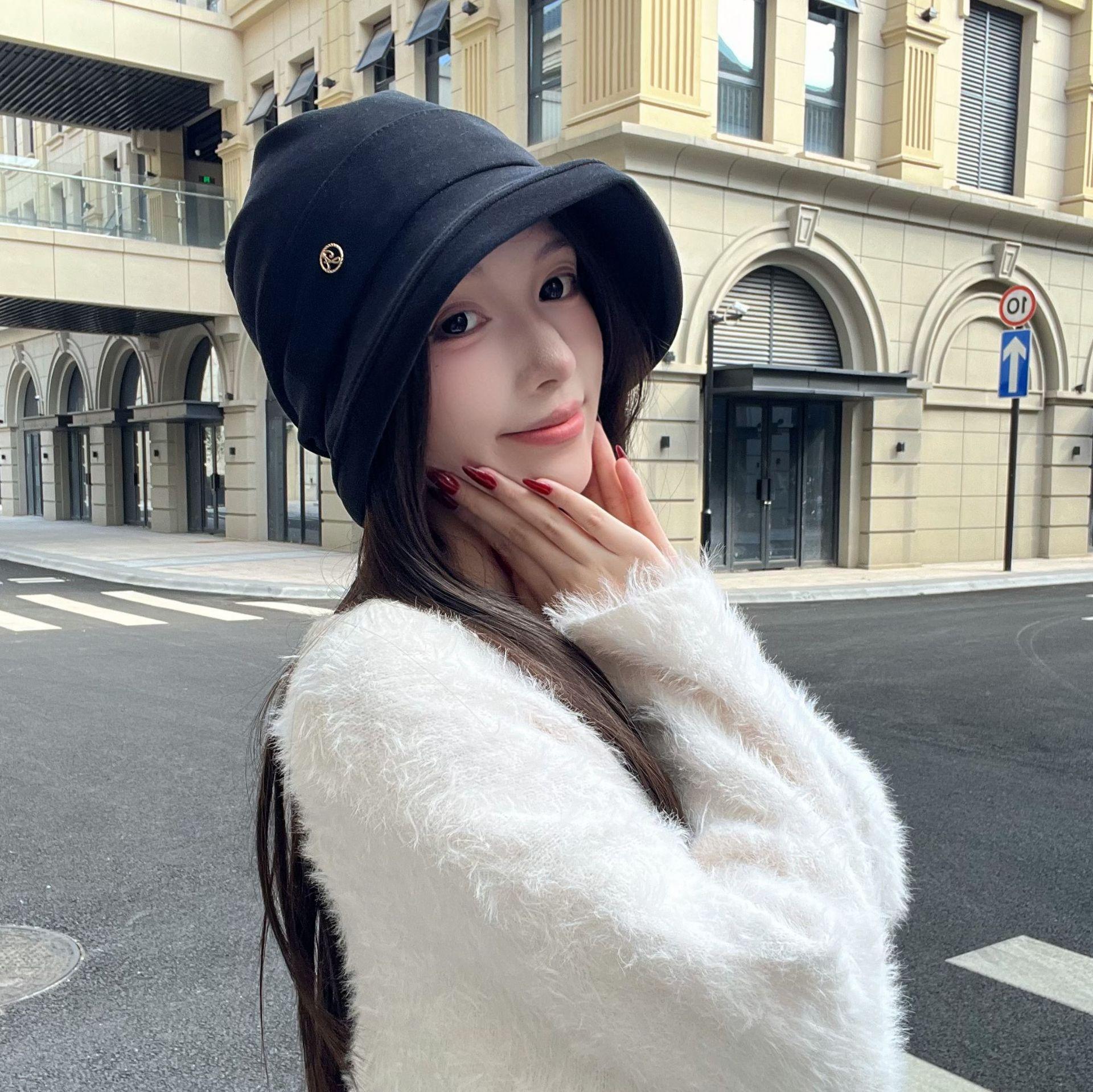 Otoño e Invierno Nuevo Estilo Coreano Estilo Lujo Ligero Liso Combinable Sombrero de Olla para Mujer Color Sólido Retro Moldeador de Rostro Pequeño Moda Cálido Sombrero de Montón