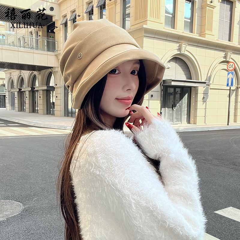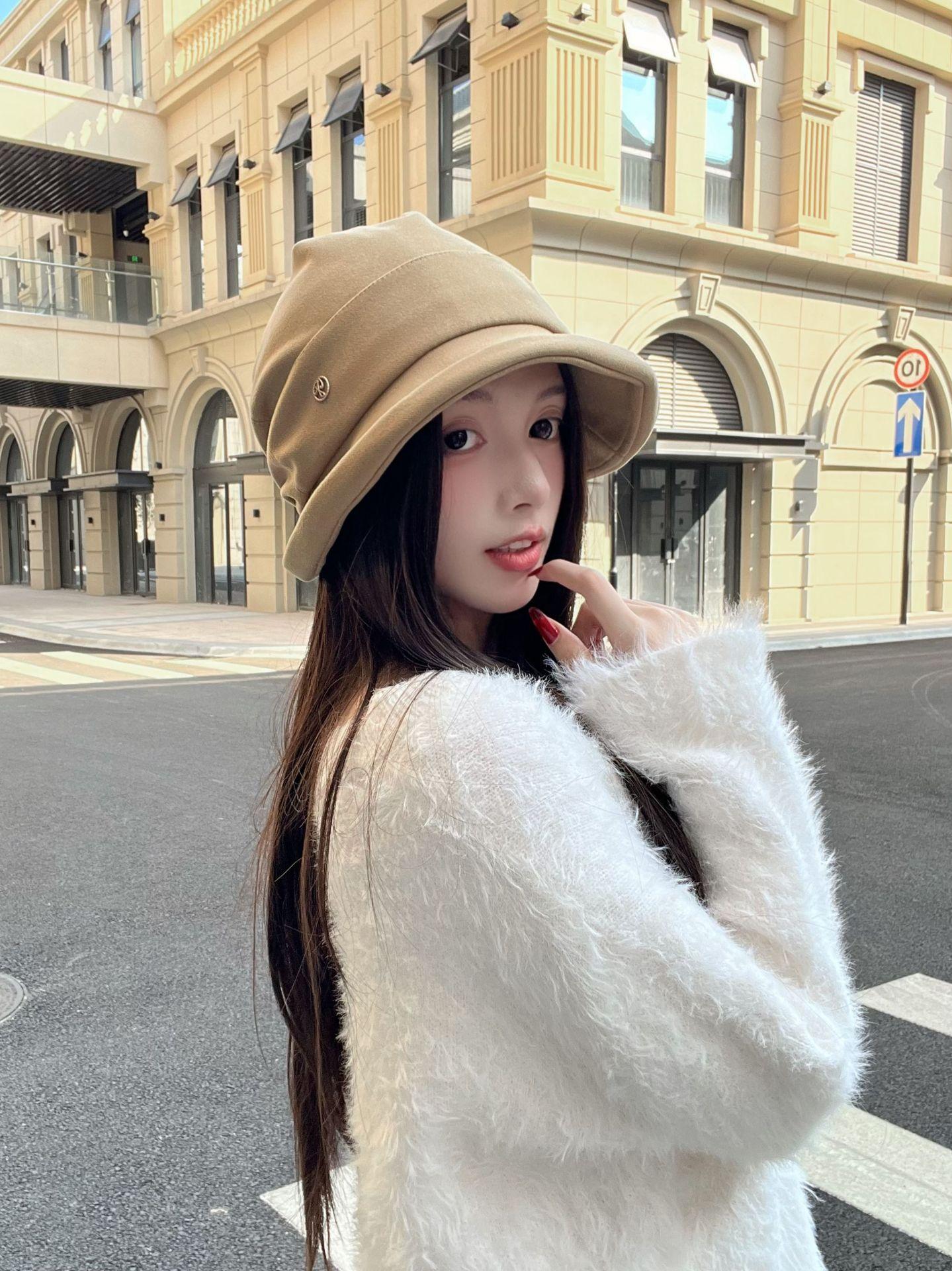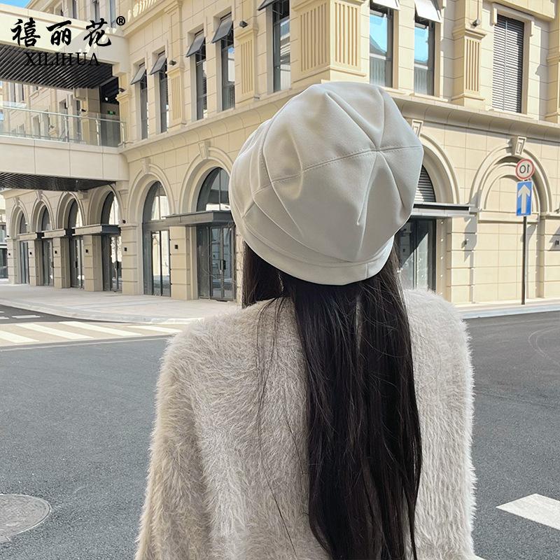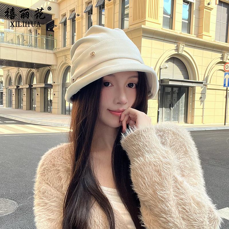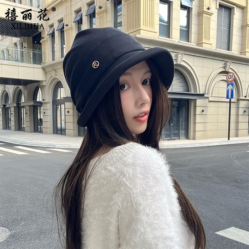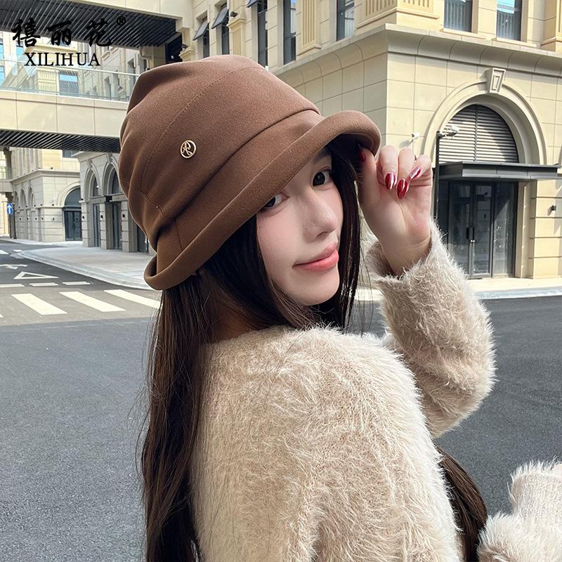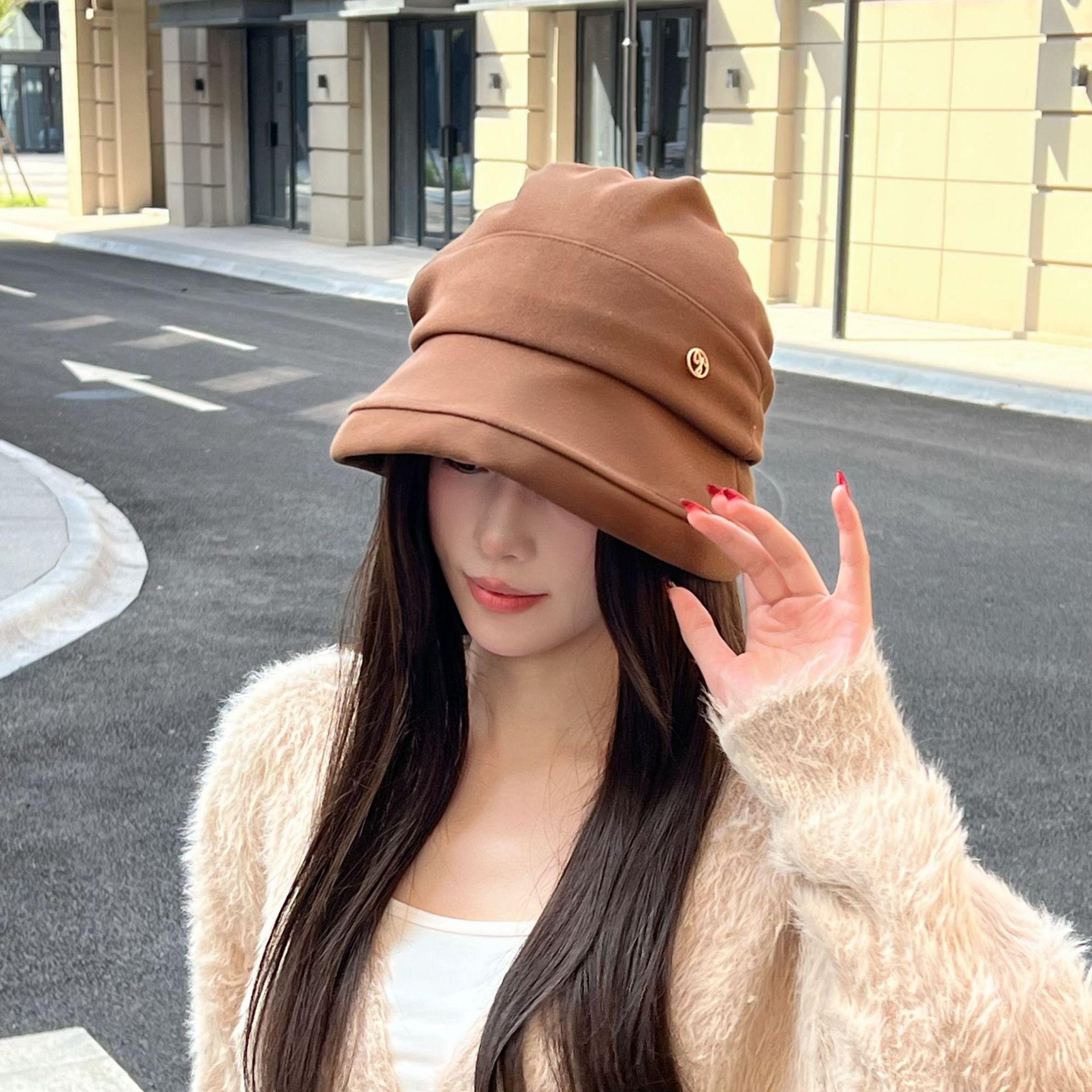 Otoño e Invierno Nuevo Estilo Coreano Estilo Lujo Ligero Liso Combinable Sombrero de Olla para Mujer Color Sólido Retro Moldeador de Rostro Pequeño Moda Cálido Sombrero de Montón