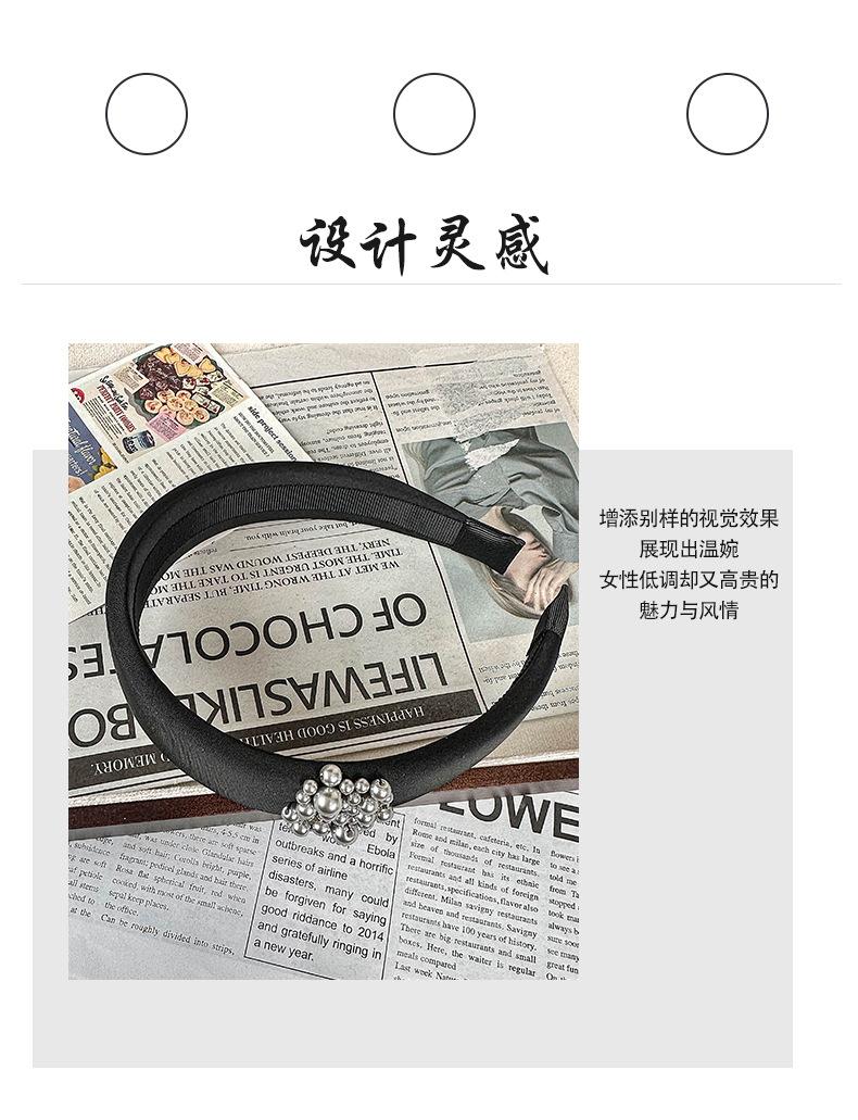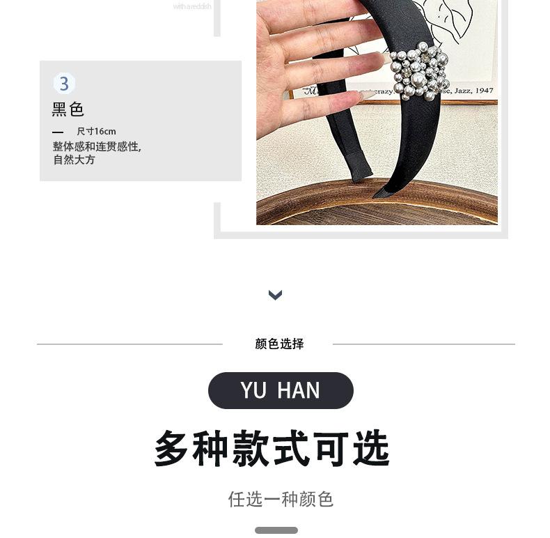 Estilo K de la Diadema Aro para el Cabello Negro de Perlas y Pedrería de Nuevo Estilo para Mujeres con Alta Presión en el Cráneo Cabello Ancho Horquilla Accesorios Elegantes para el Cabello Diadema