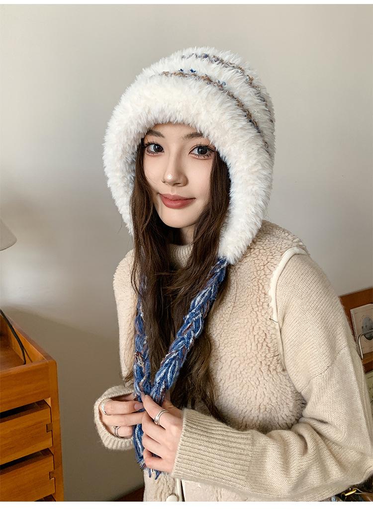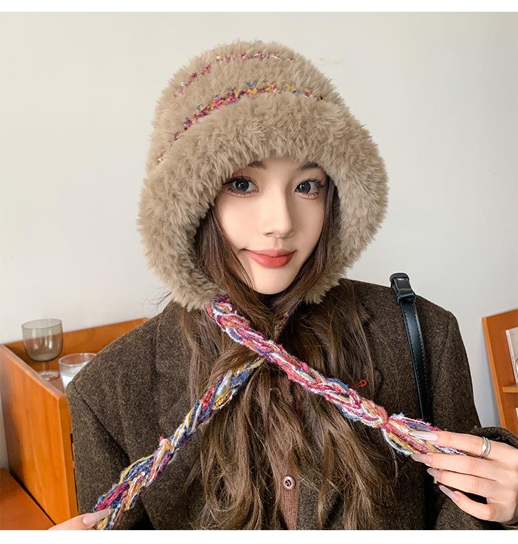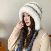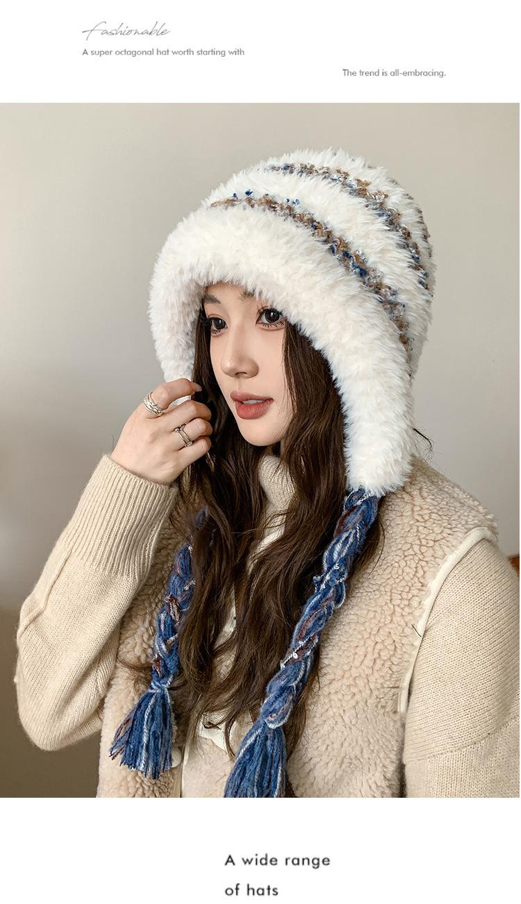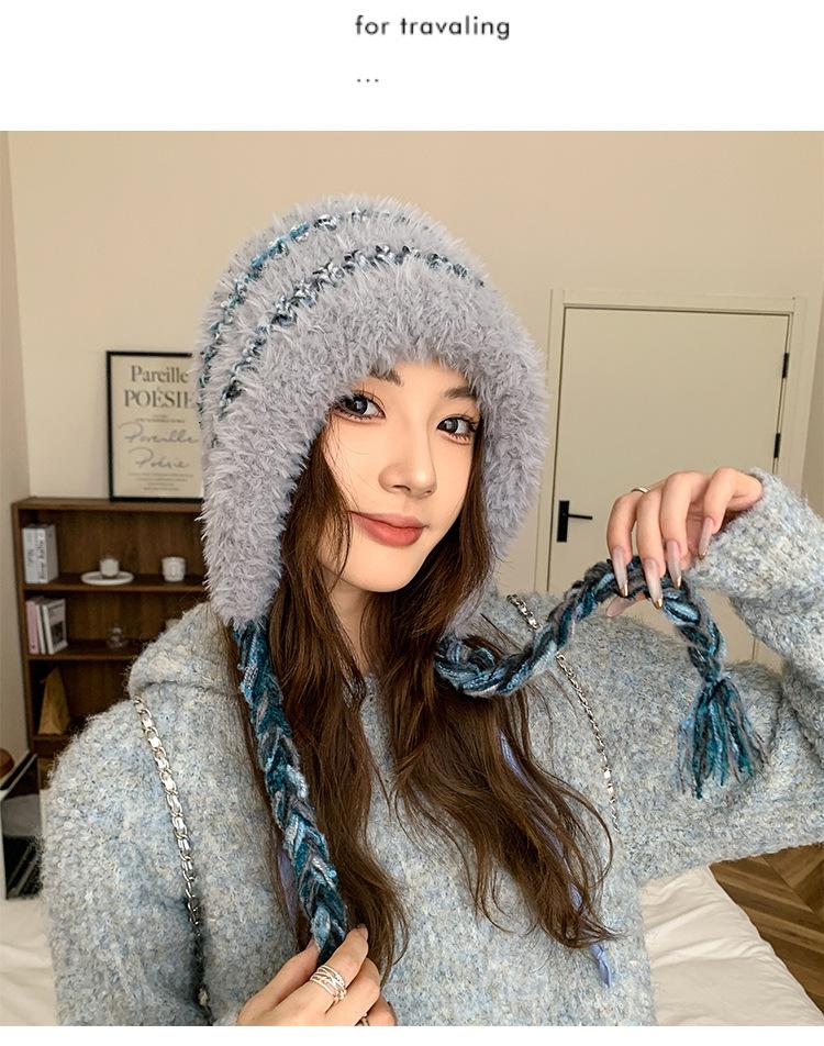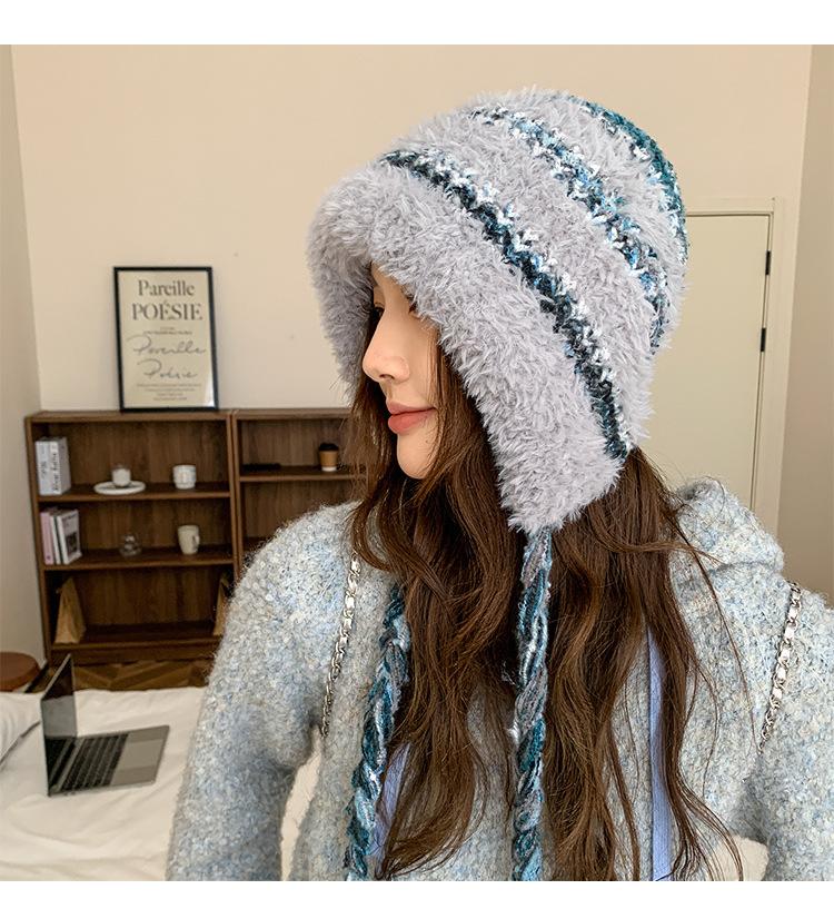 Gorro mullido de otoño e invierno para mujer, con protección para los oídos y puntera, estilo coreano, para montar a caballo, de punto a juego, cálido, de lana.