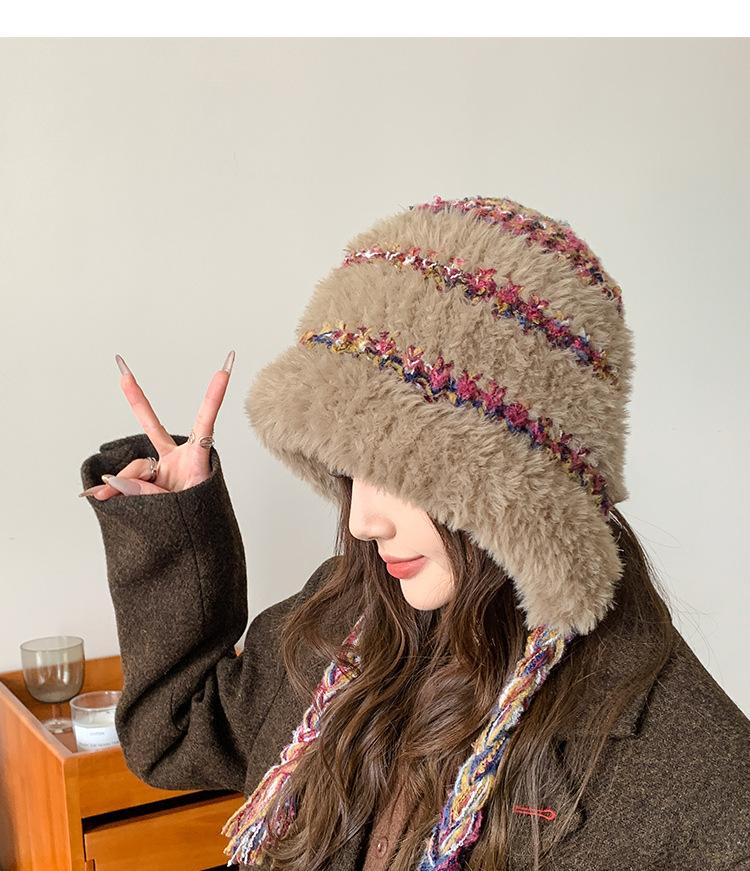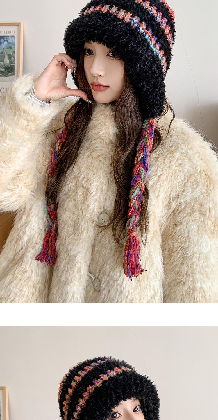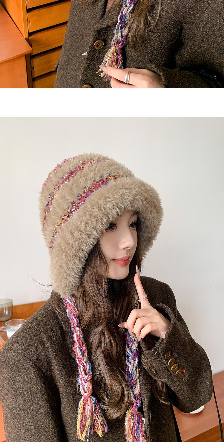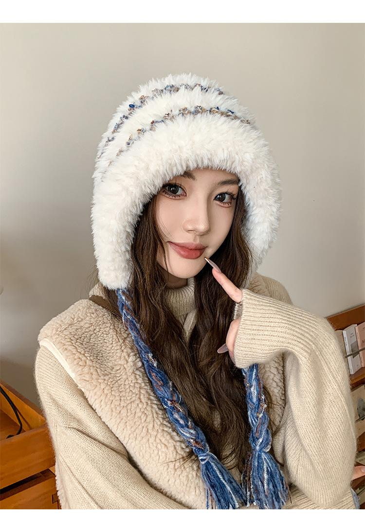 Gorro mullido de otoño e invierno para mujer, con protección para los oídos y puntera, estilo coreano, para montar a caballo, de punto a juego, cálido, de lana.