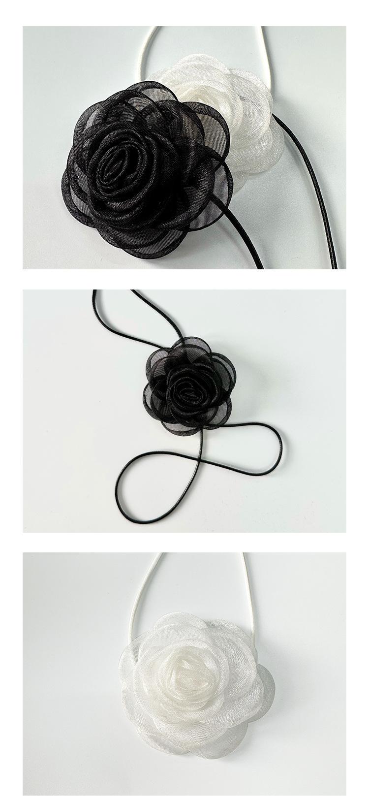 Aolol ama el nicho de alta gama, hecho a mano, estilo retro, collar, gargantilla y pulsera de flores en blanco y negro, de doble propósito.