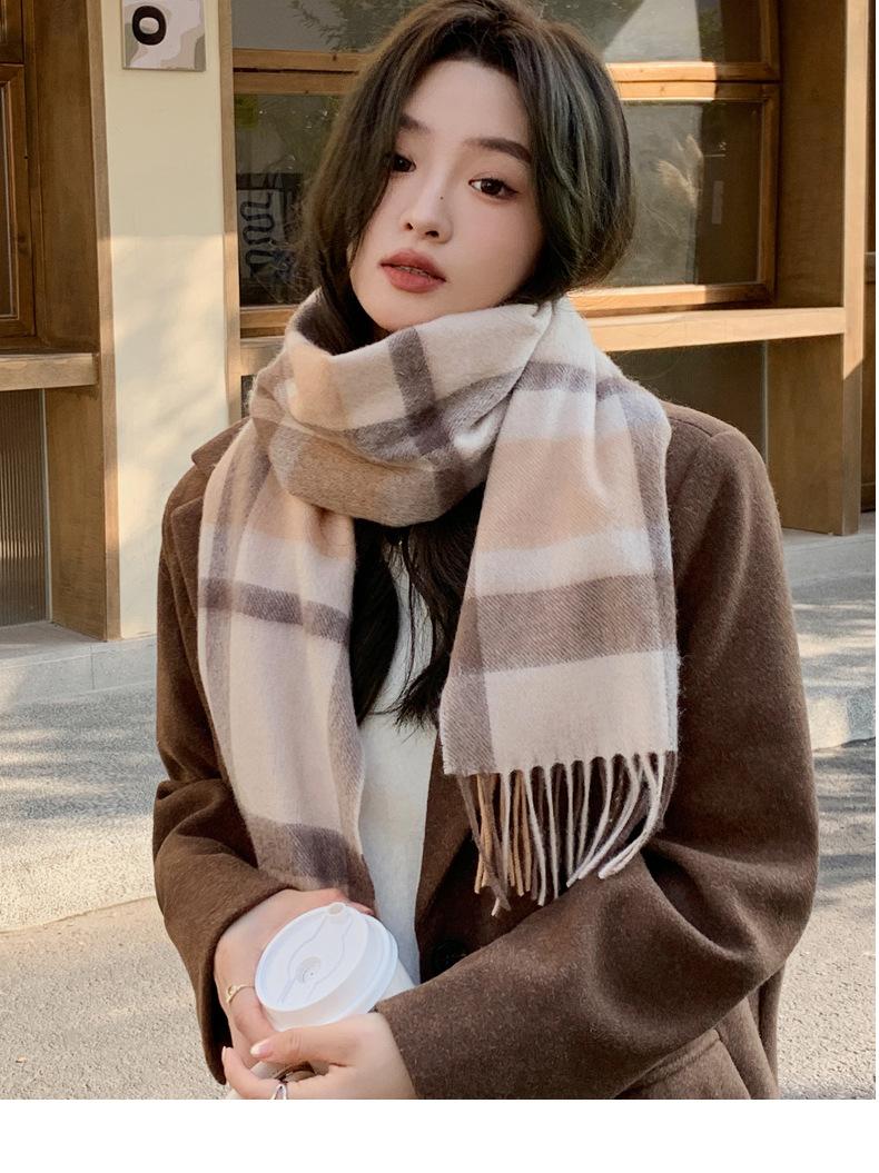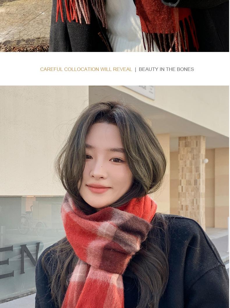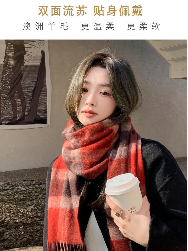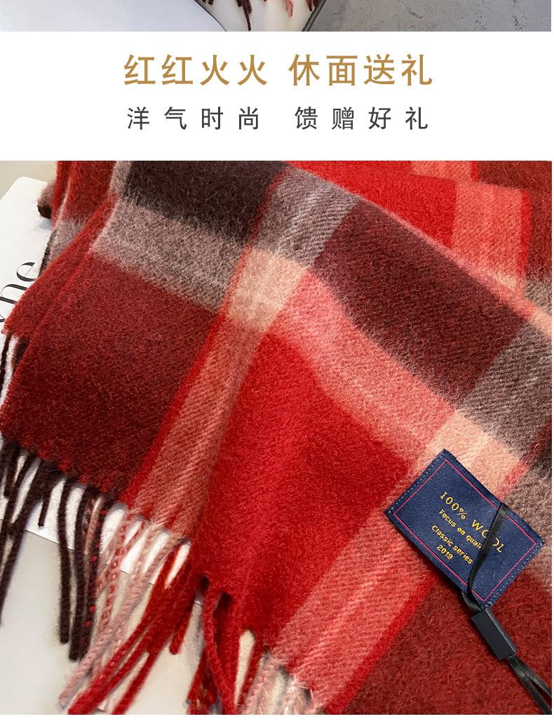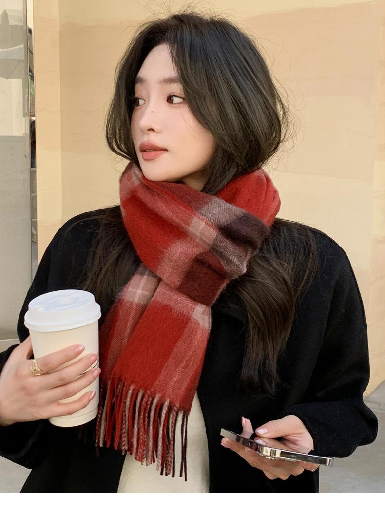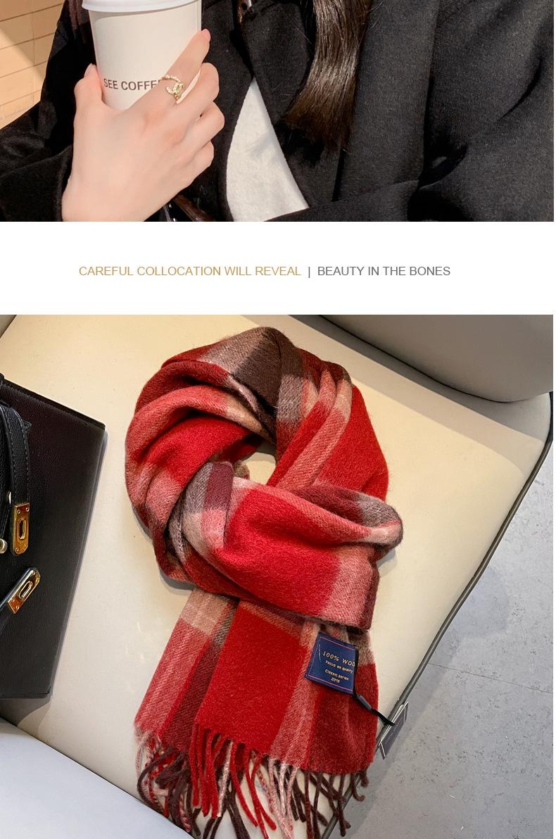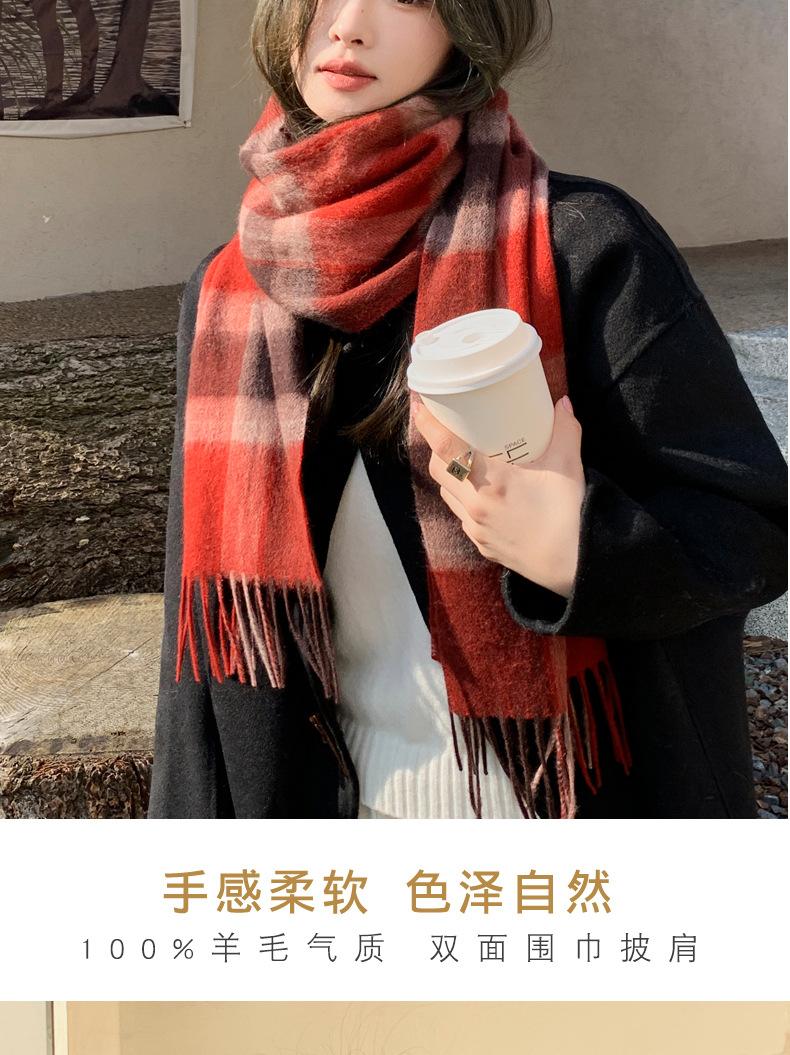 Bufanda de lana pura 100% para mujer, estilo británico, vintage, a cuadros, roja, para hombre y mujer, para otoño e invierno, cálida para el cuello.