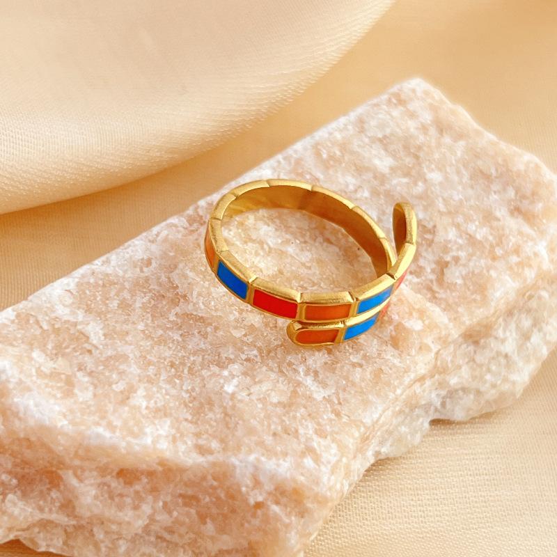 Compra Anillo de acero inoxidable con diseño geométrico simple y moderno con gotas de aceite para mujer, estilo nuevo y popular entre celebridades de Internet europeas y americanas. al por mayor en Joom.pro