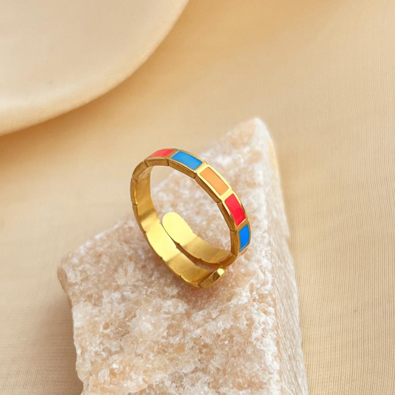 Anillo de acero inoxidable con diseño geométrico simple y moderno con gotas de aceite para mujer, estilo nuevo y popular entre celebridades de Internet europeas y americanas.