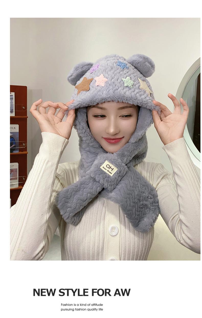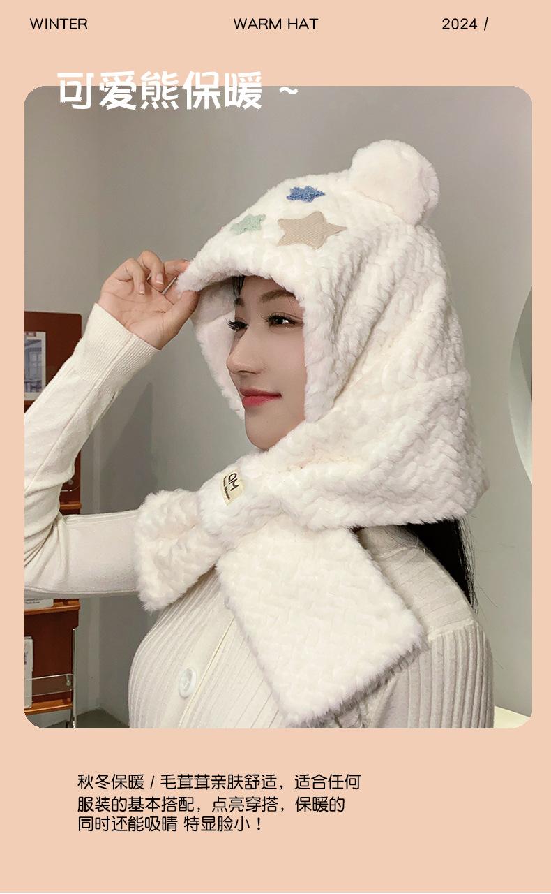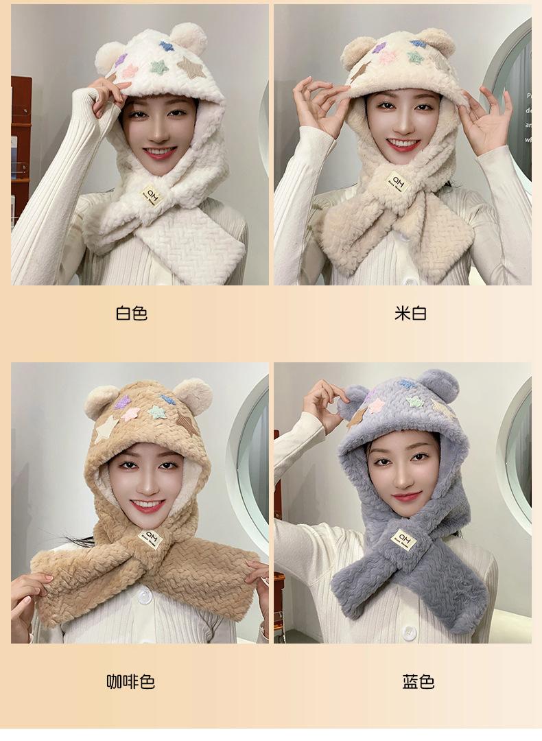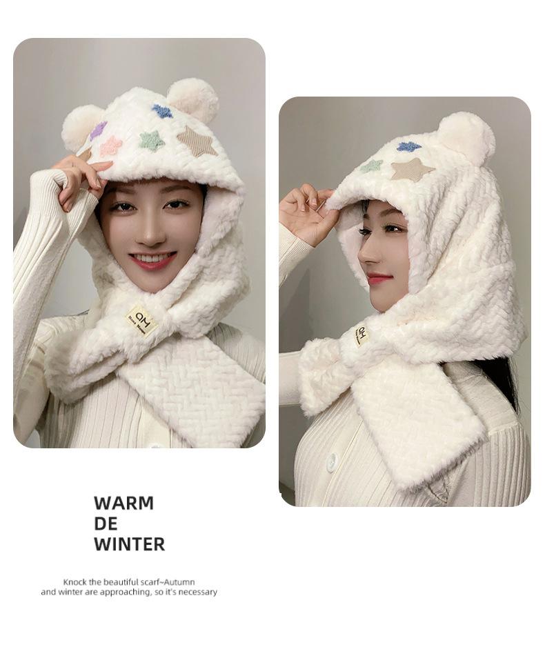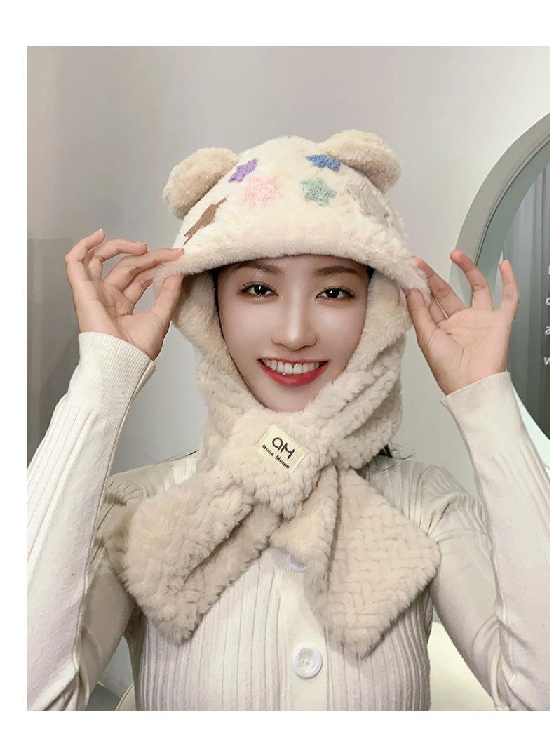 Gorro de peluche Star Bear para mujer, otoño e invierno, coreano, bonito, grueso y cálido, bufanda, todo en uno, para ciclismo
