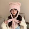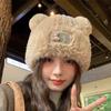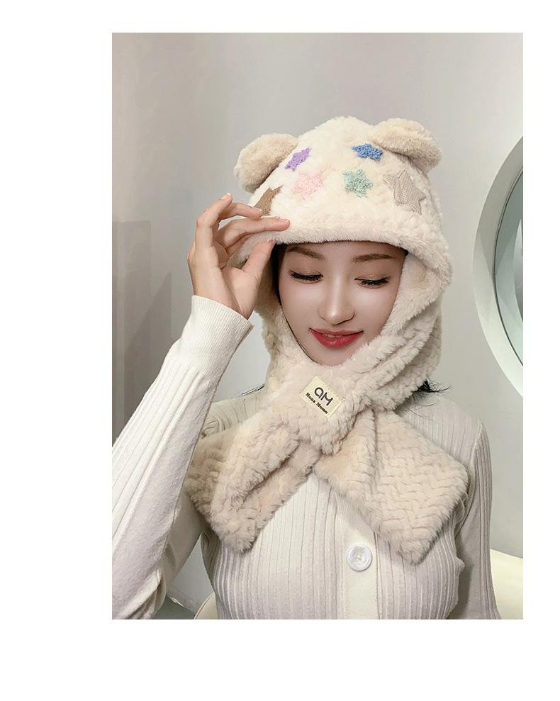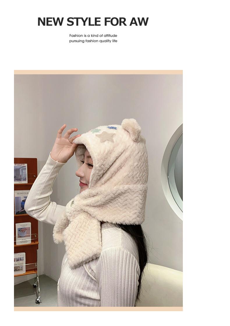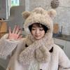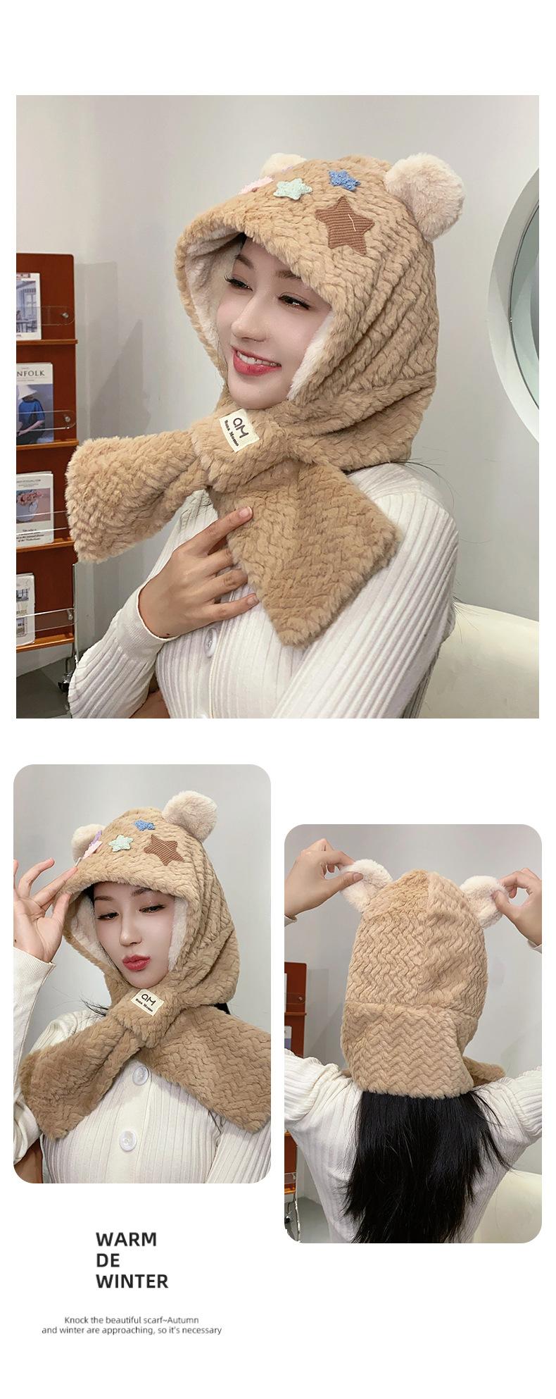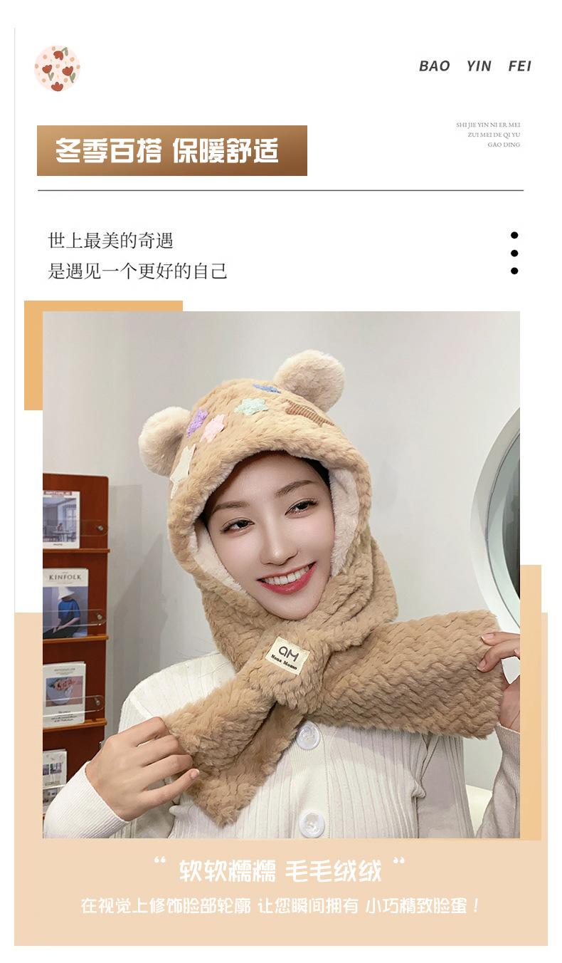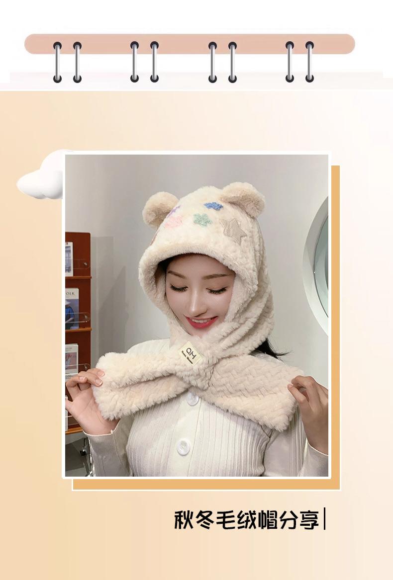 Gorro de peluche Star Bear para mujer, otoño e invierno, coreano, bonito, grueso y cálido, bufanda, todo en uno, para ciclismo