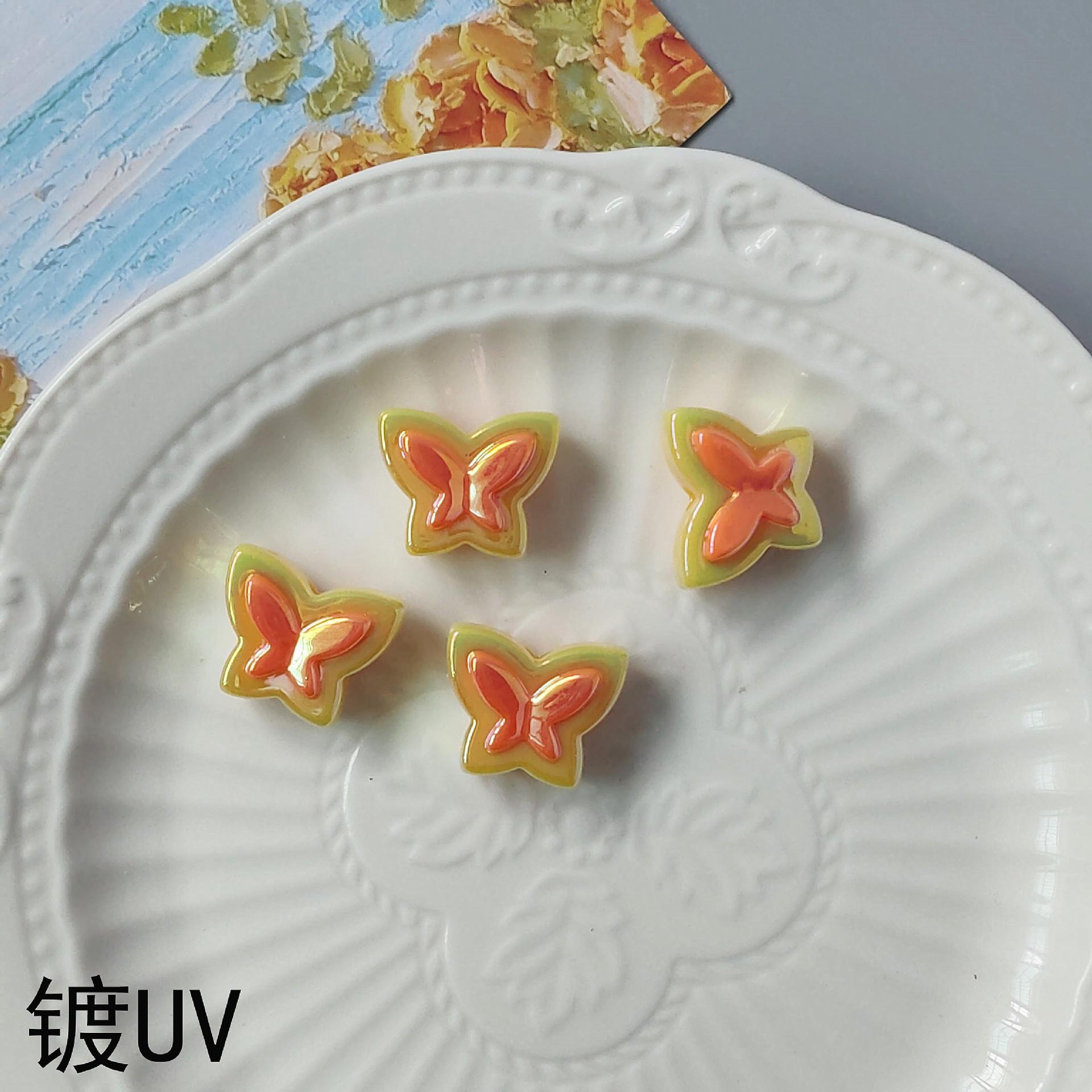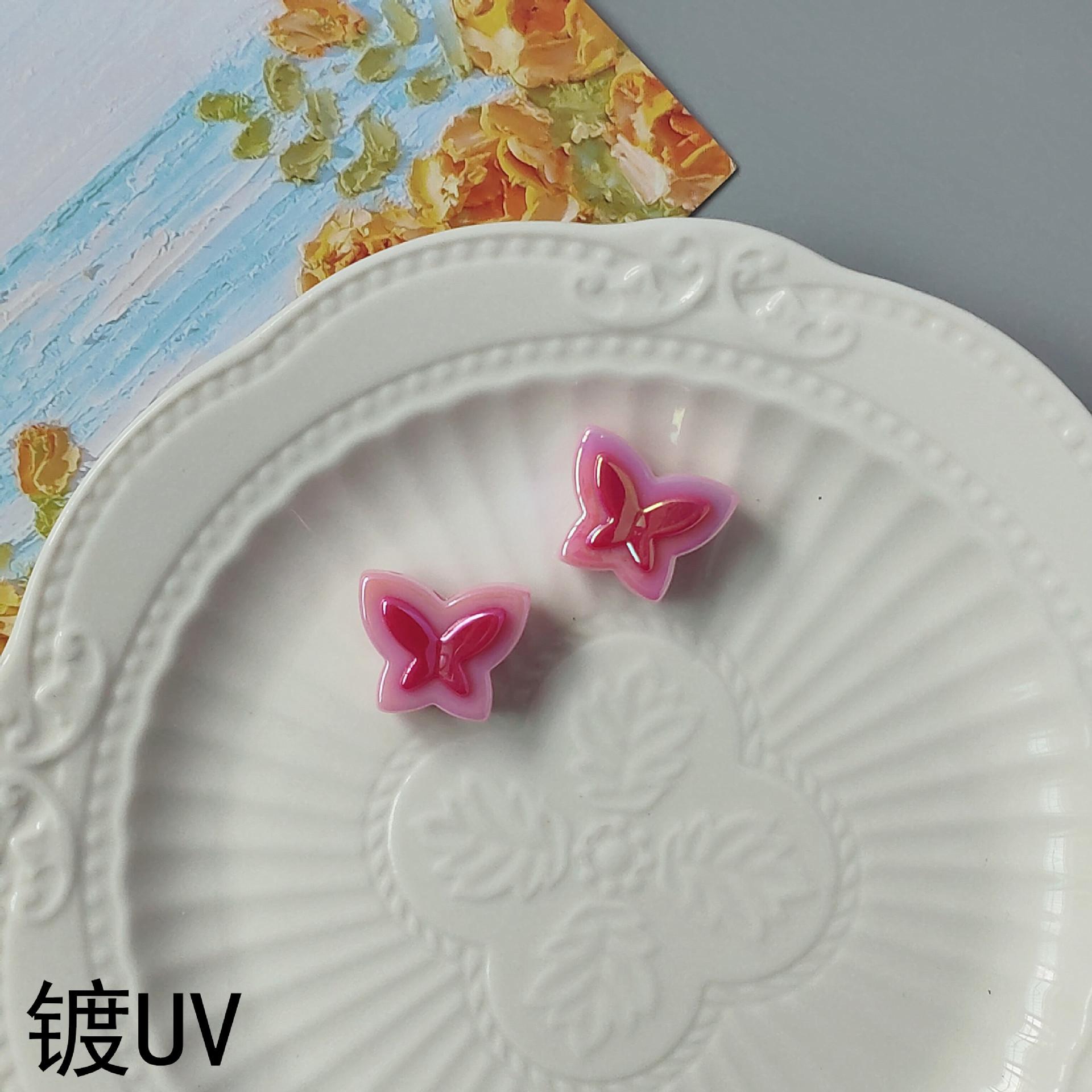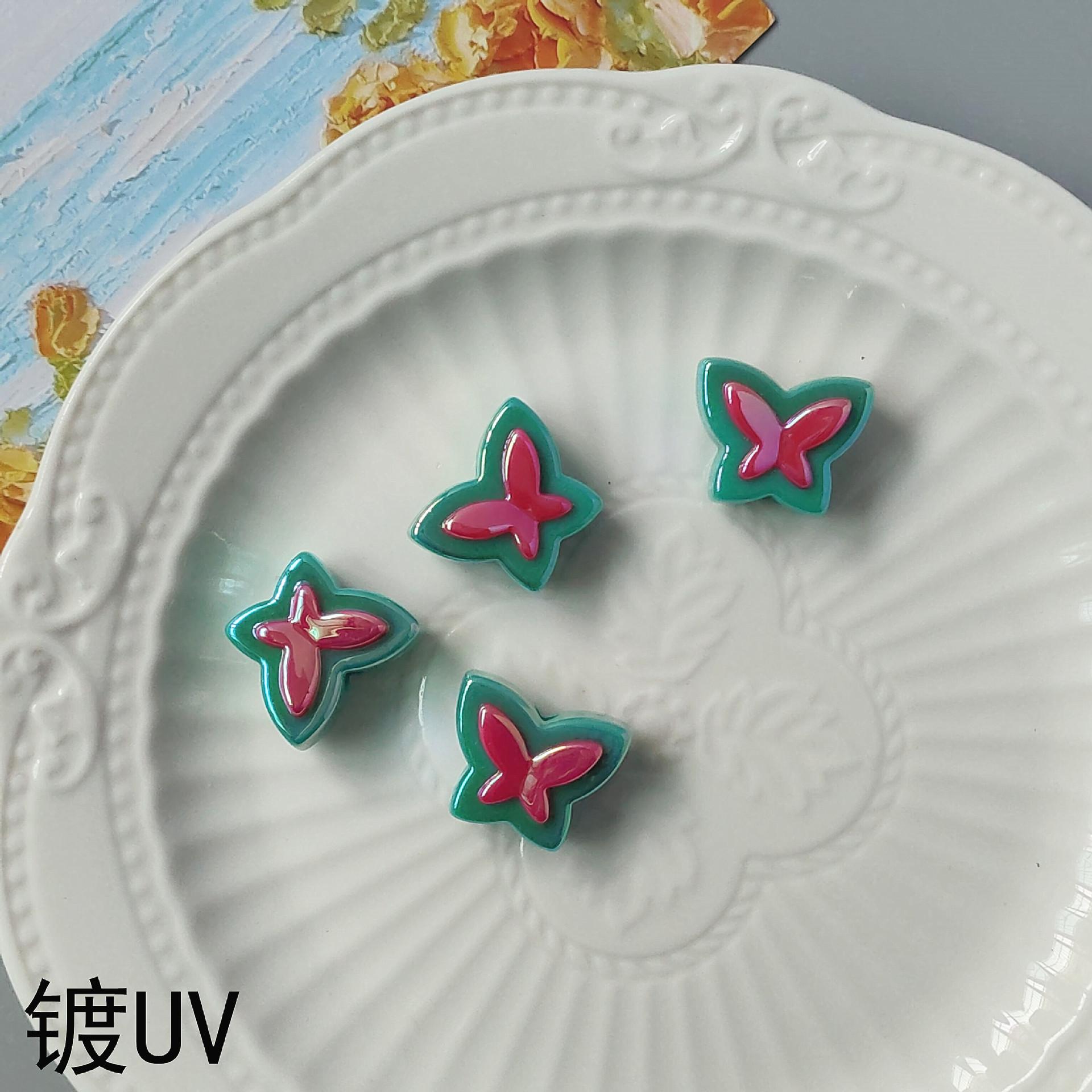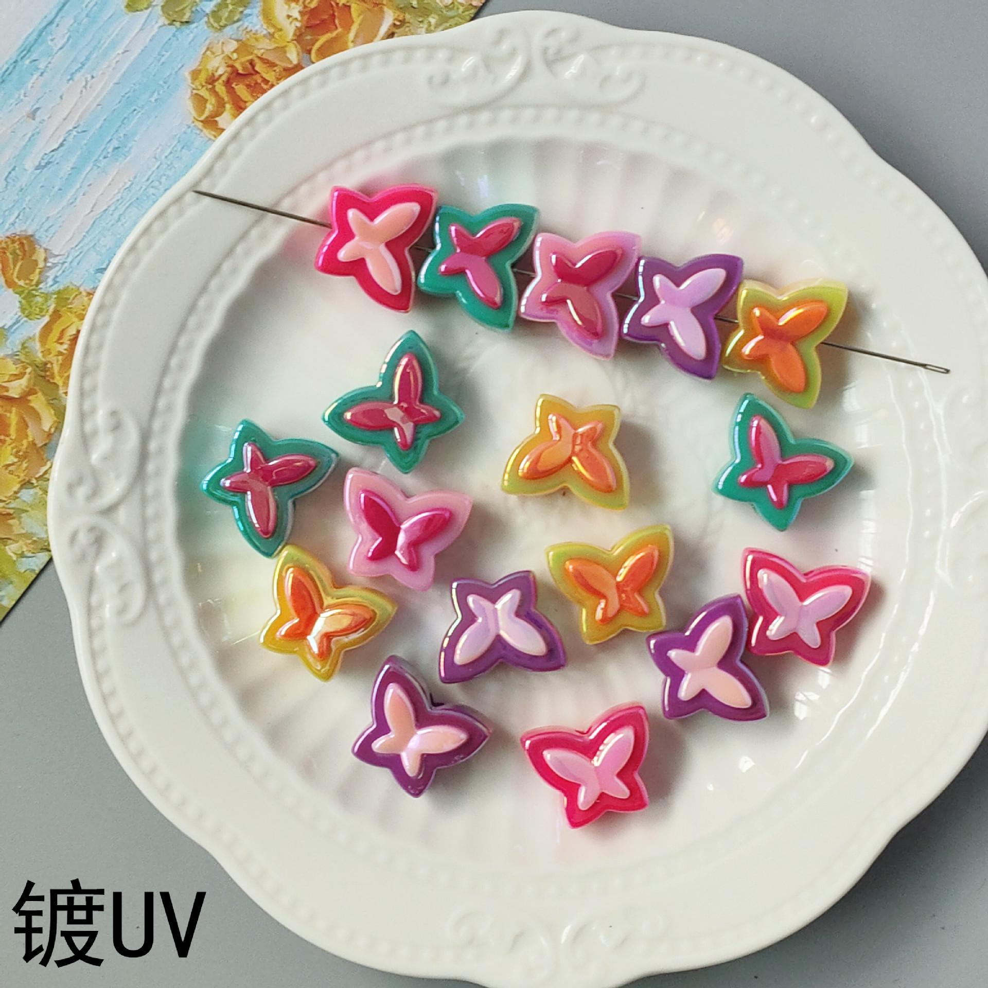 Nuevo collar DIY de mariposa de acrílico bicolor de 20 mm con agujero recto chapado en UV, cadena para teléfono móvil con cuentas sueltas, accesorios de joyería