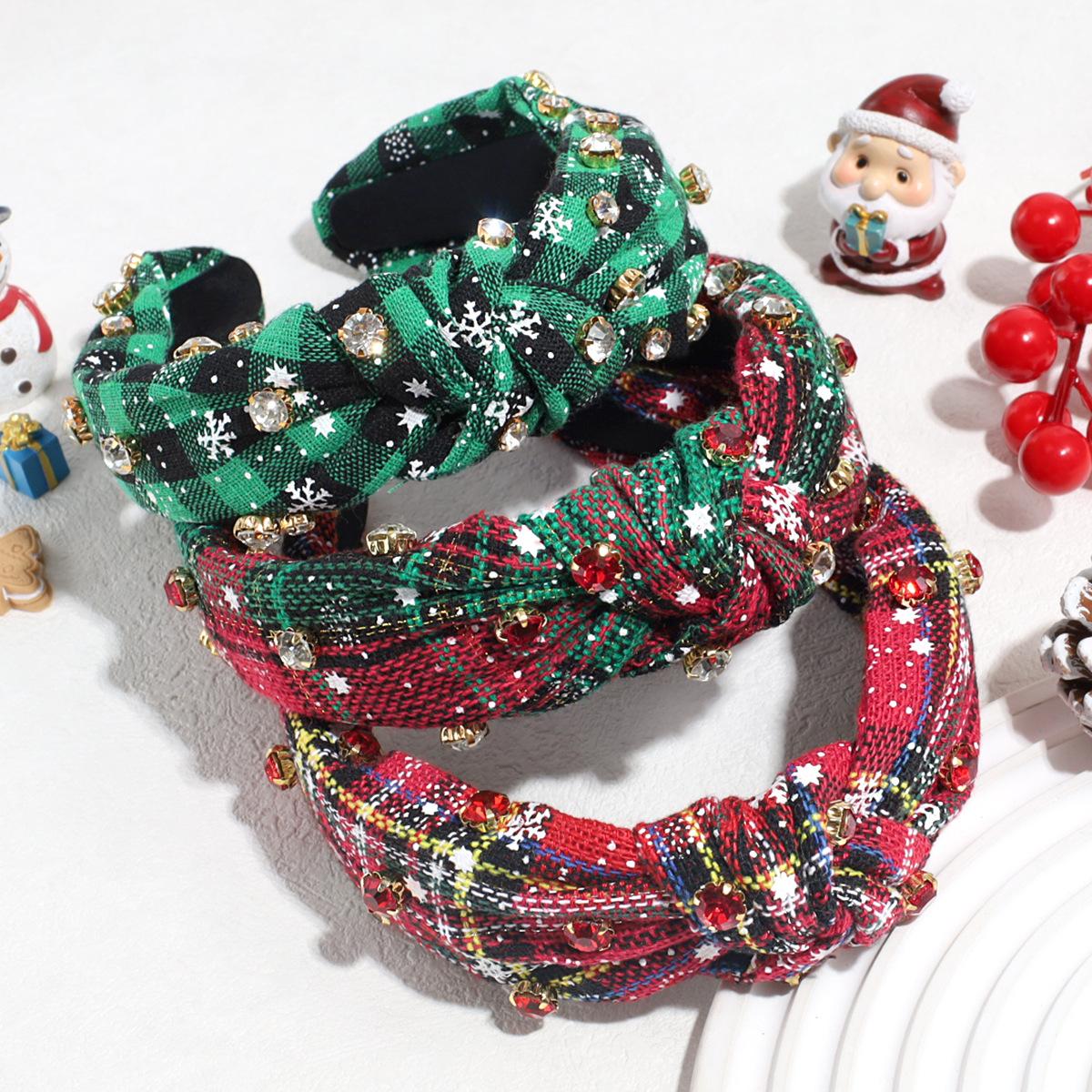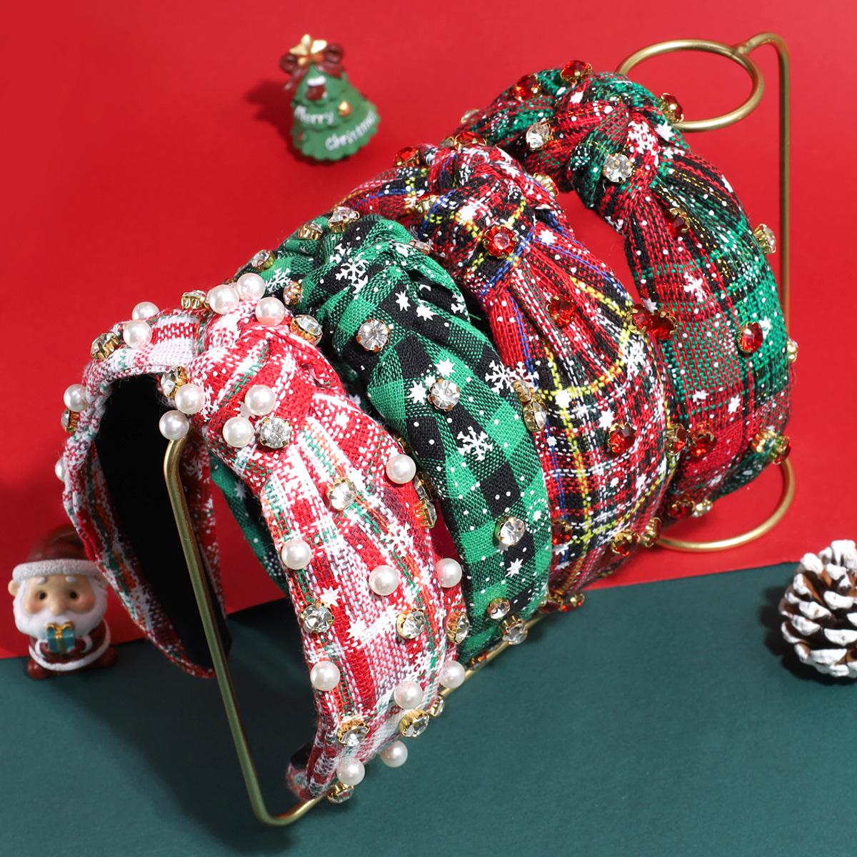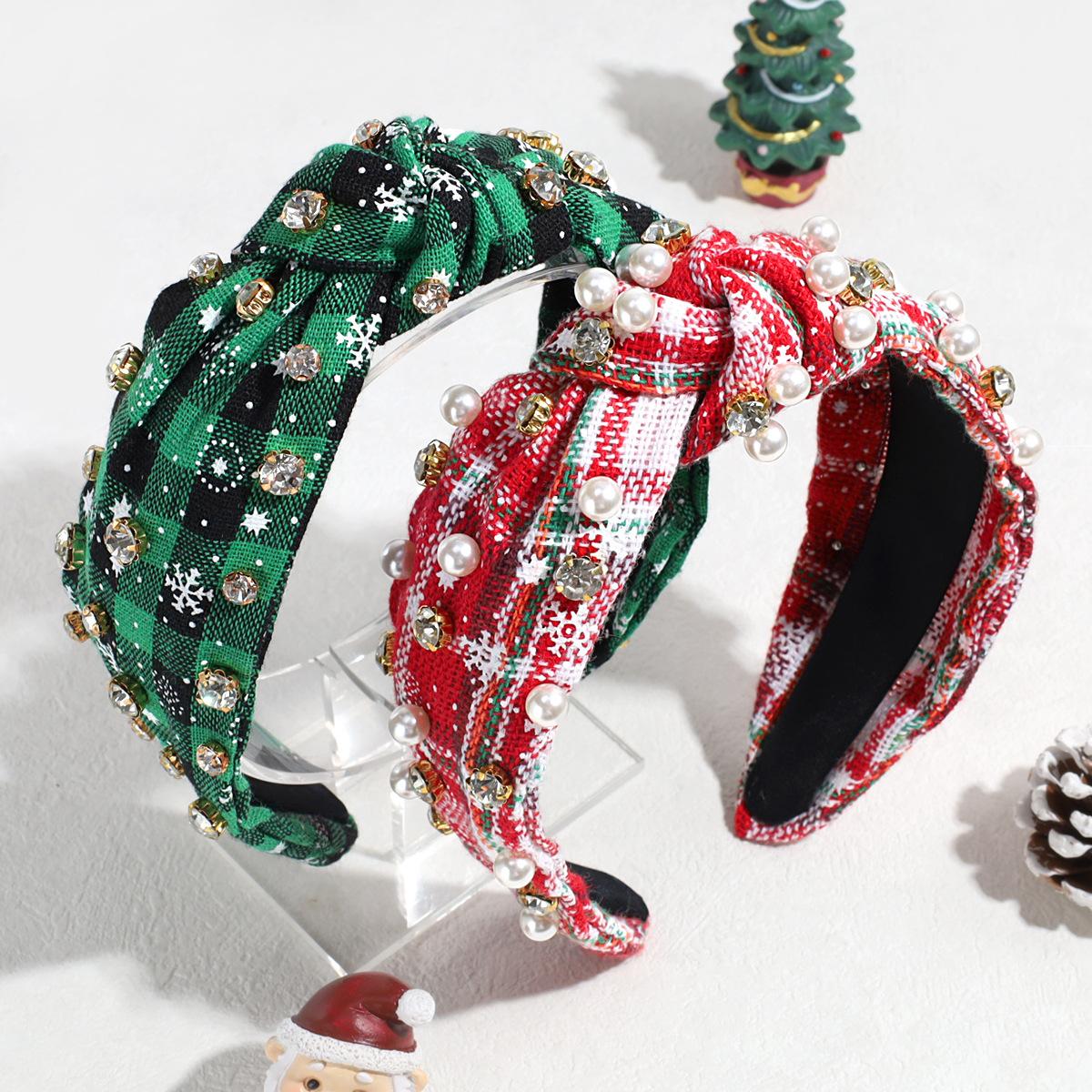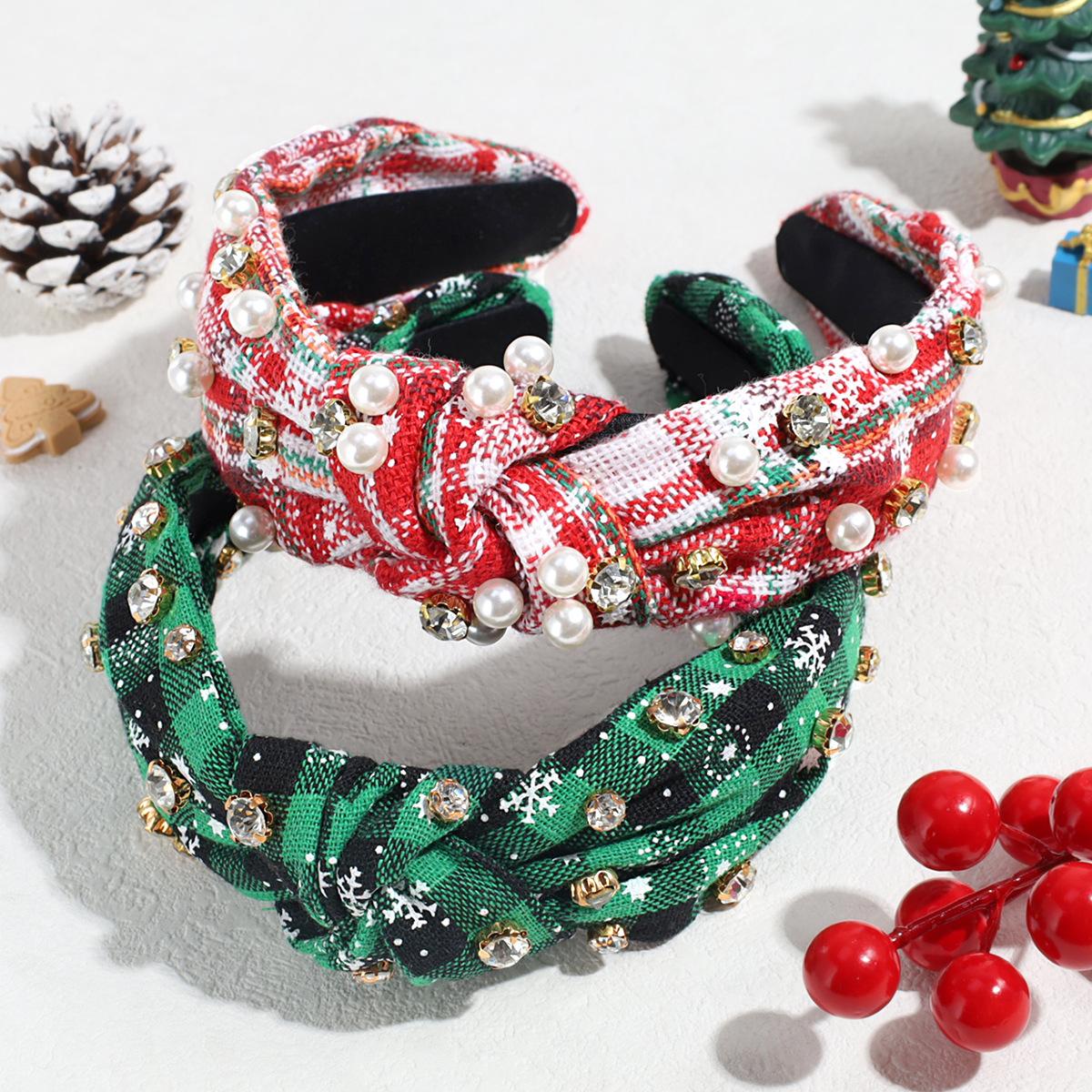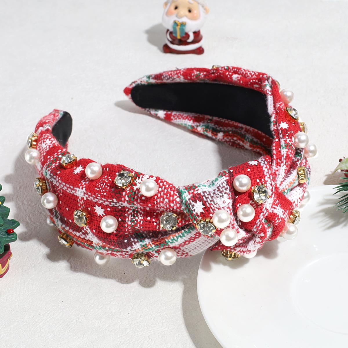Nuevo Venta Caliente Moda Vintage Navidad Pedrería Perla Imitación Par Nudo Diadema Todo Combinable Diadema Personalizada Accesorios para el Cabello