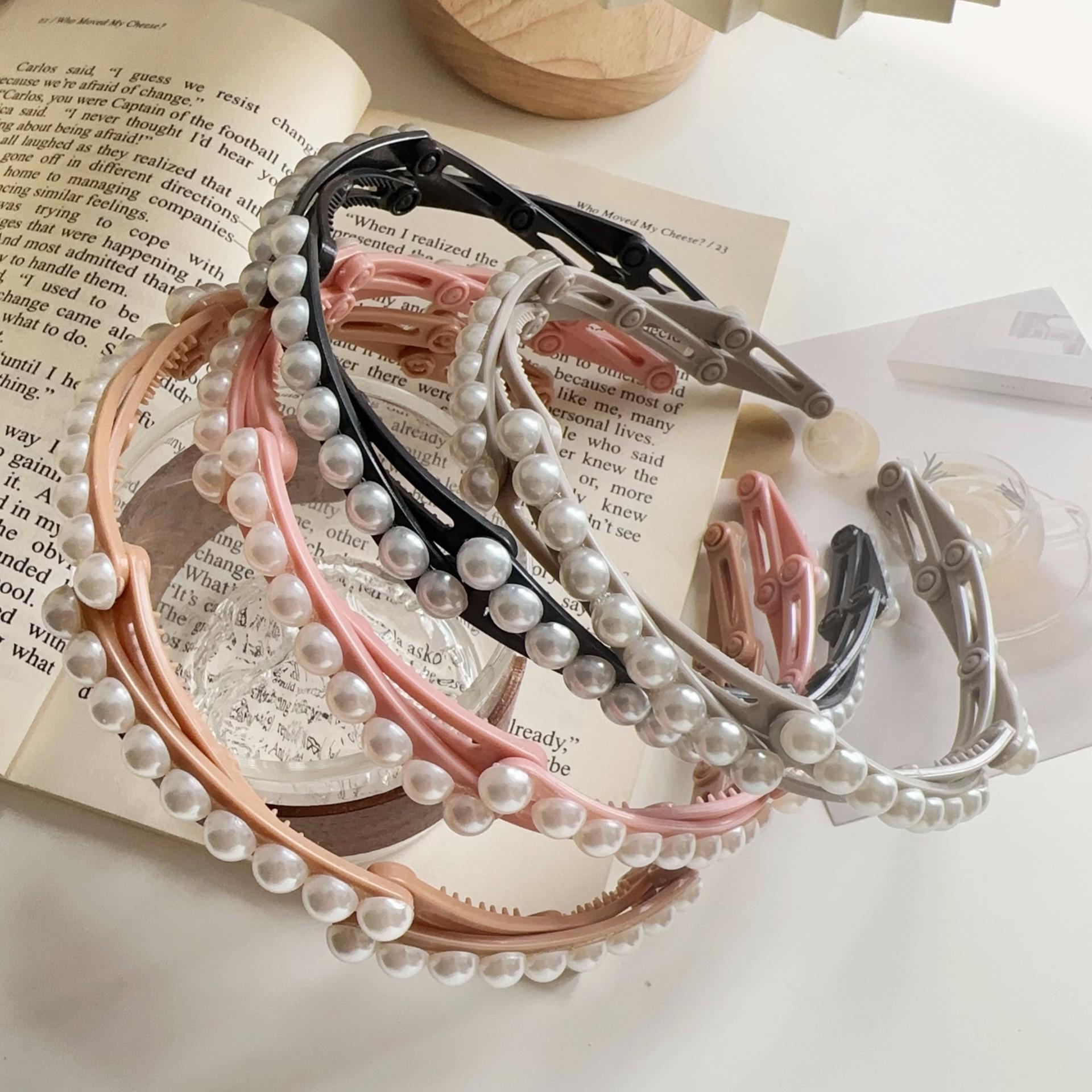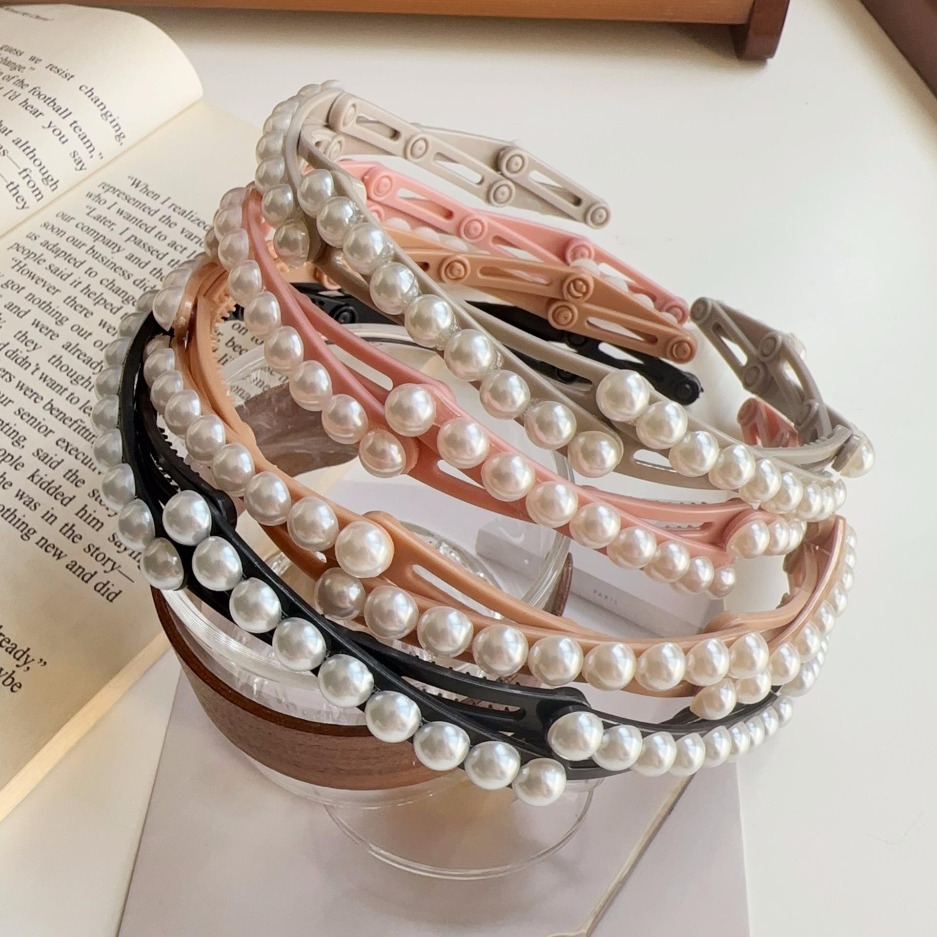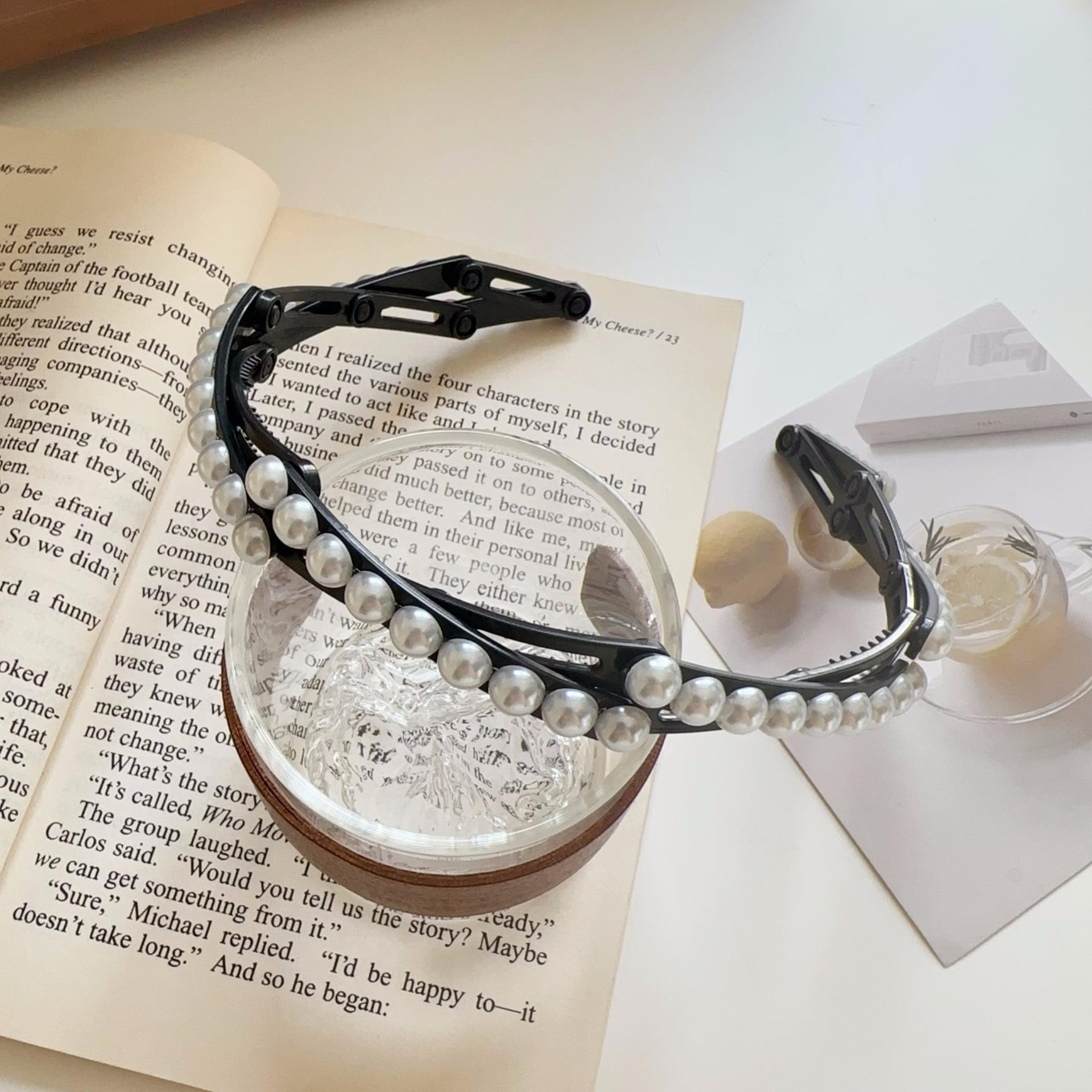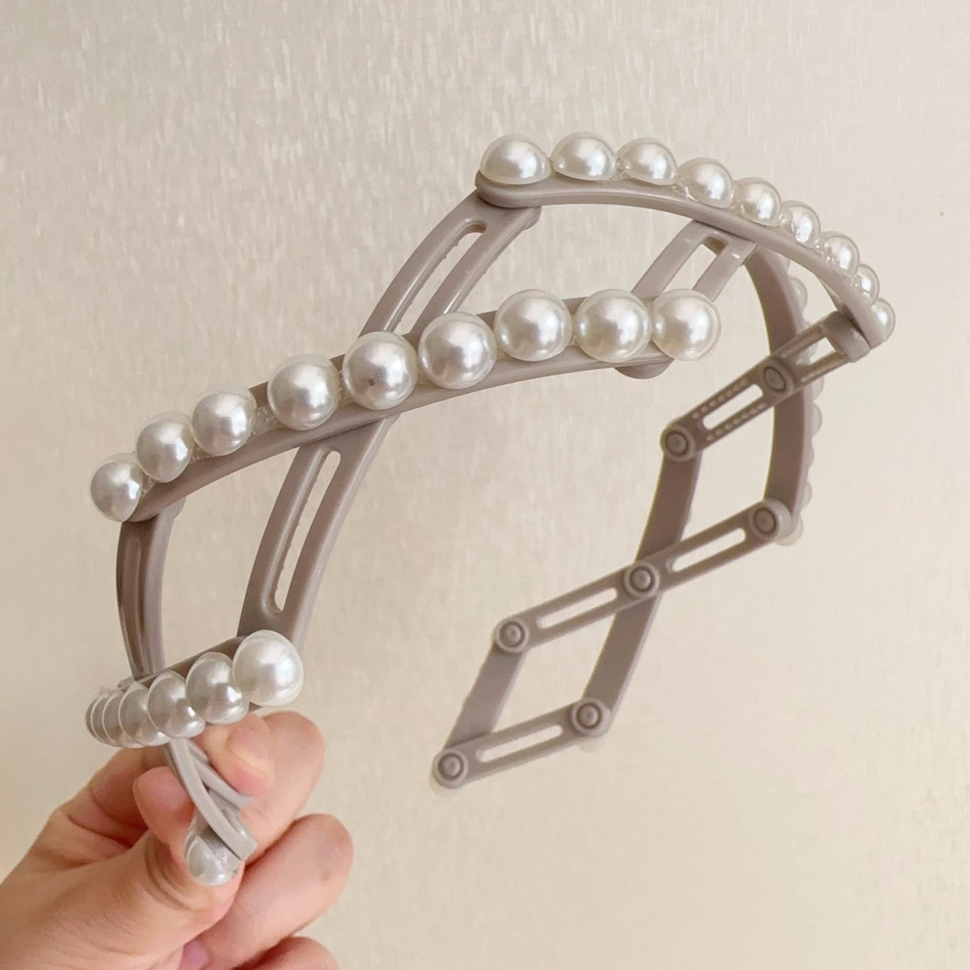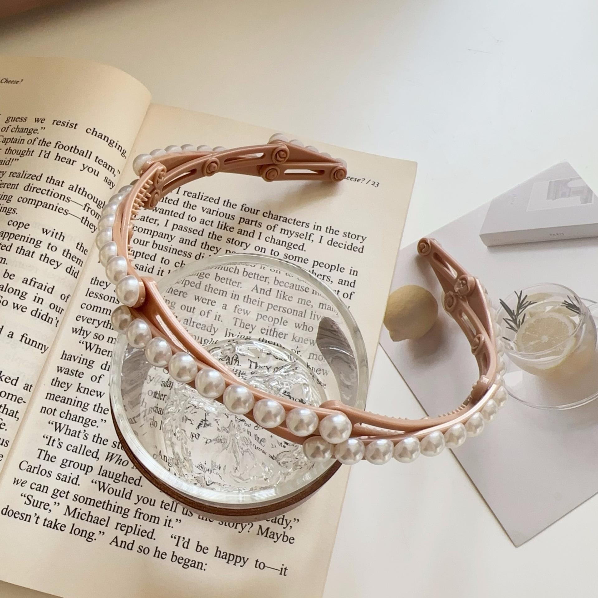 Diadema plegable retráctil para mujer, estilo perla, 2024, nueva tarjeta para el cabello, diadema portátil para viajes, para lavarse la cara.