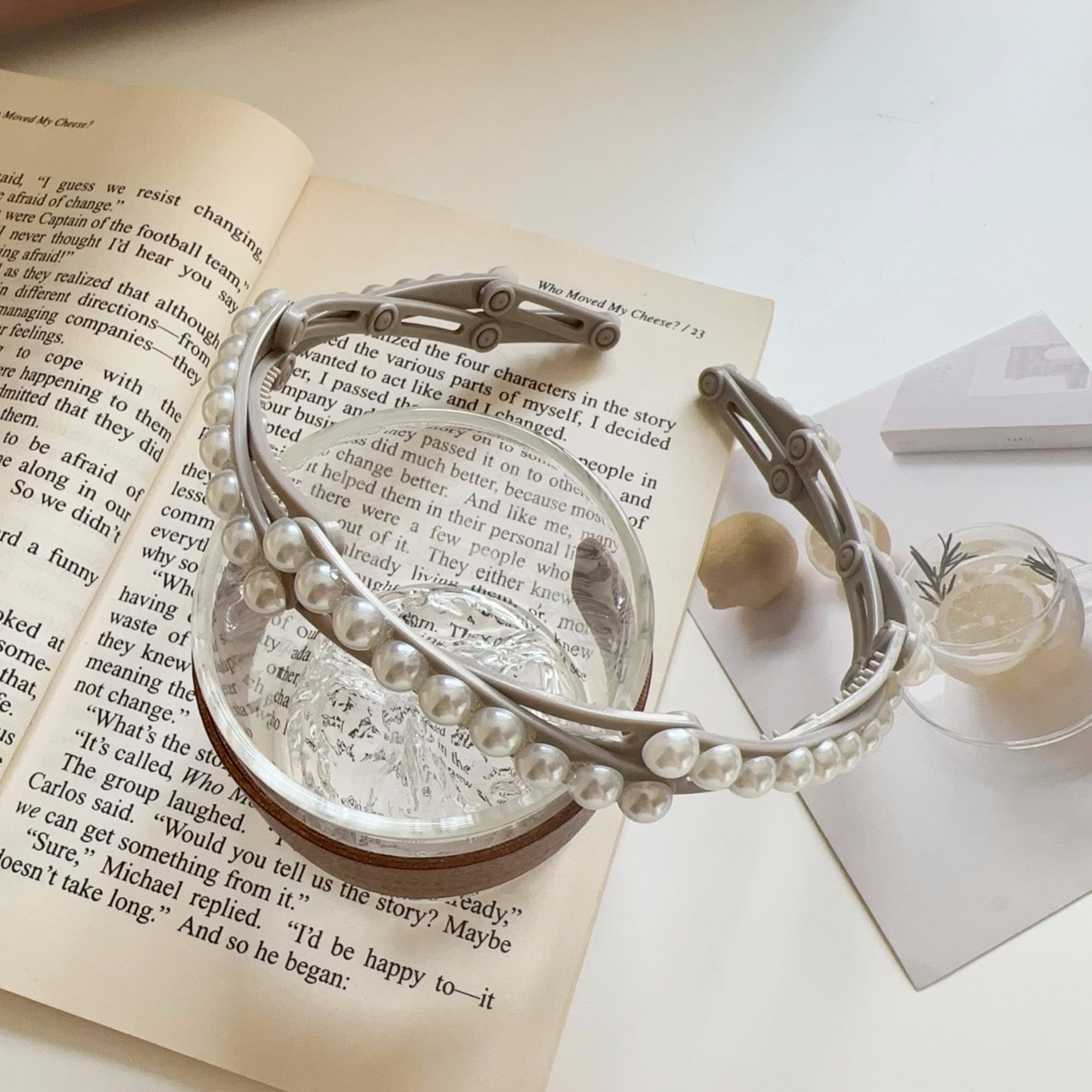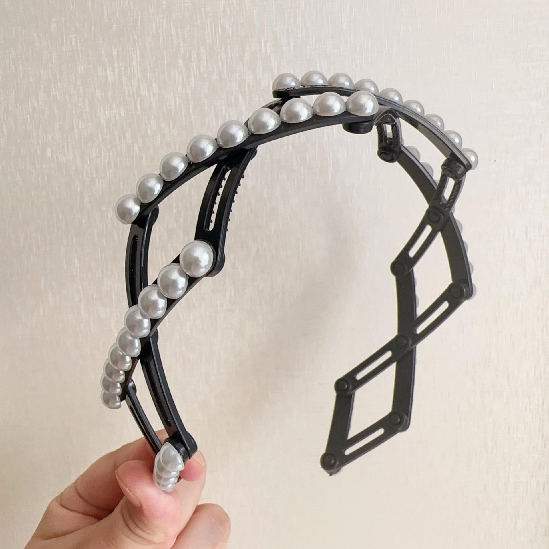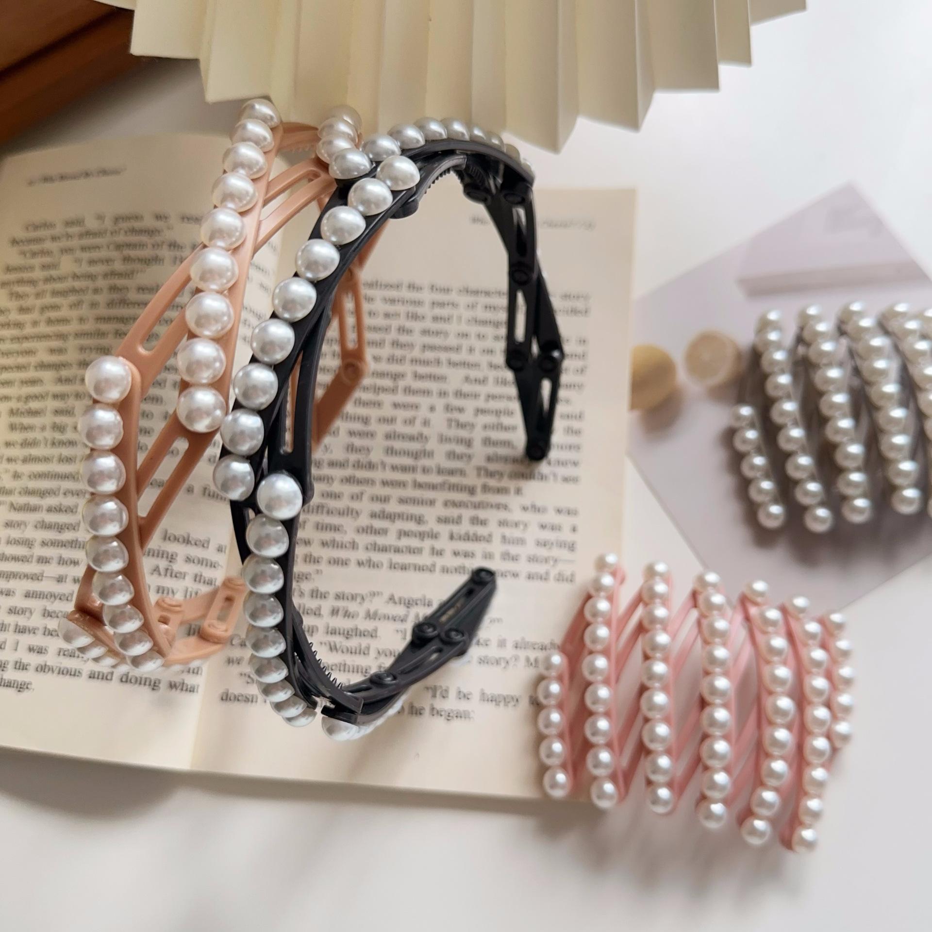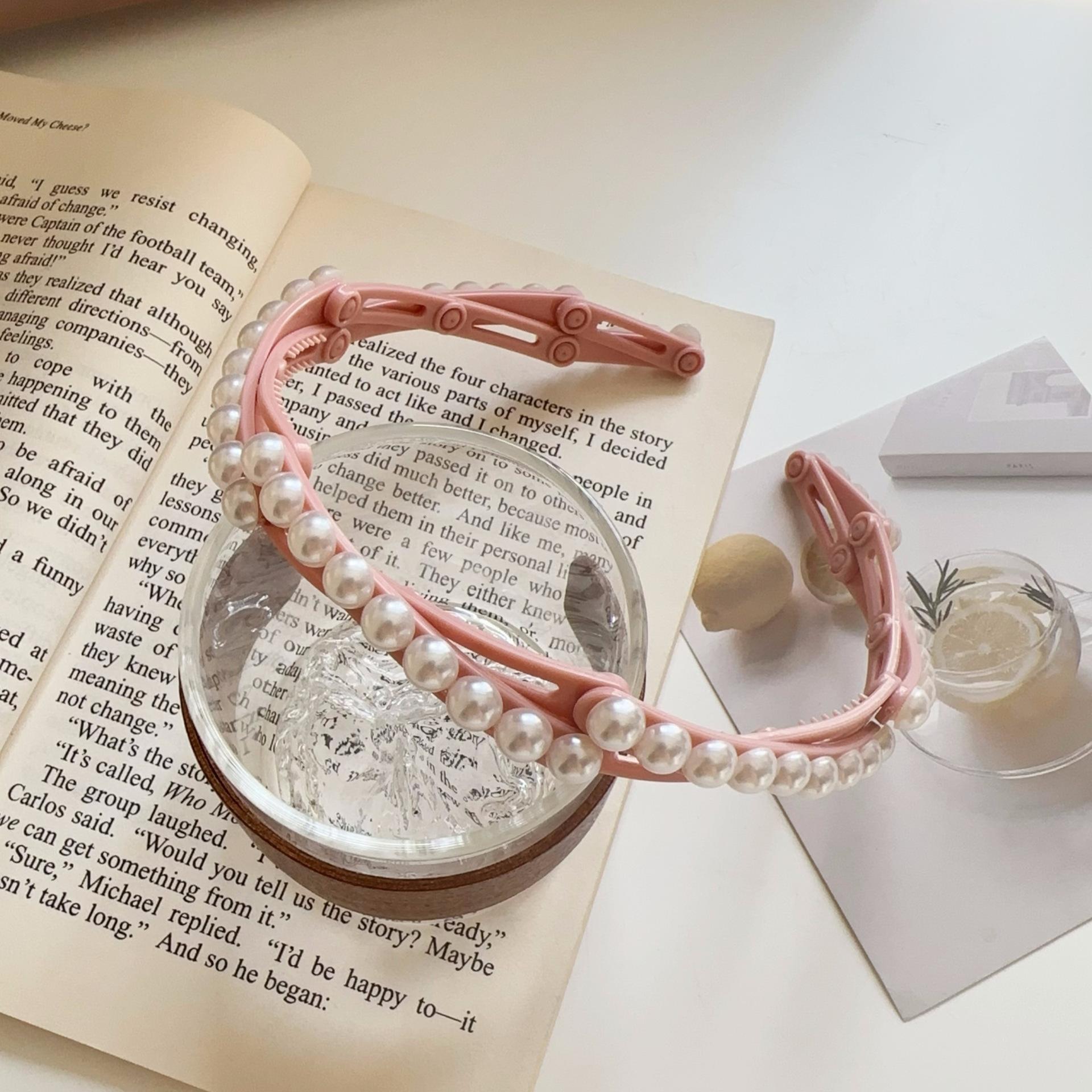 Diadema plegable retráctil para mujer, estilo perla, 2024, nueva tarjeta para el cabello, diadema portátil para viajes, para lavarse la cara.