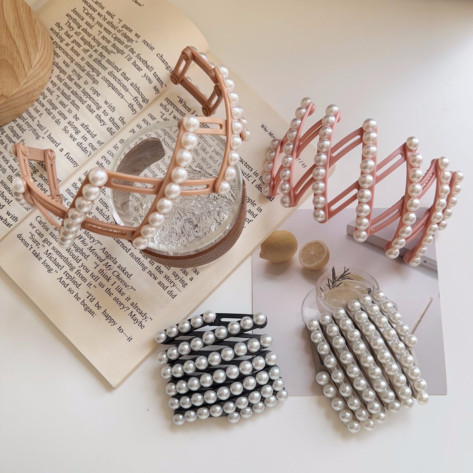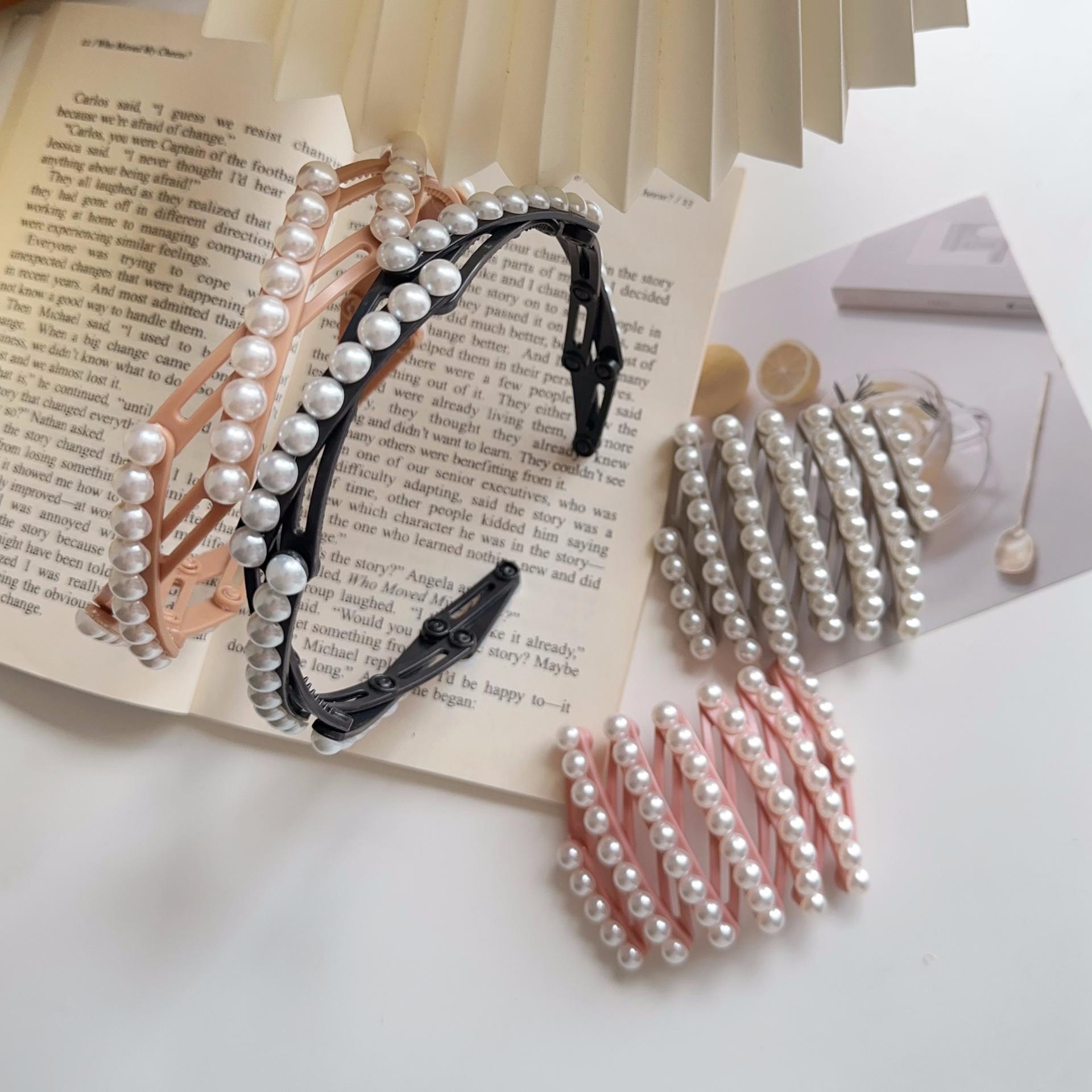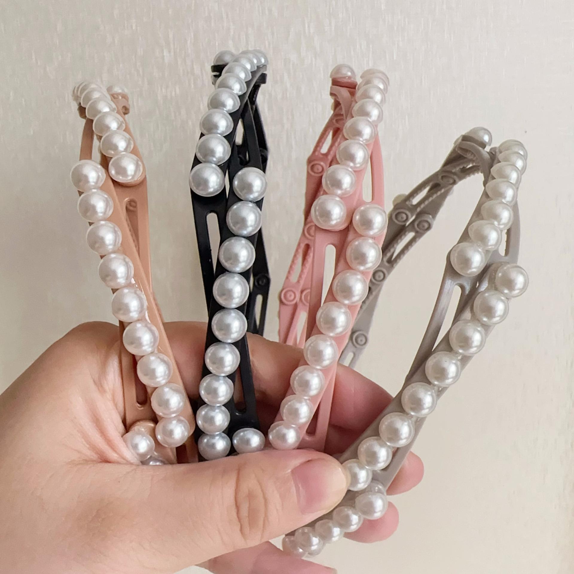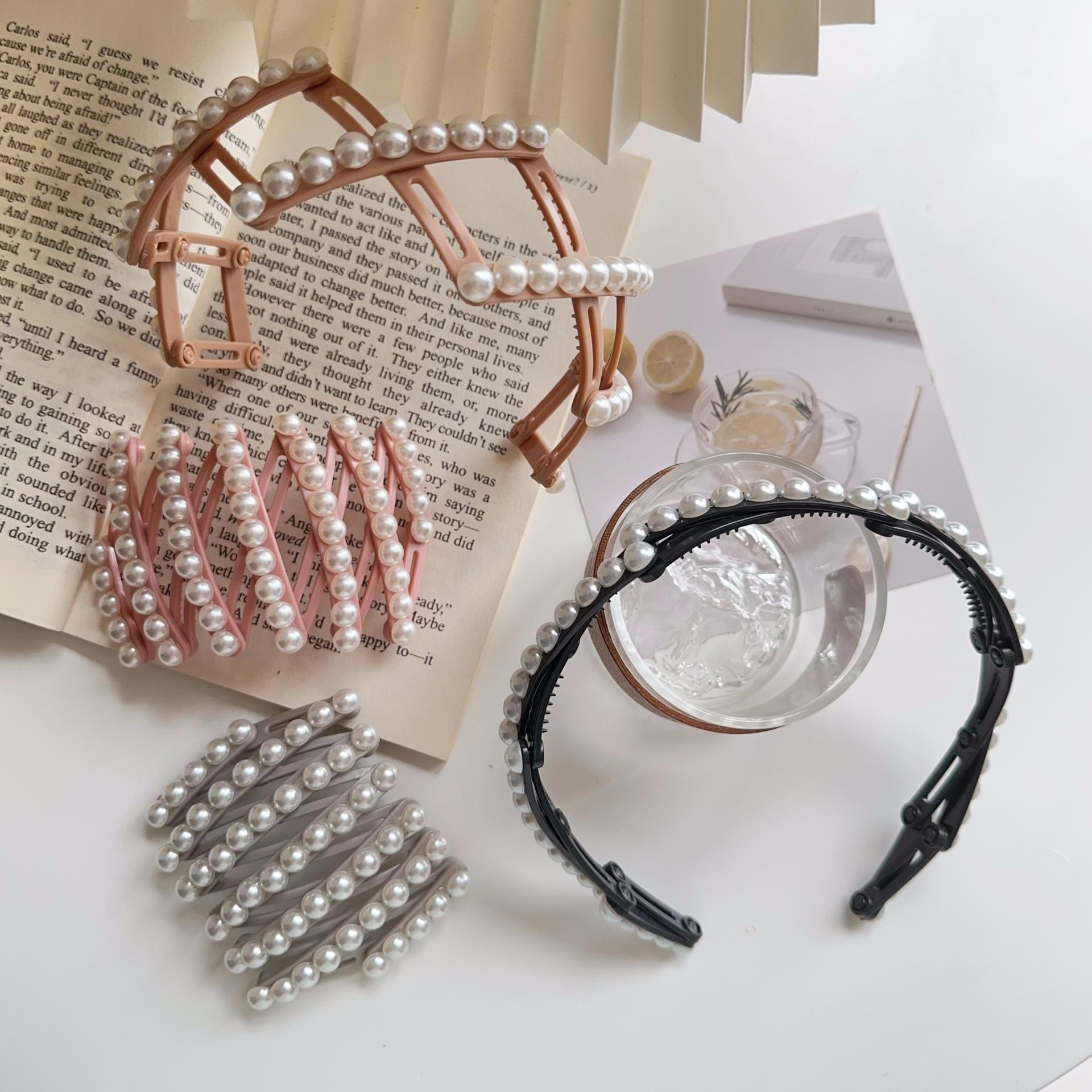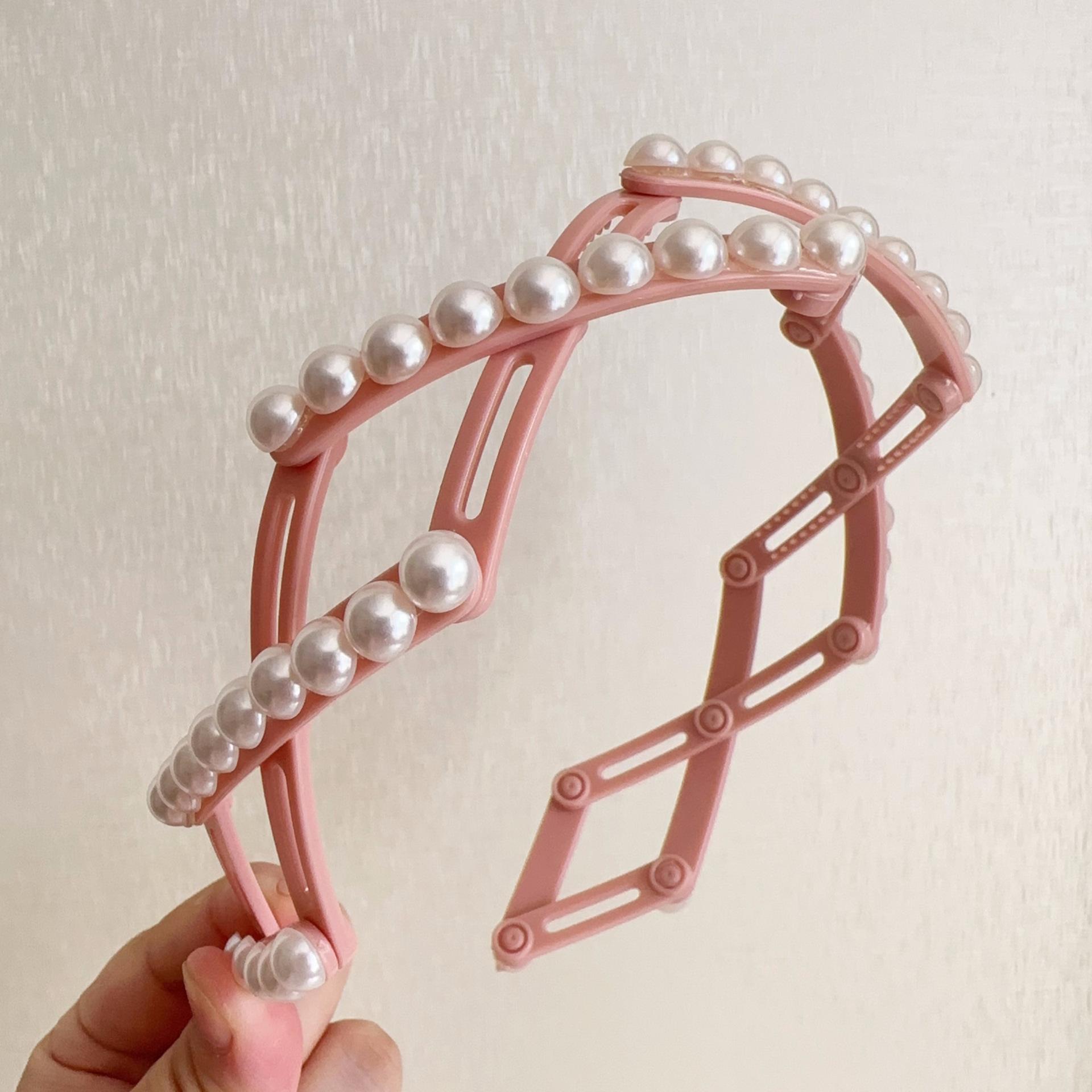 Diadema plegable retráctil para mujer, estilo perla, 2024, nueva tarjeta para el cabello, diadema portátil para viajes, para lavarse la cara.