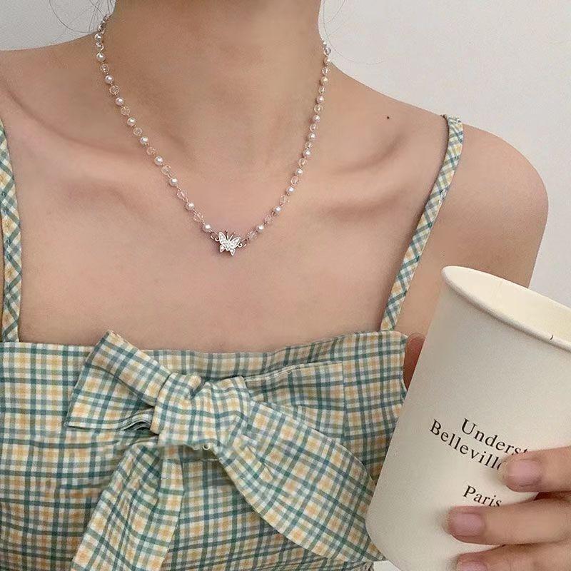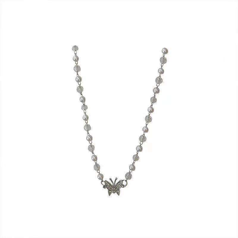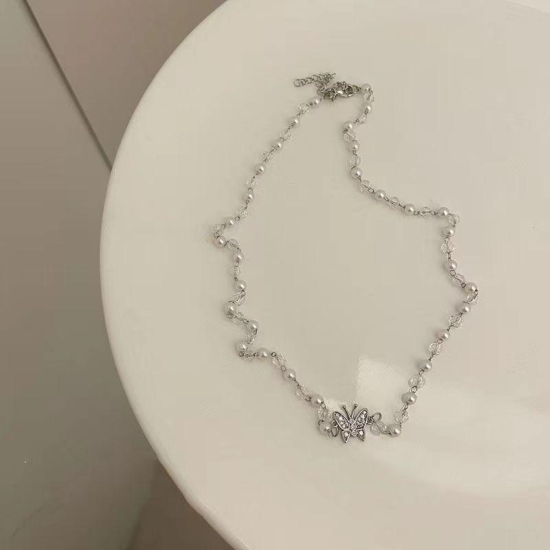 Collar de perlas de cristal con forma de mariposa para mujer, estilo lujoso, ligero, informal, diseño de nicho, gargantilla de cadena de clavícula de alta gama.