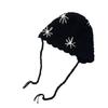 Gorro de lana tejido a mano con borlas y flores para mujer, cálido, combinable con todo, para otoño e invierno, que deja ver la cara.