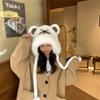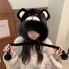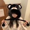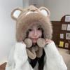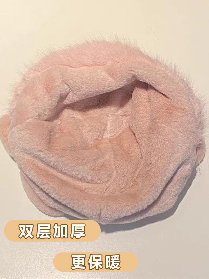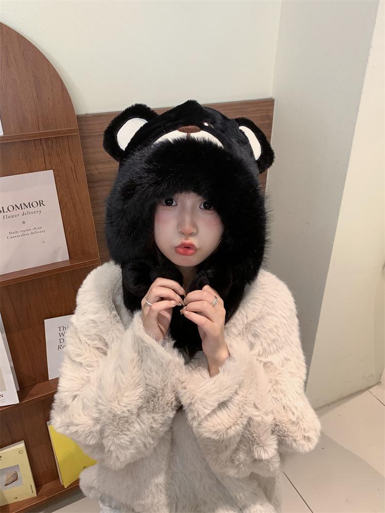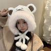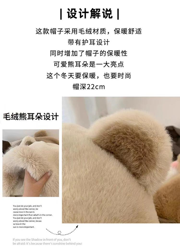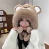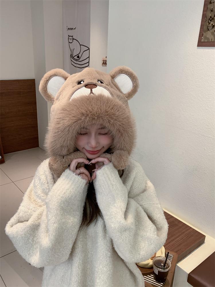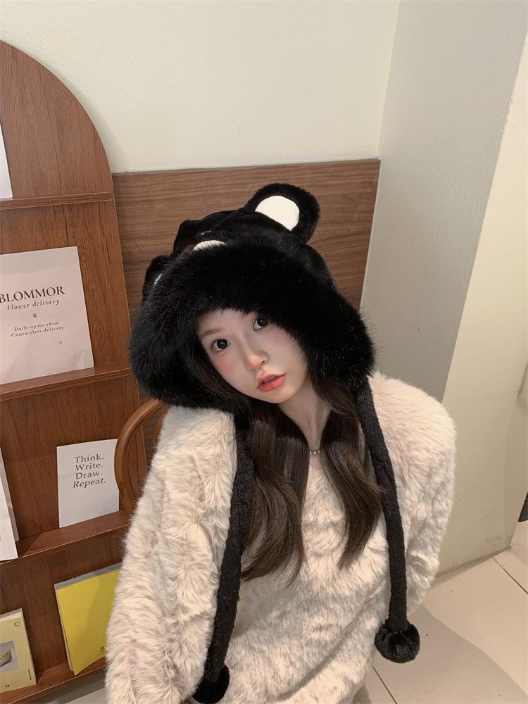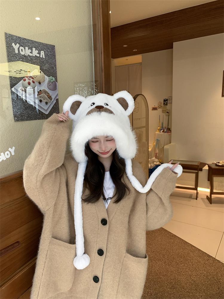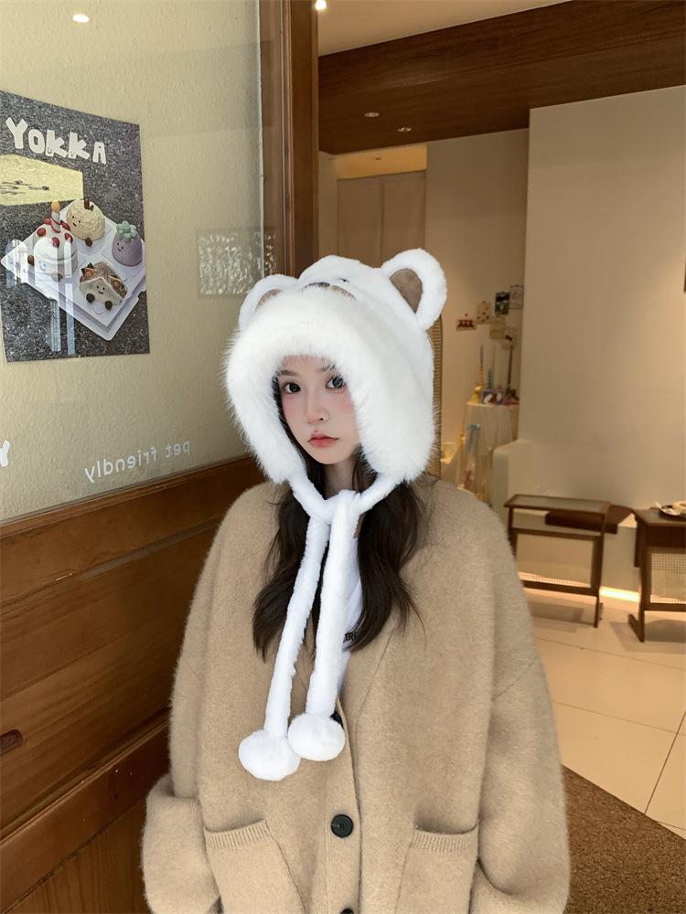 2024 Nuevo estilo coreano lindo gorro Lei Feng para mujer, otoño e invierno, gorro esponjoso con orejas de oso, gorro grueso para montar a caballo, resistente al frío y con protección para las orejas.