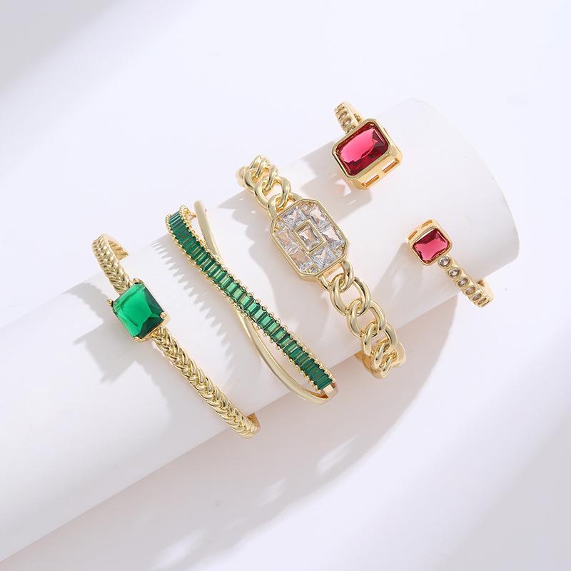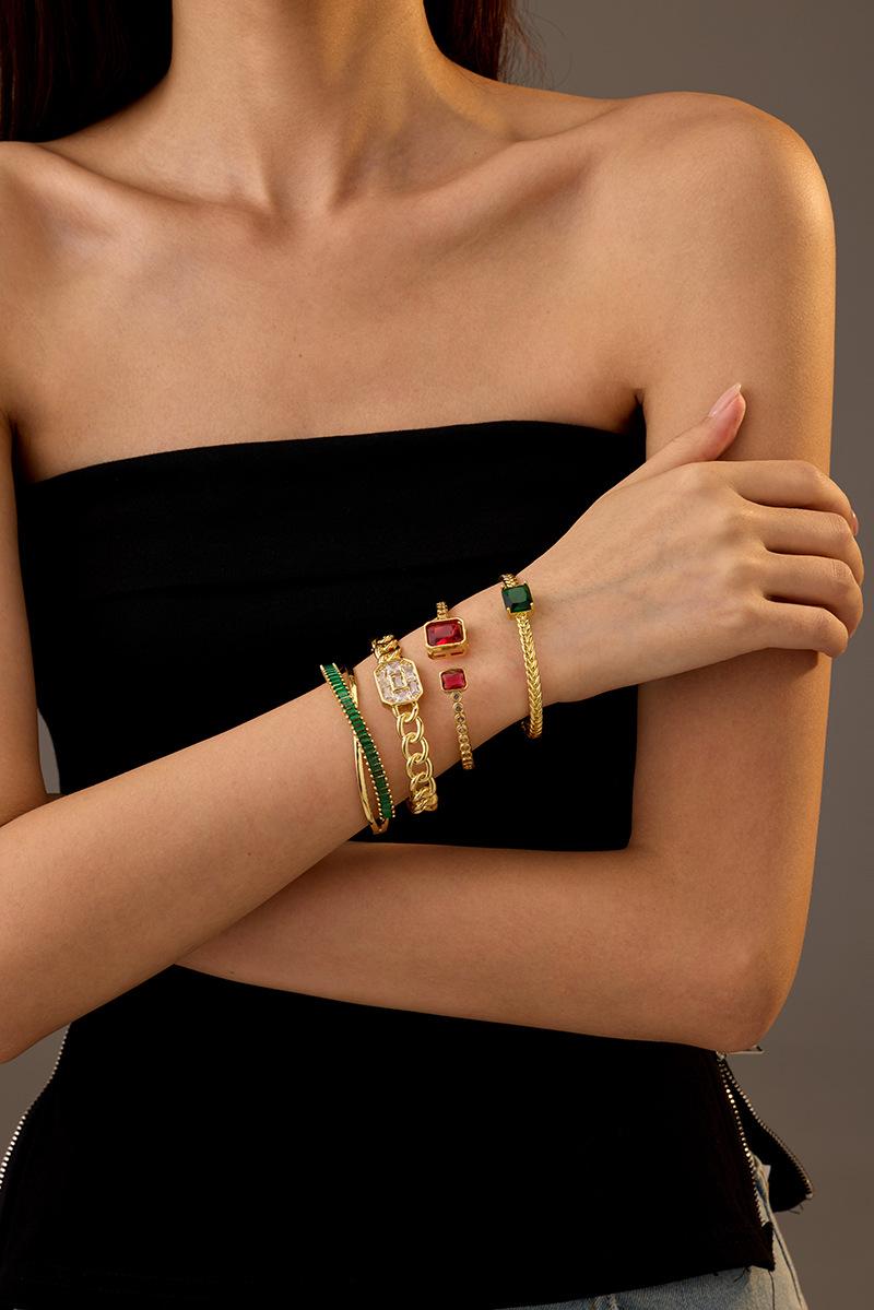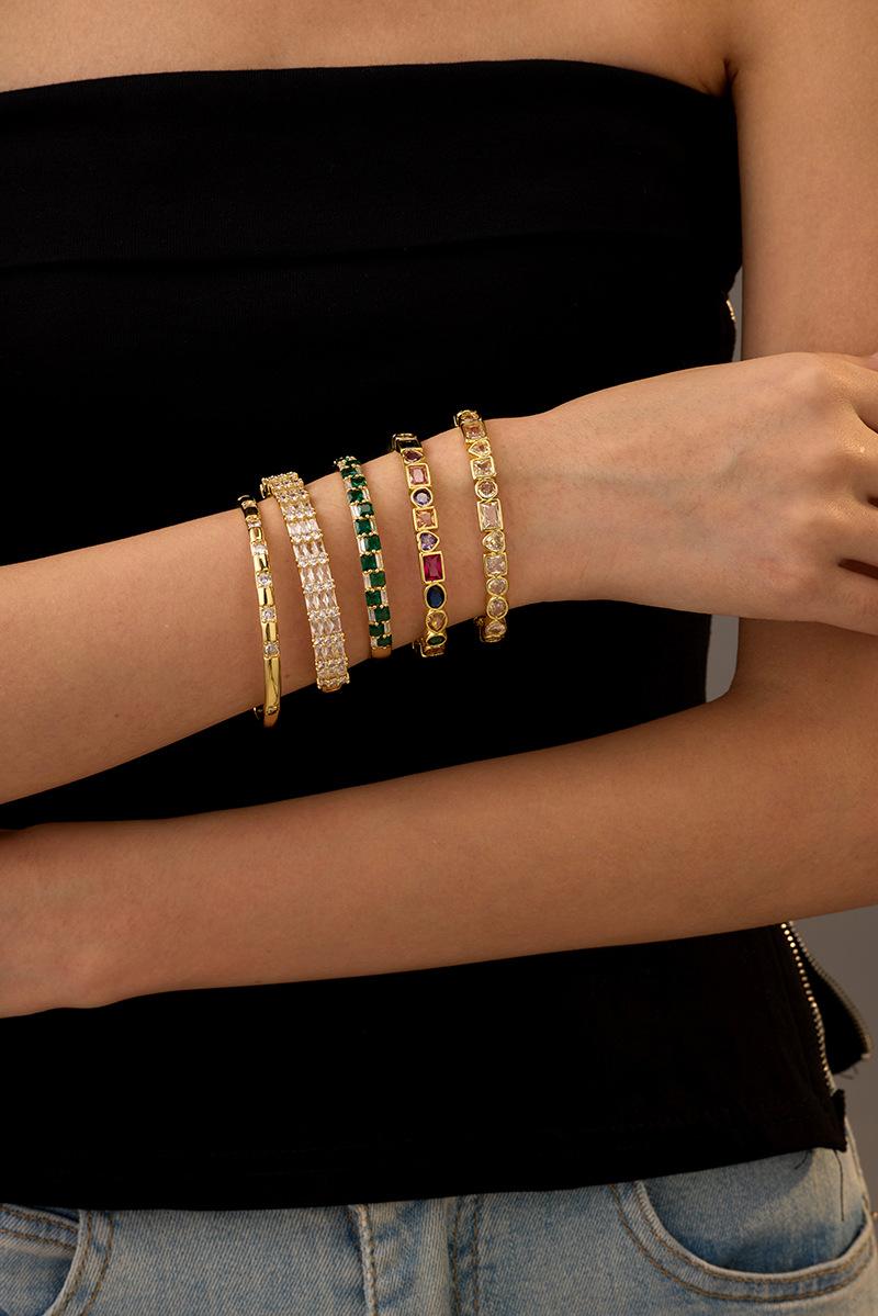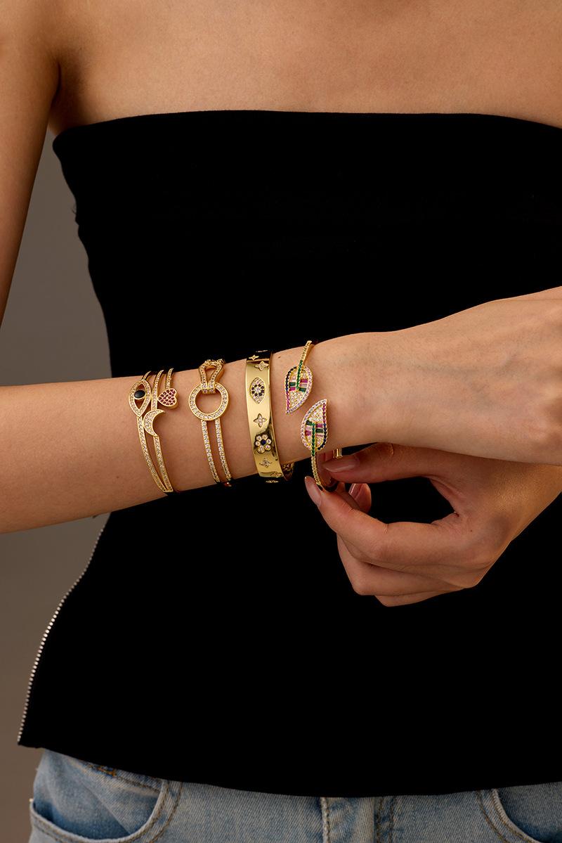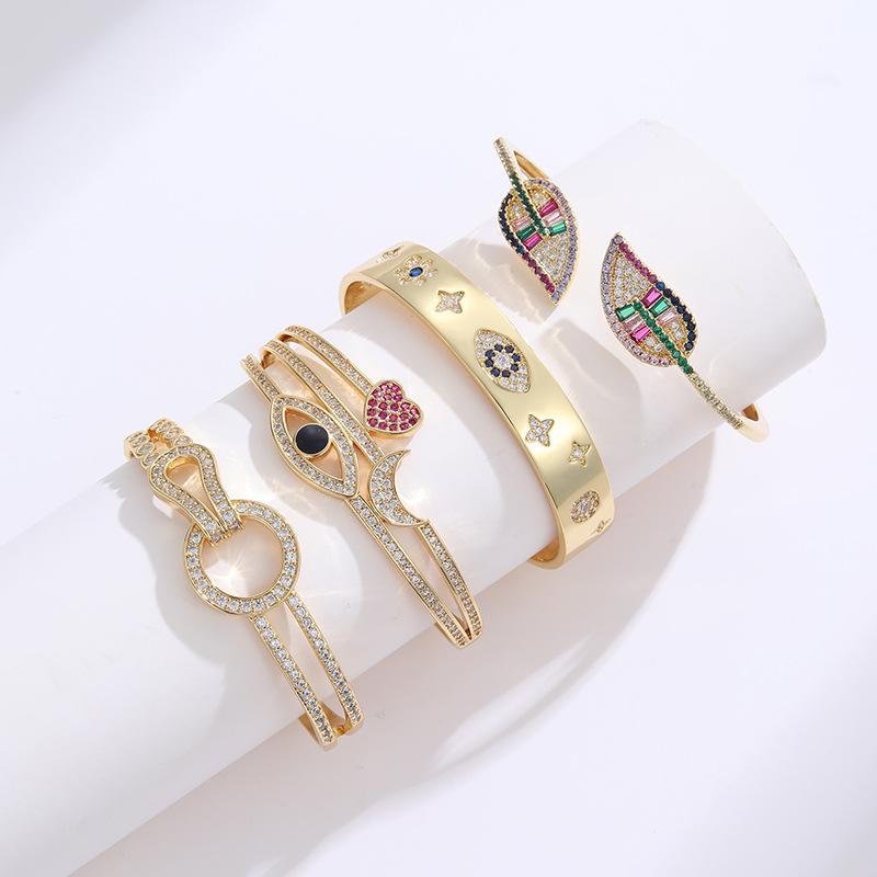Pulsera elegante de oro de 14 quilates con diamantes de colores de alta gama para mujer, estilo retro, transfronterizo europeo y americano, con apertura de gemas de amor.