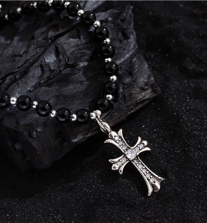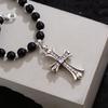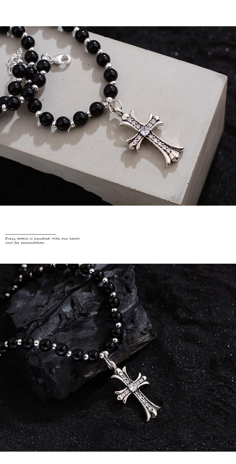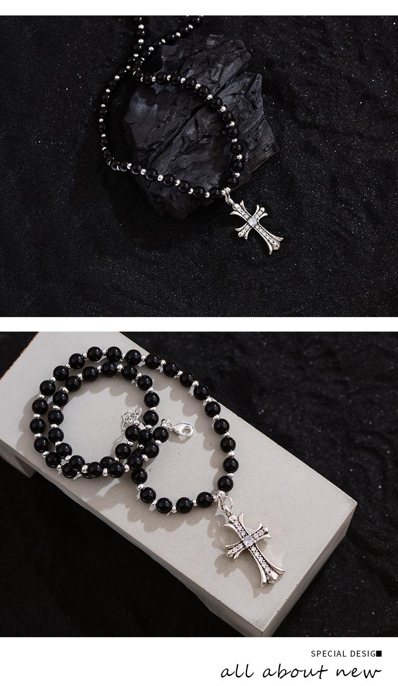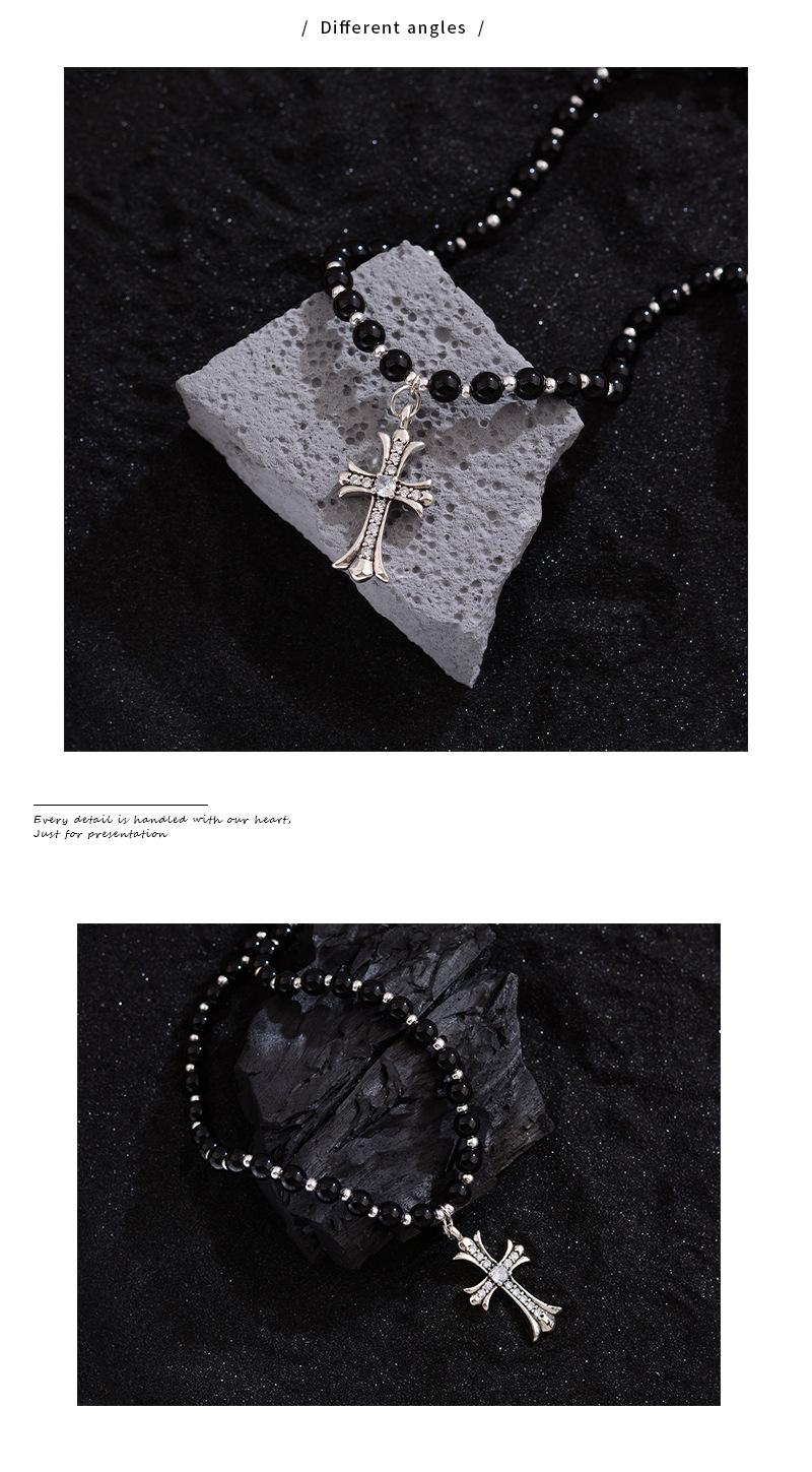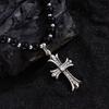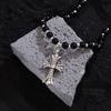 Collar con colgante de cruz de circonita negra de marca de moda Niche para mujer, estilo retro hip hop punk, cadena de lana, accesorios