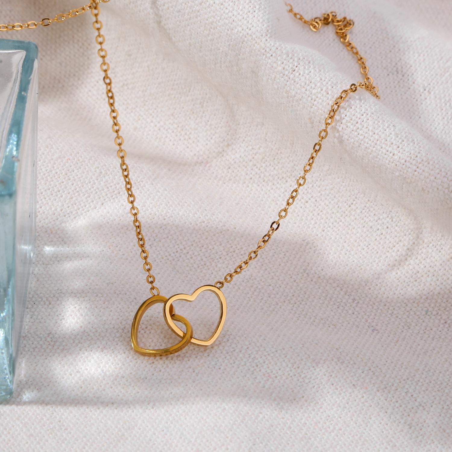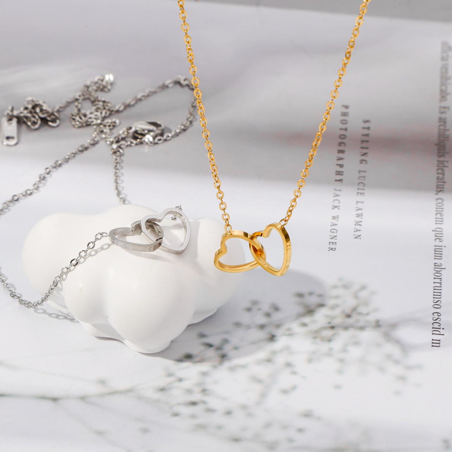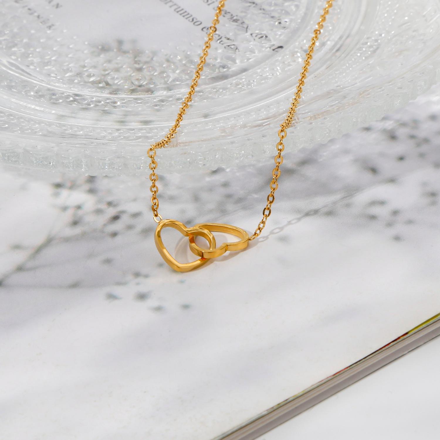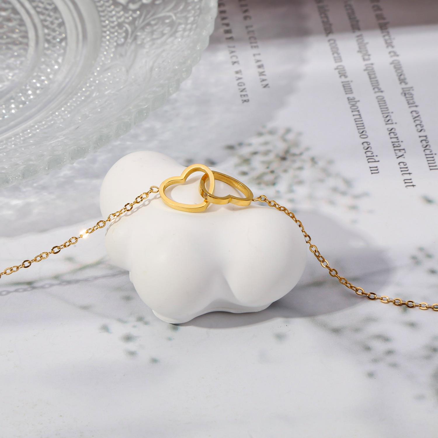 Collar con doble anillo de amor para mujer, estilo ins, de acero inoxidable, oro de 18 quilates, cadena de clavícula, colgante de corazón simple, cadena para el cuello