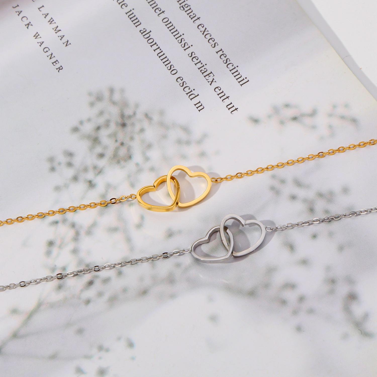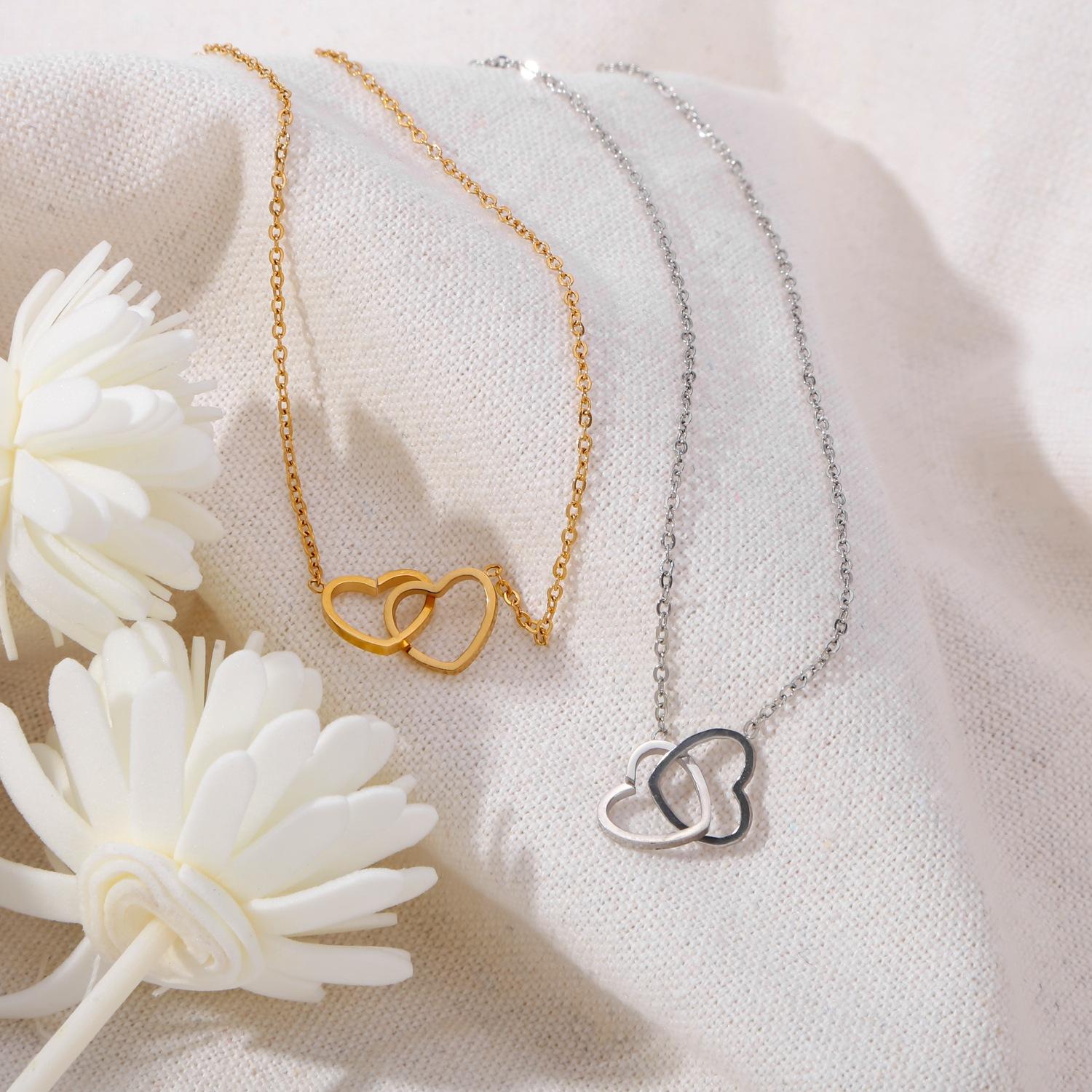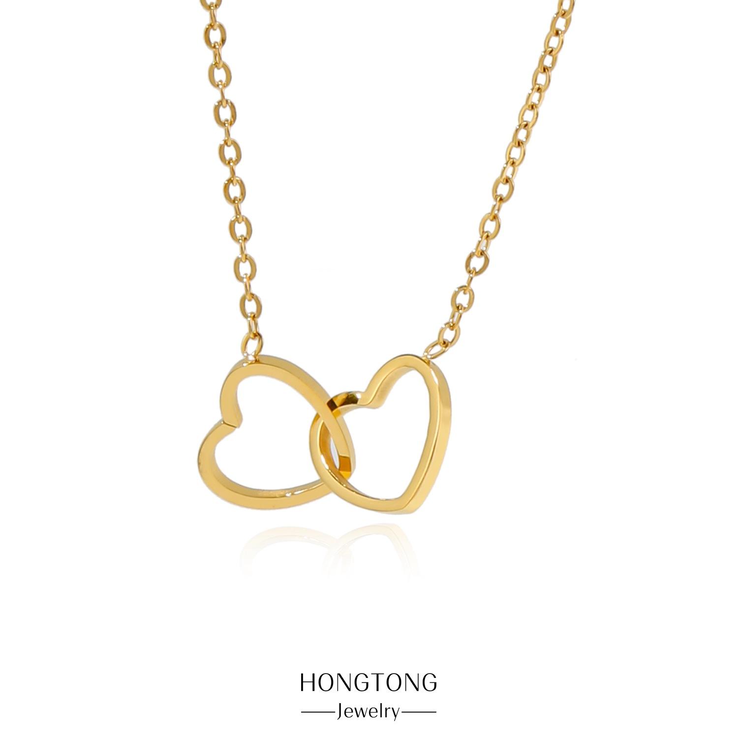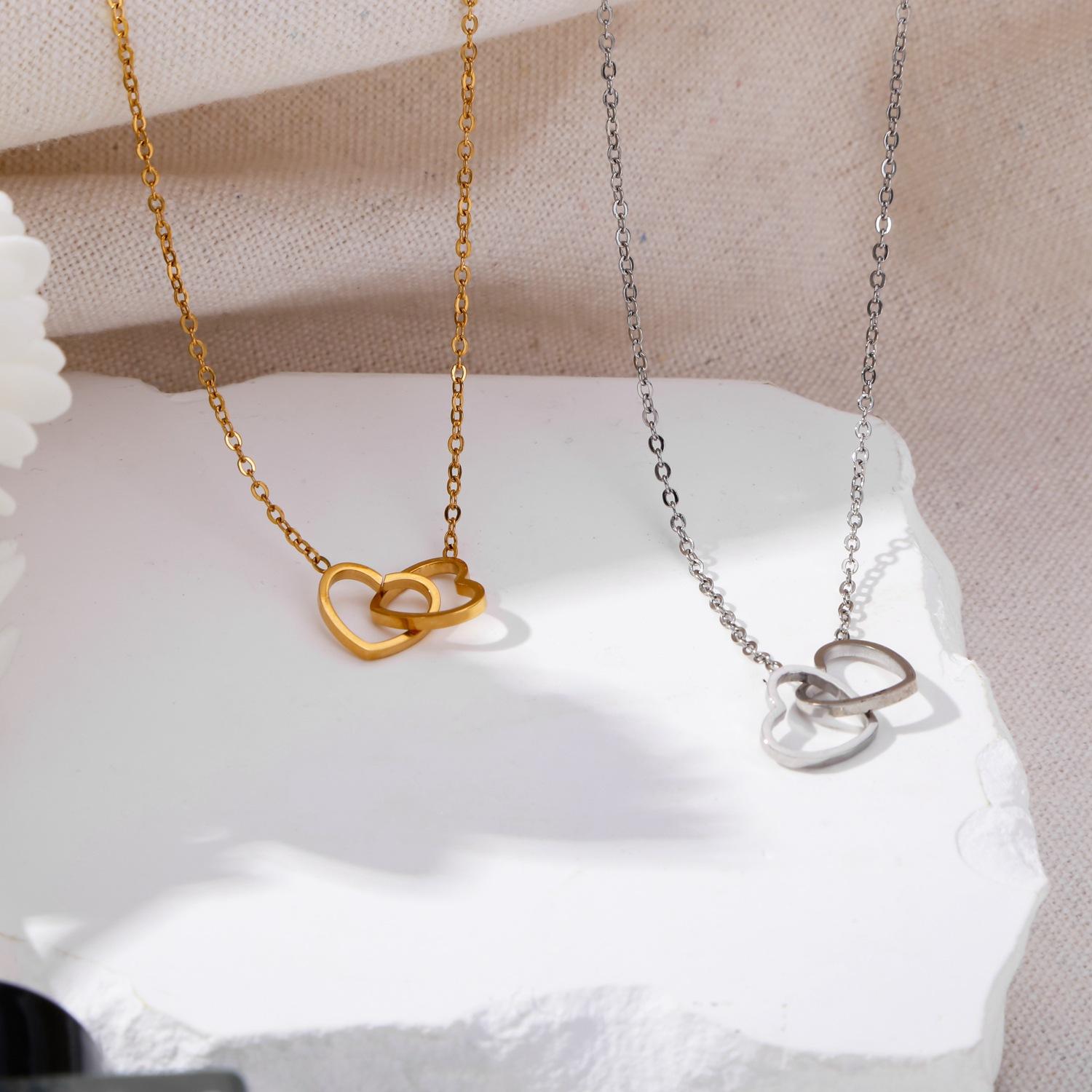 Collar con doble anillo de amor para mujer, estilo ins, de acero inoxidable, oro de 18 quilates, cadena de clavícula, colgante de corazón simple, cadena para el cuello