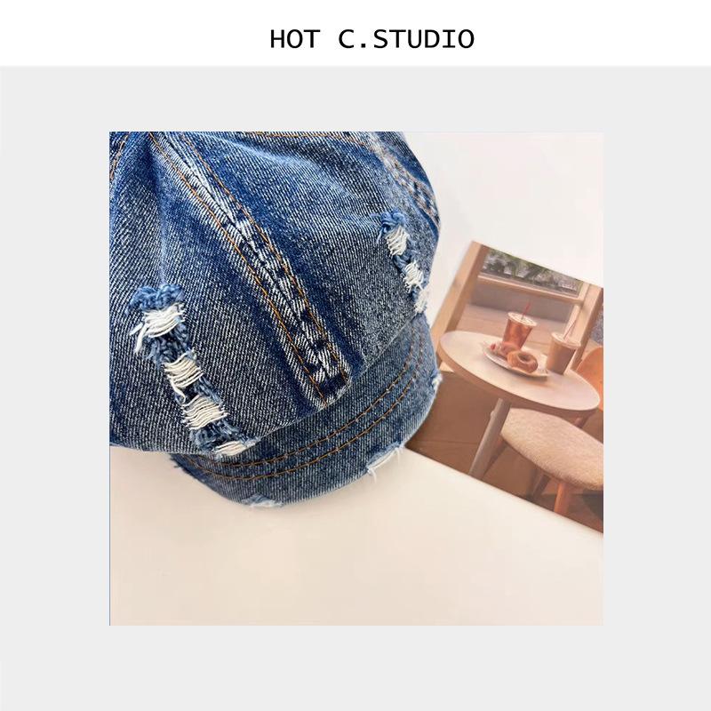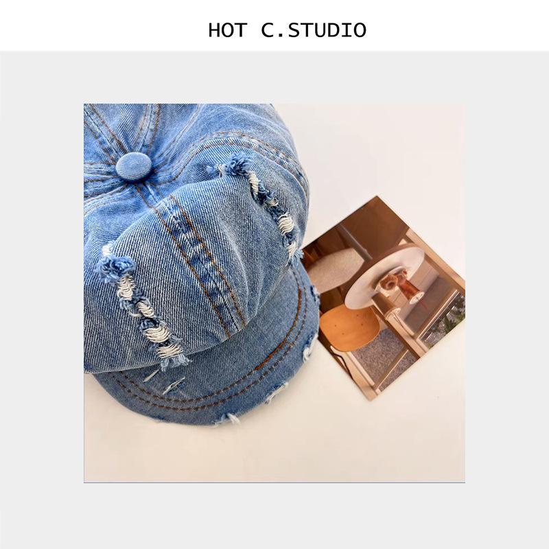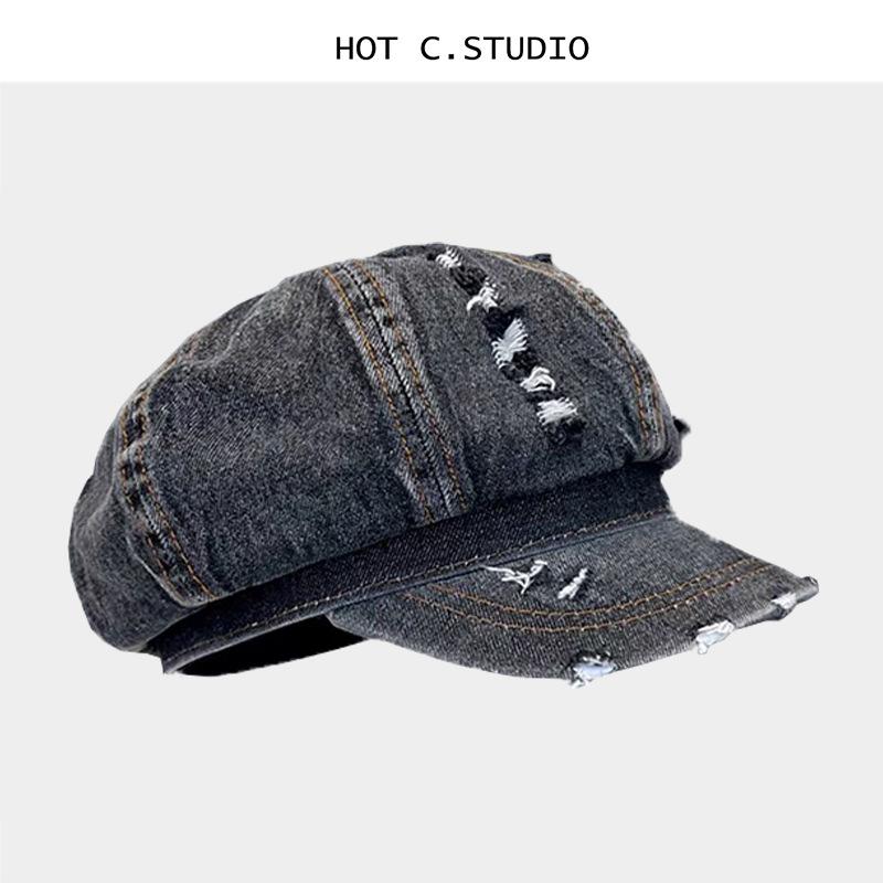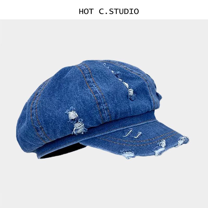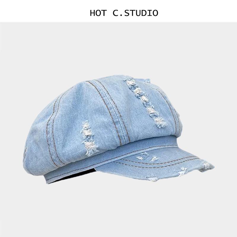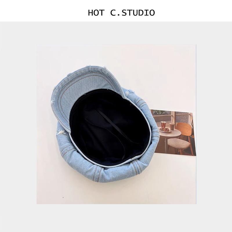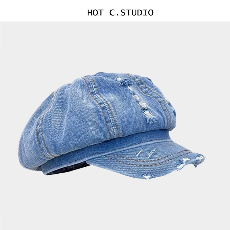 Sombrero octogonal de mezclilla lavada vintage japonés para mujer, primavera y verano, informal, combinable con todo, sombrero de pintor artístico para rostro pequeño