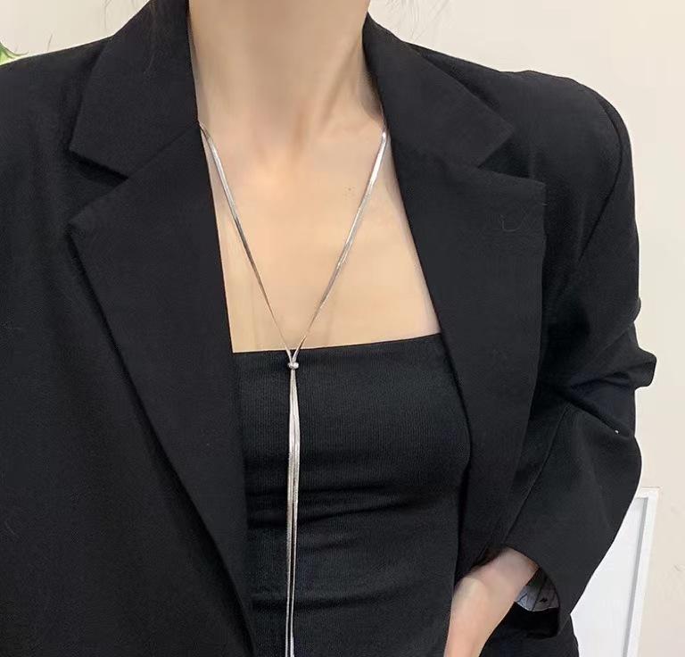 2024 Nuevo estilo, personalidad, temperamento, un suéter de cadena de serpiente plana multiusos, collar de tirador simple y combinable para mujer, moda femenina