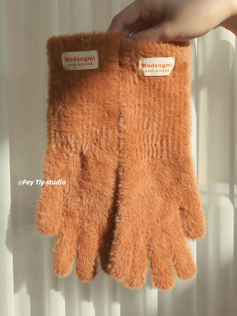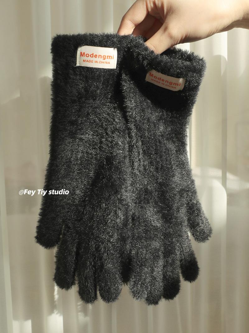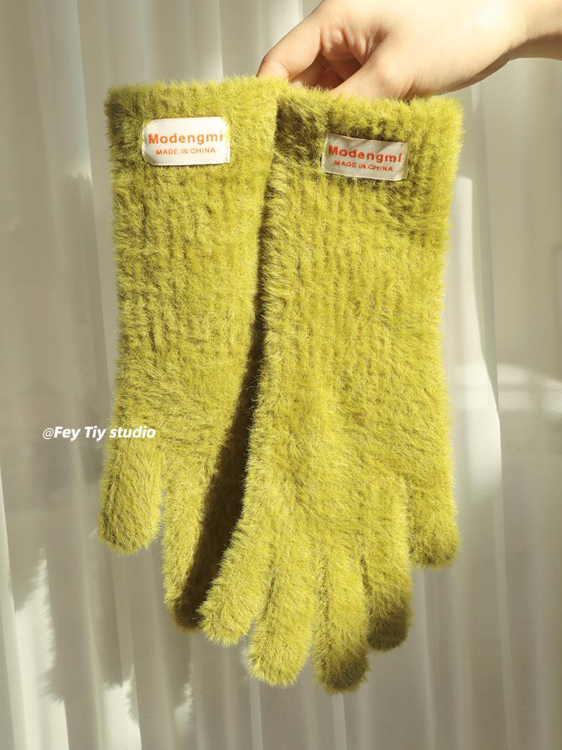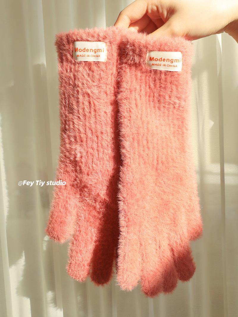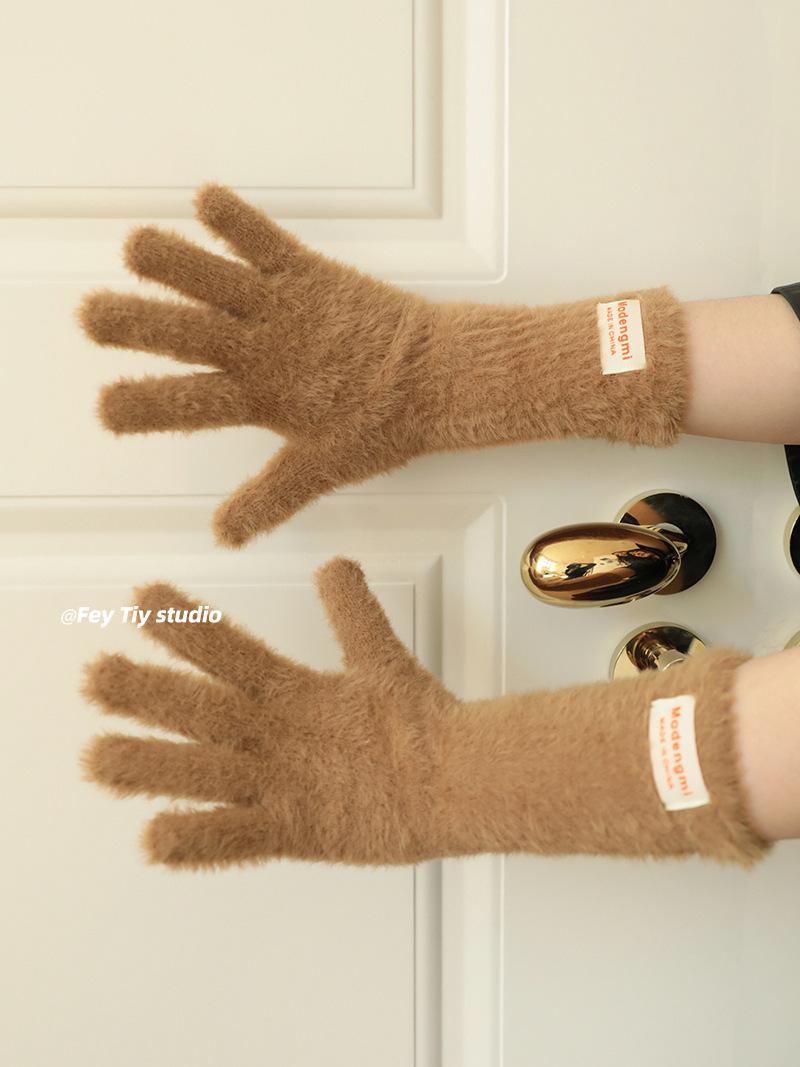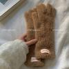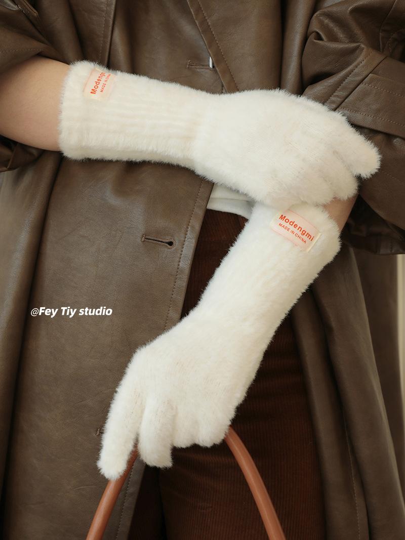 Guantes largos suaves y esponjosos para mujer, cálidos, de otoño e invierno, de color sólido, con pantalla táctil, de cinco dedos, estilo coreano, combinables con todo.
