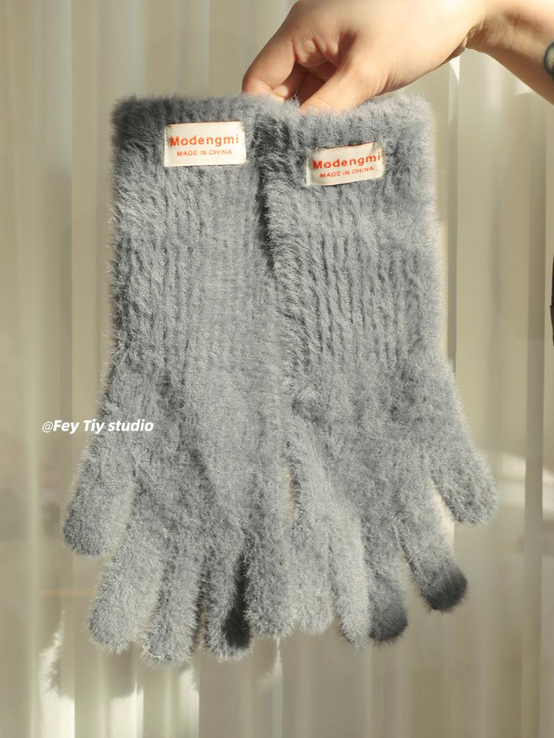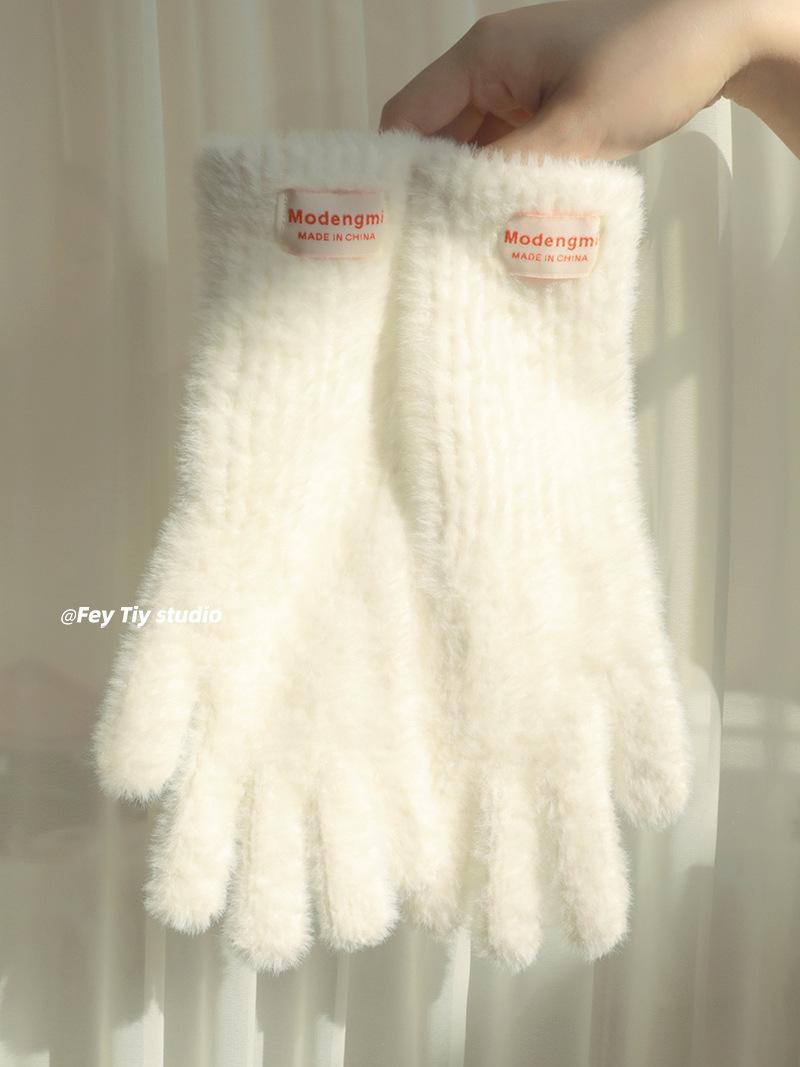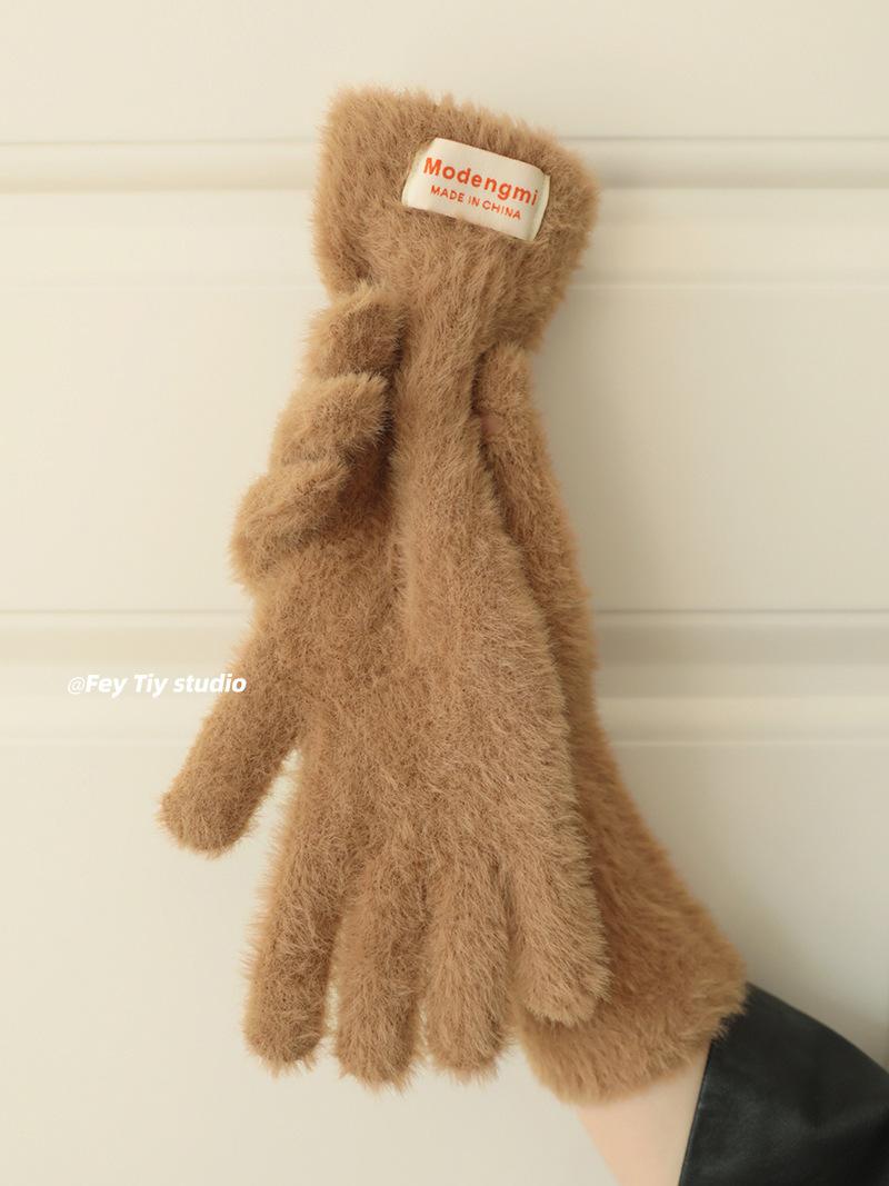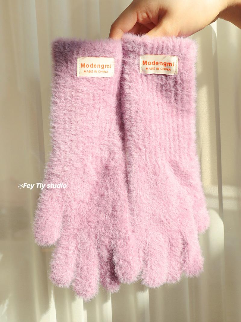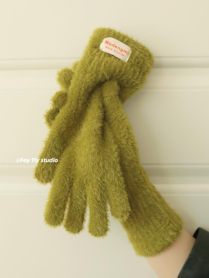 Guantes largos suaves y esponjosos para mujer, cálidos, de otoño e invierno, de color sólido, con pantalla táctil, de cinco dedos, estilo coreano, combinables con todo.